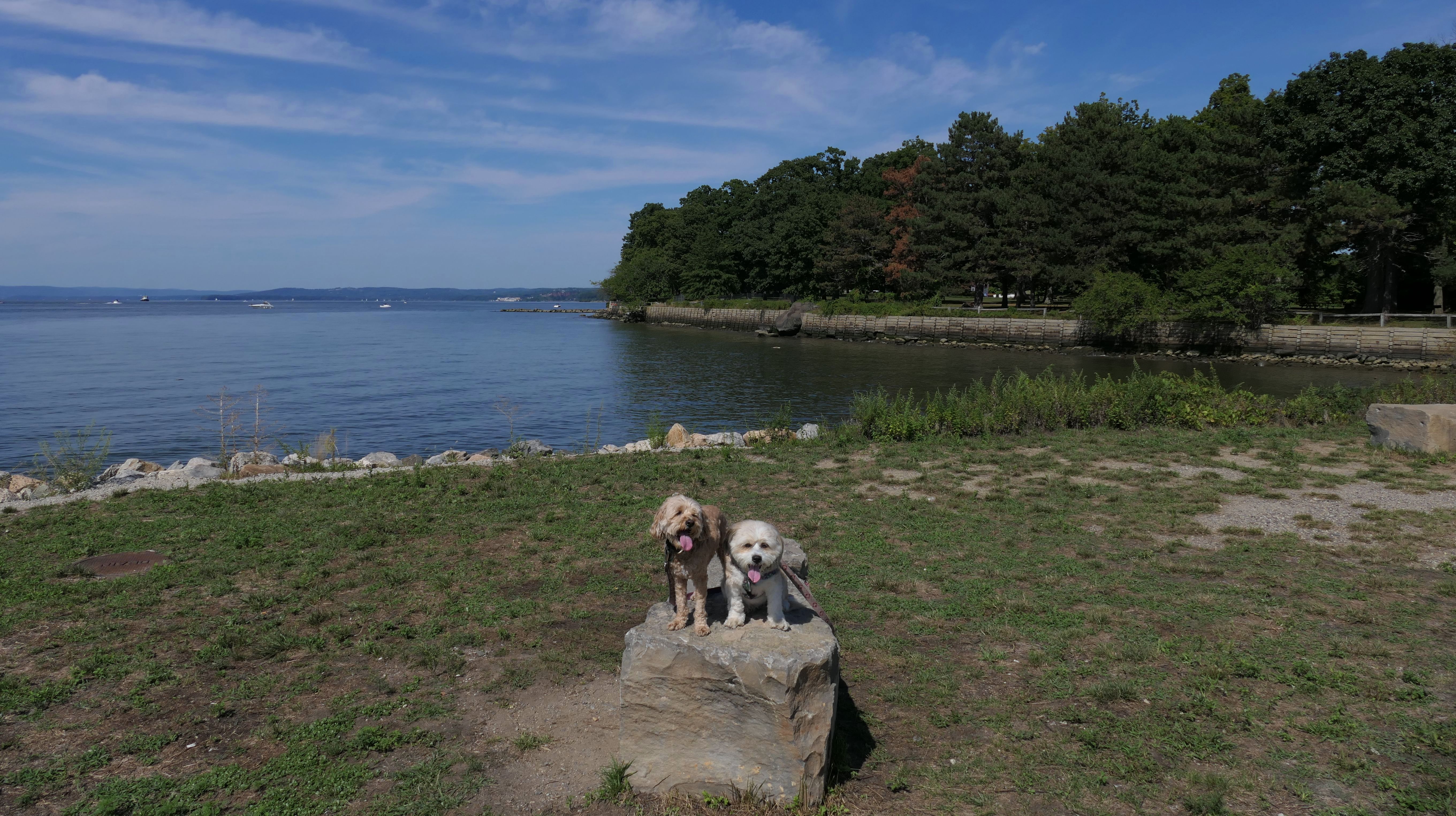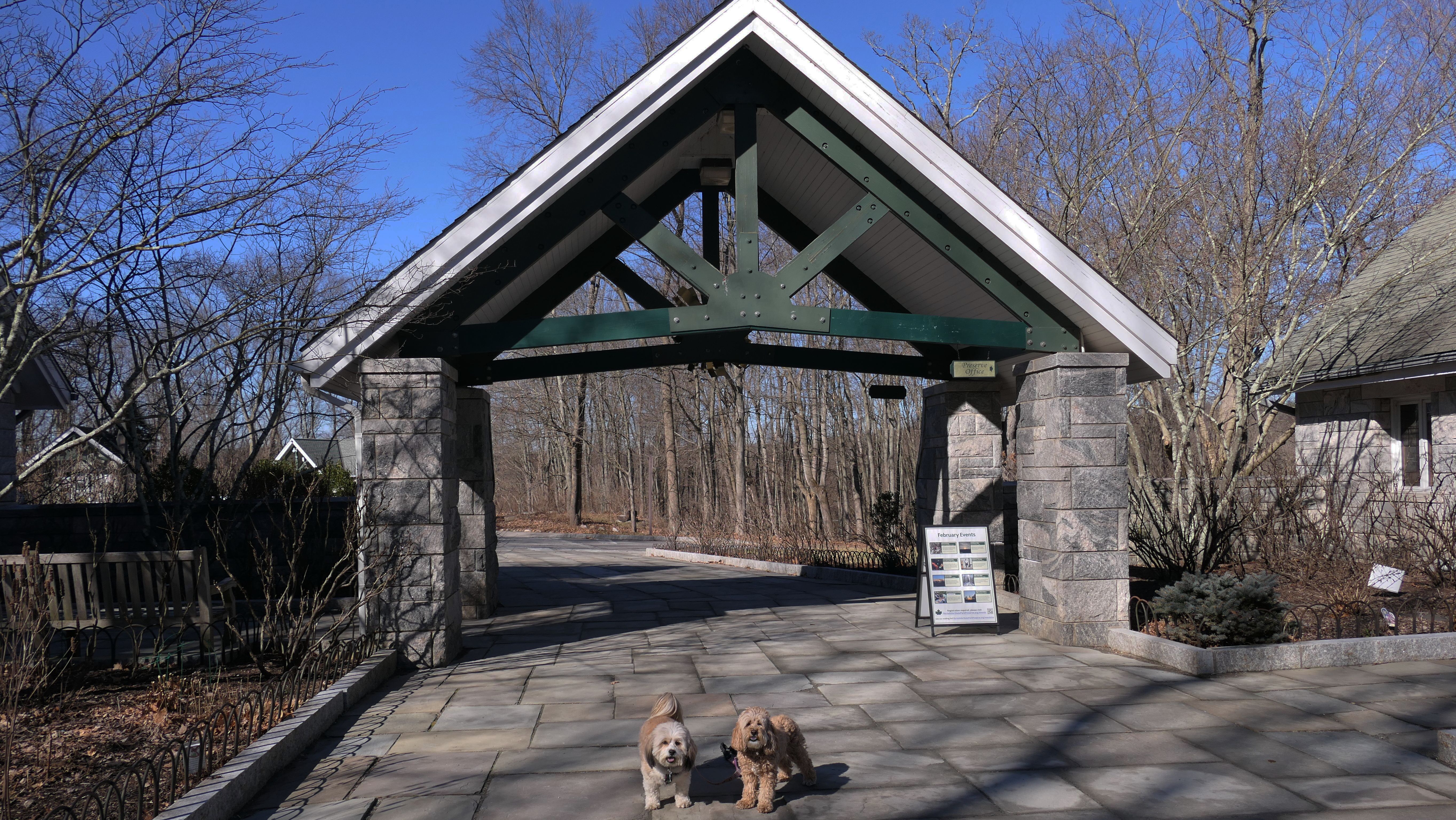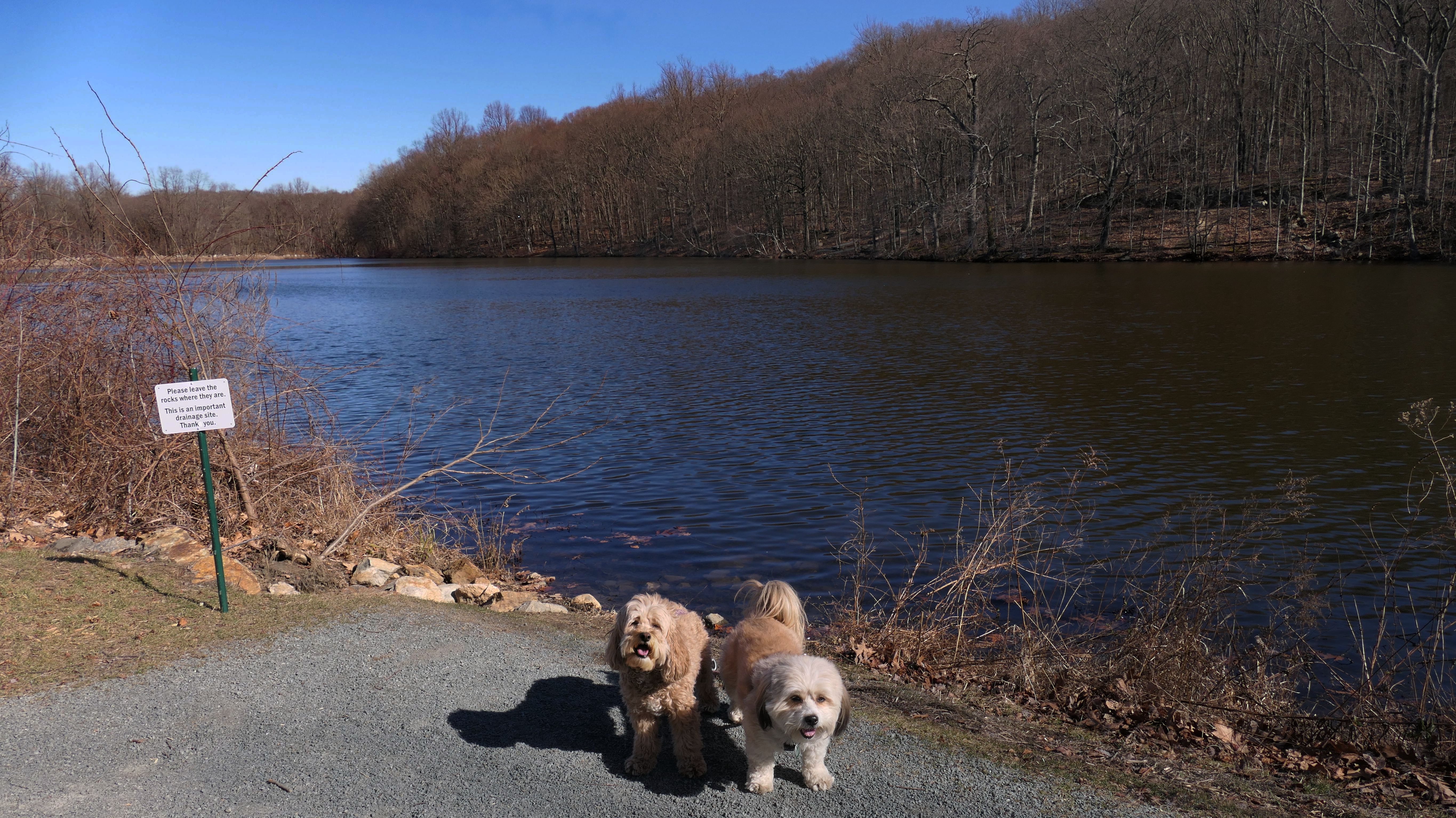 We hadn't been on an adventure in six days. Our wonderful February weather this year finally took a turn of the worse, and it was rainy and cold all week. It was warmer and sunnier in Westchester County New York, so we headed to this place. This is a really neat park that straddles the town line between the Valhalla section of Mount Pleasant and North Castle. There is an open grass area, and a promenade of sorts, in front of the very large dam. The west side of the park features a playground, while the east side of the park includes "The Rising", a 9/11 monument that honors the victims from Westchester County. Obviously, the main feature of the park is the dam. There are stairways on both sides of the dam, so we climbed to the top. There is an old road that runs right across the top of the dam that is closed to vehicular traffic. It is now just a pedestrian walk way. There are nice views from the top of the dam. I have to admit, climbing the stairs was a good workout. The climb is over 20 flights of the stairs. The dogs didn't really seem to have much issue with the climb. We did this after walking four miles on the Bronx River Pathway, that starts at this park. Needless to say, we made up for not being able to get out of the house in six days. Below are the pictures from the Mount Pleasant section of the park. Visit the North Castle page for pictures from that section.