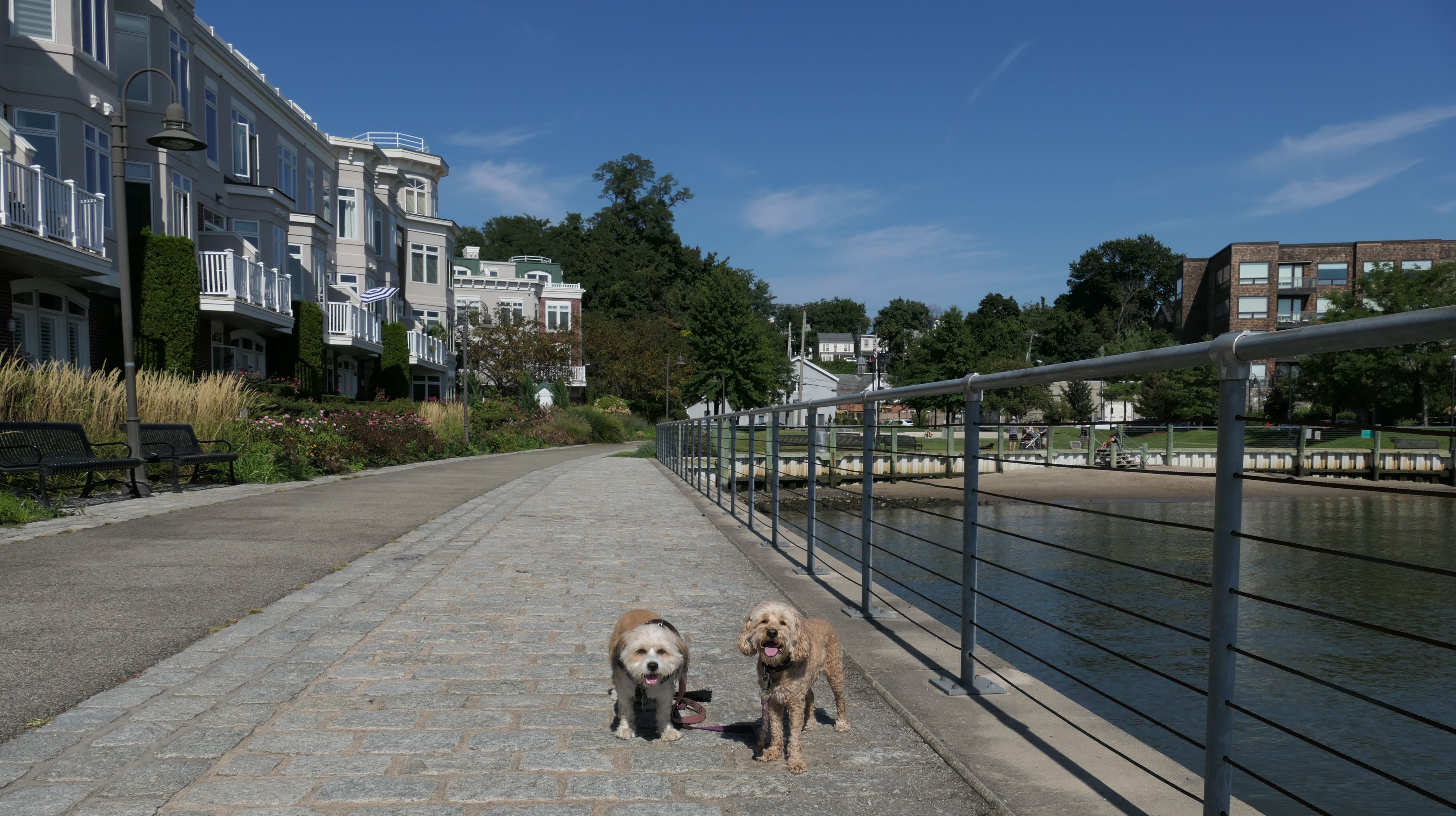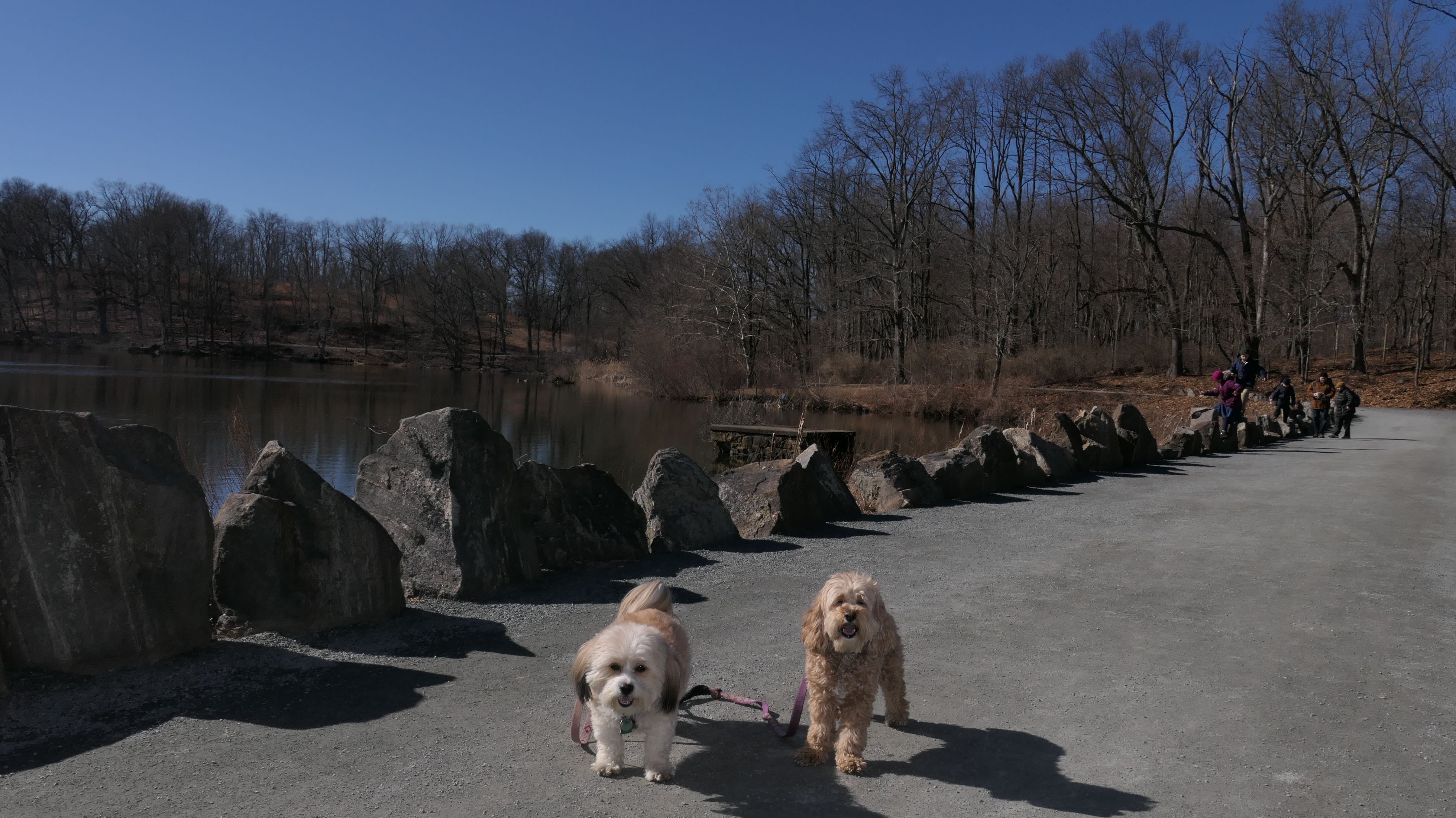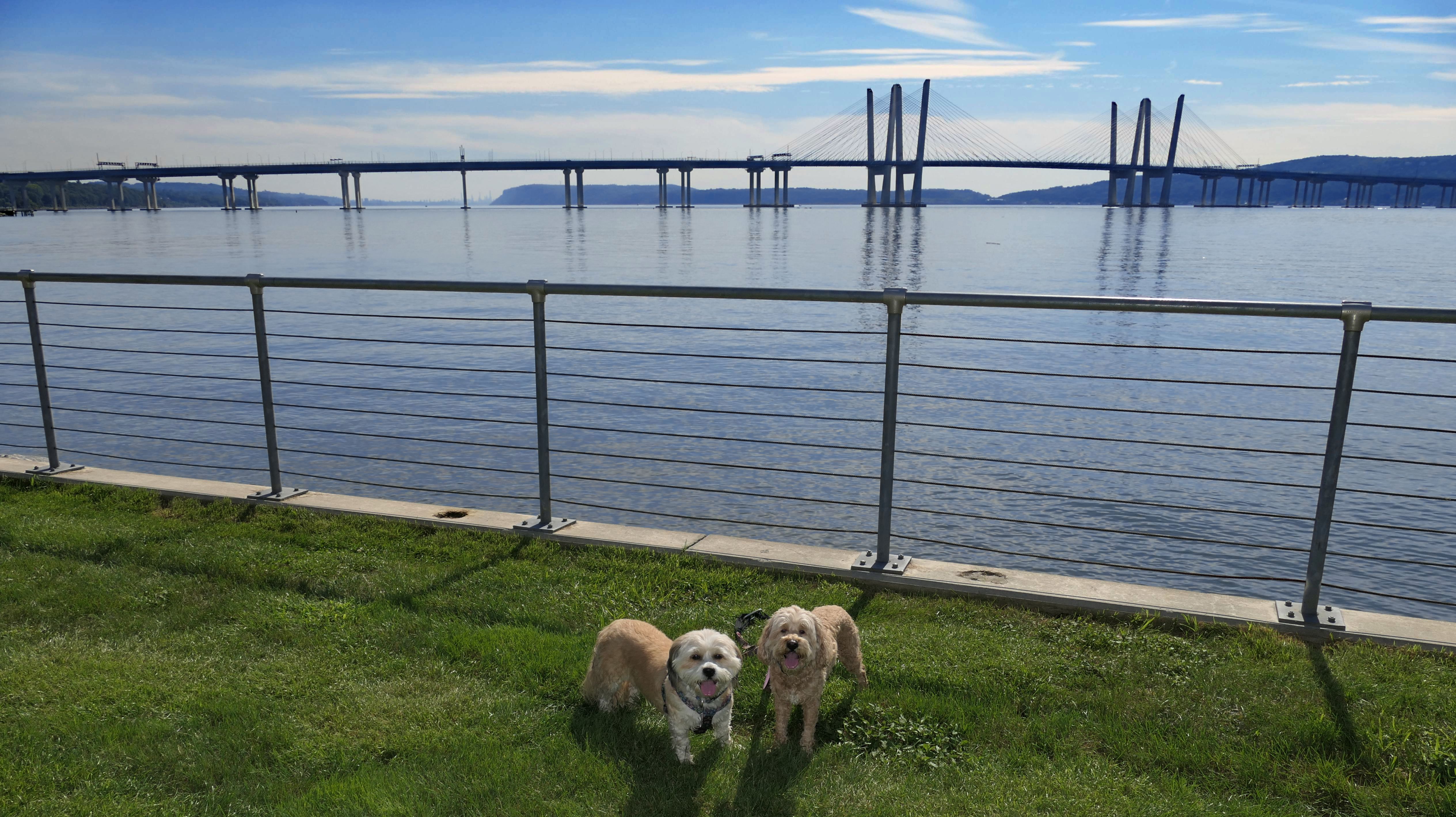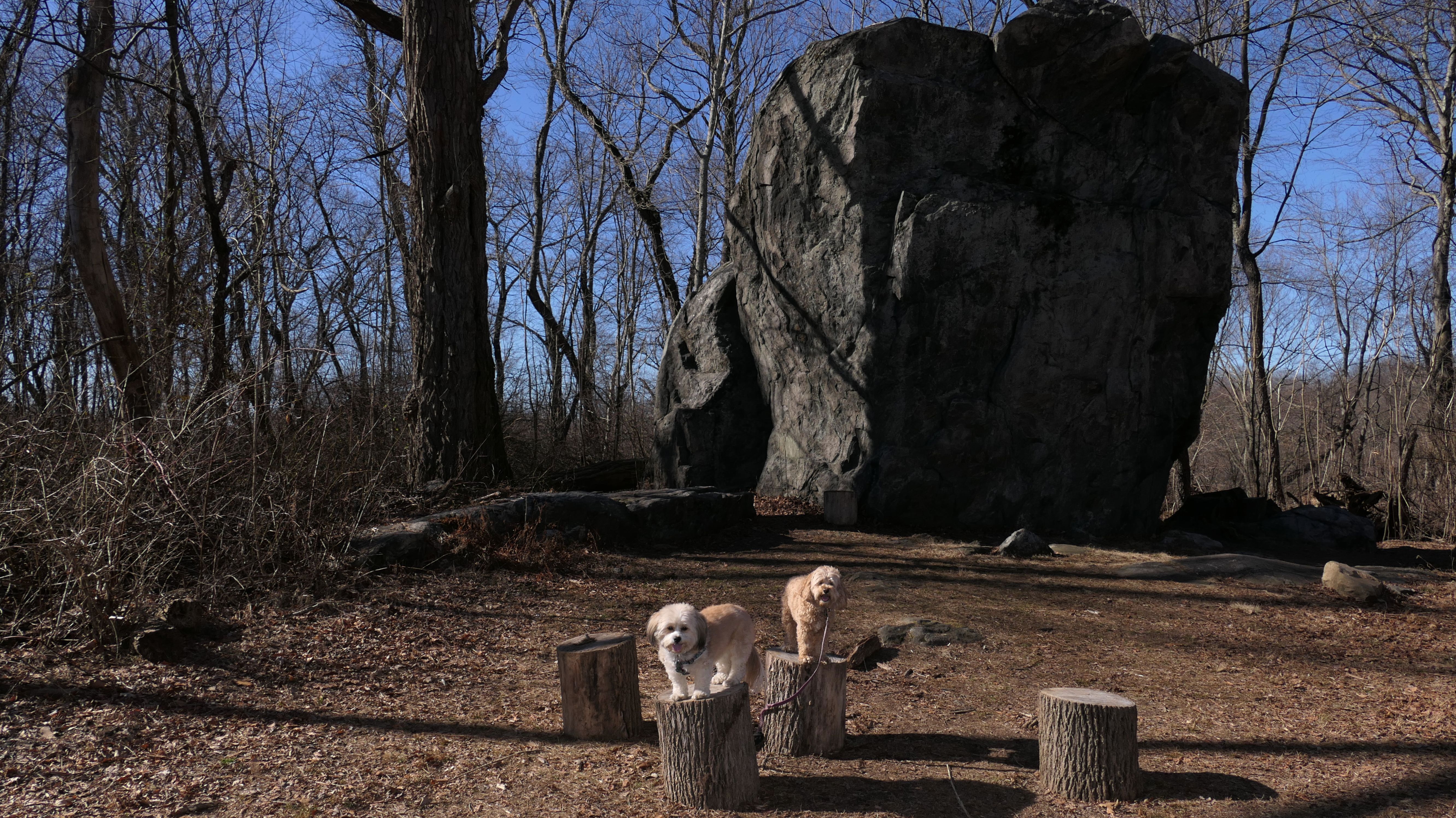 We hadn't been on an adventure in six days. Our wonderful February weather this year finally took a turn of the worse, and it was rainy and cold all week. It was warmer and sunnier in Westchester County New York, so we headed to this place. This is a really neat park that straddles the town line between the Valhalla section of Mount Pleasant and North Castle. There is an open grass area, and a promenade of sorts, in front of the very large dam. The west side of the park features a playground, while the east side of the park includes "The Rising", a 9/11 monument that honors the victims from Westchester County. Obviously, the main feature of the park is the dam. There are stairways on both sides of the dam, so we climbed to the top. There is an old road that runs right across the top of the dam that is closed to vehicular traffic. It is now just a pedestrian walk way. There are nice views from the top of the dam. I have to admit, climbing the stairs was a good workout. The climb is over 20 flights of the stairs. The dogs didn't really seem to have much issue with the climb. We did this after walking four miles on the Bronx River Pathway, that starts at this park. Needless to say, we made up for not being able to get out of the house in six days. Below are the pictures from the Mount Pleasant section of the park. Visit the North Castle page for pictures from that section.
