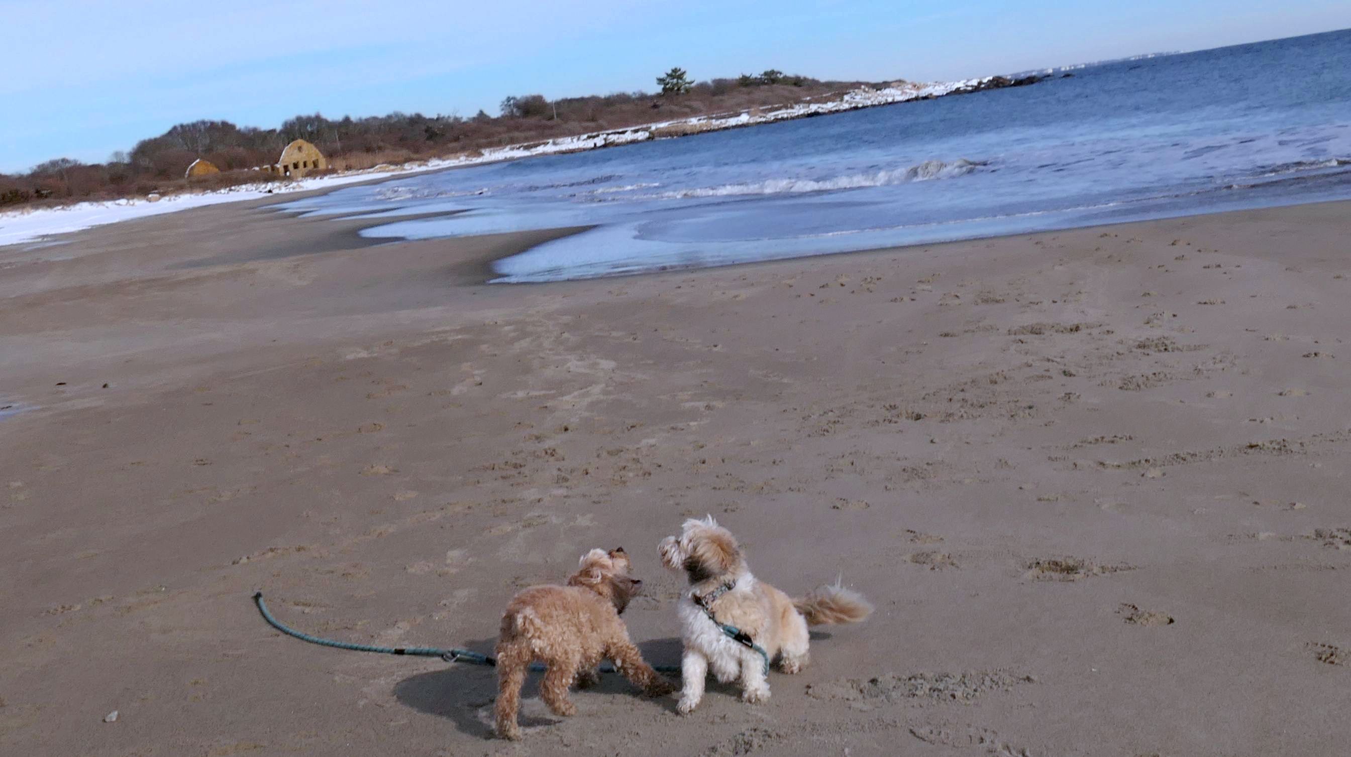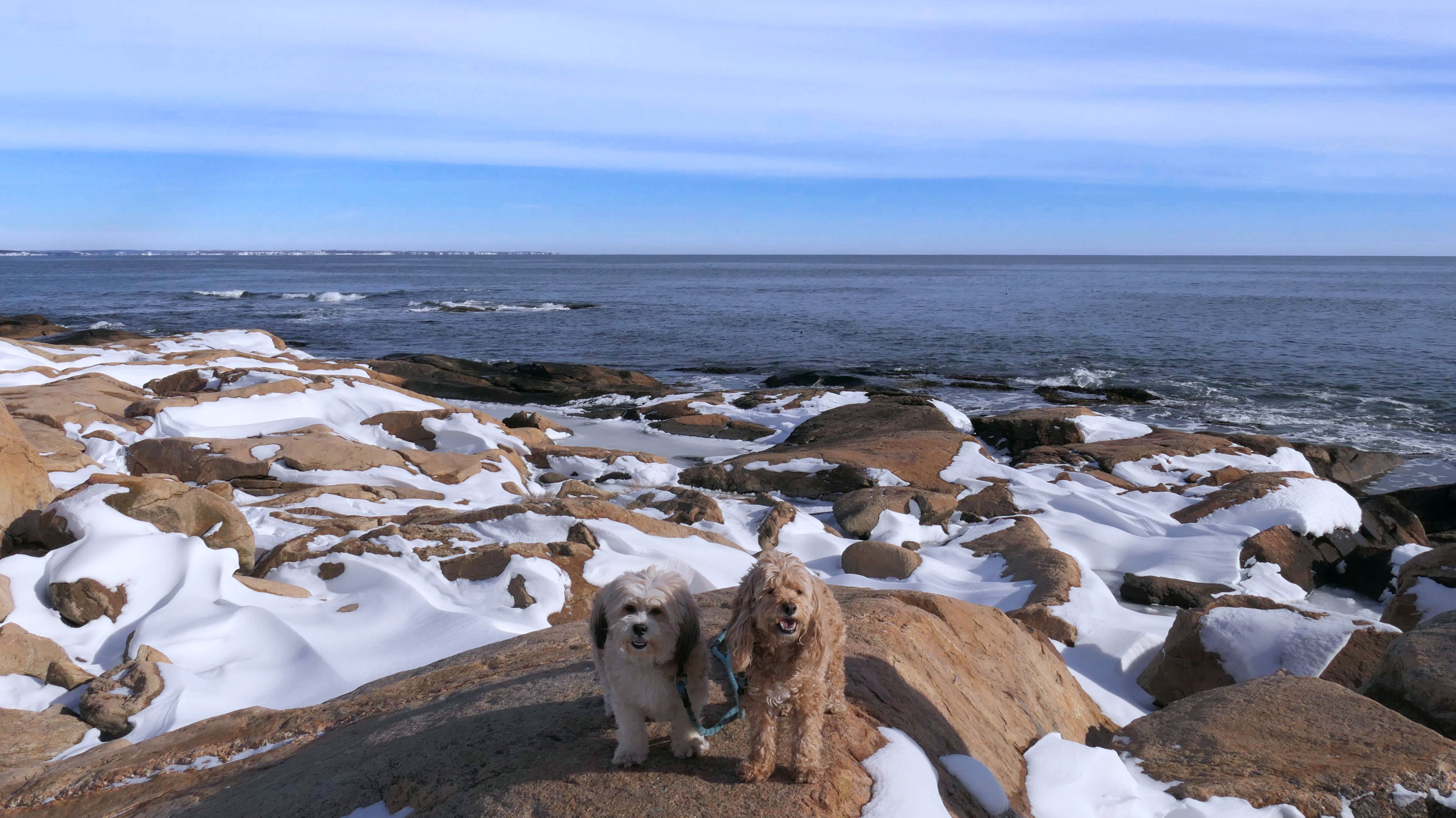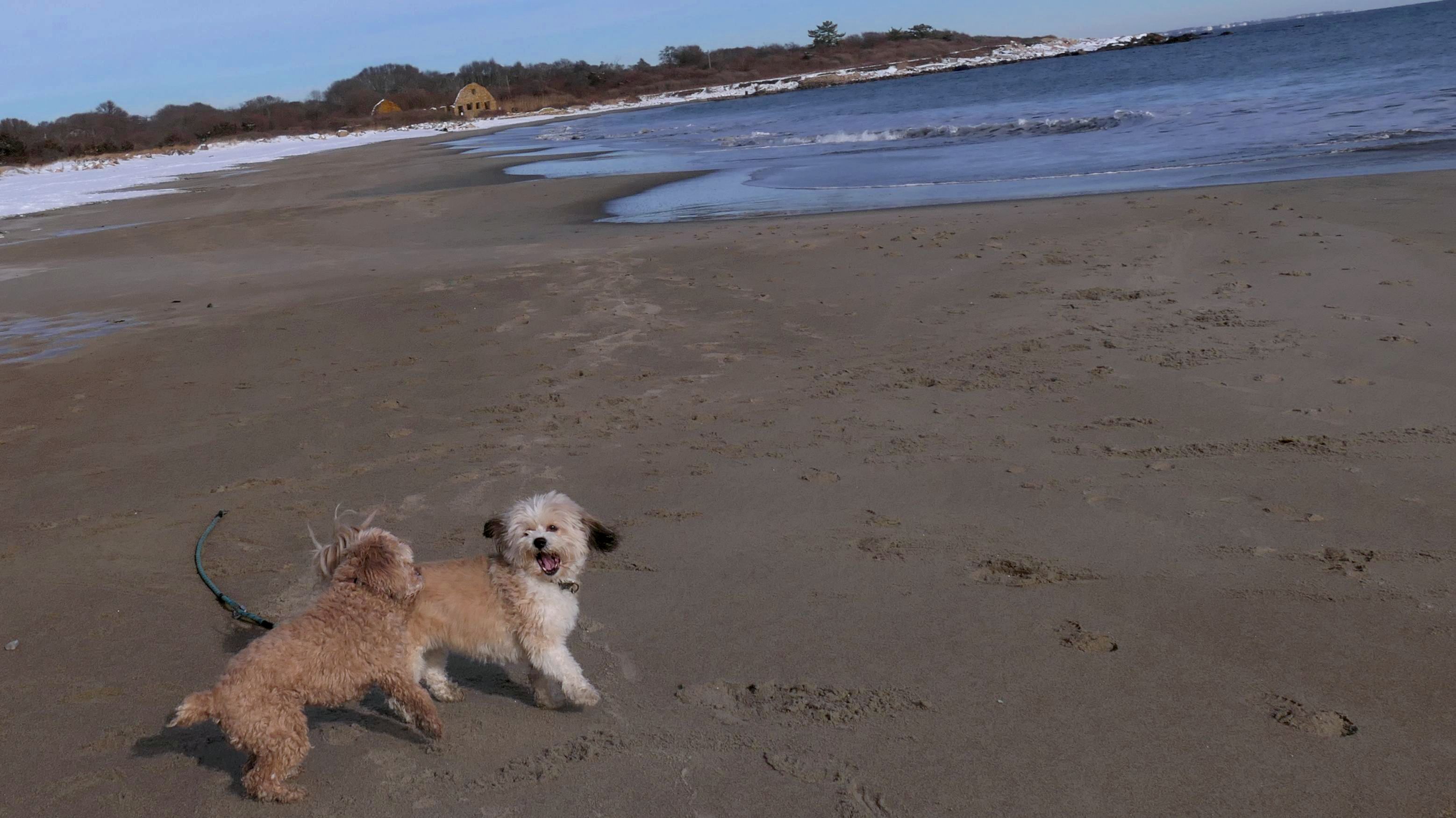 We were hiking the Black Point Trail with my brother, who was visiting from Colorado. He doesn't get to see the ocean that much in Colorado, so we continued along this beach for a bit. While I've been here with the dogs many times, this is the first time we visited this beach with snow on the ground. That didn't stop Mandy and Lexi from running and playing on the beach!