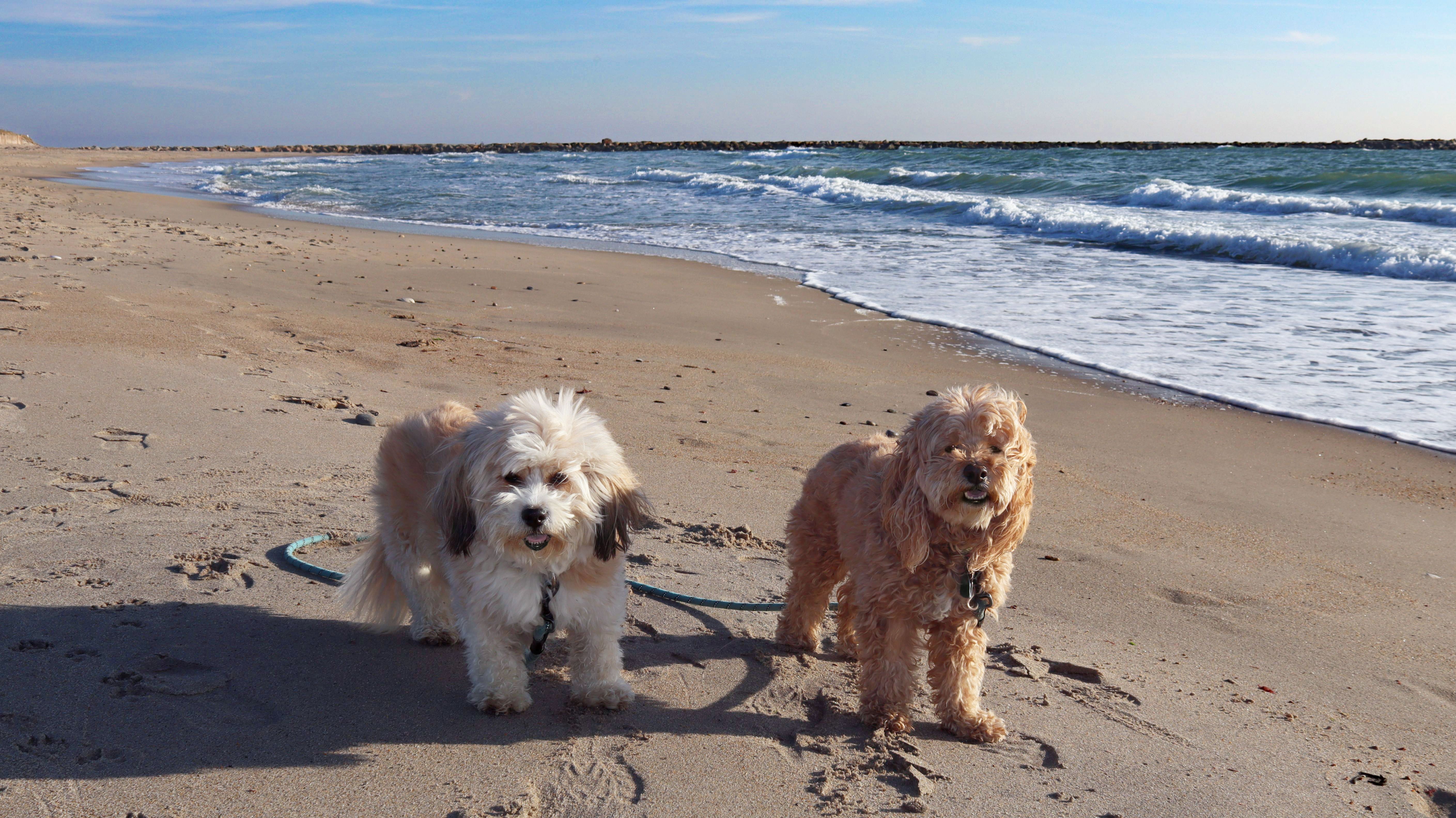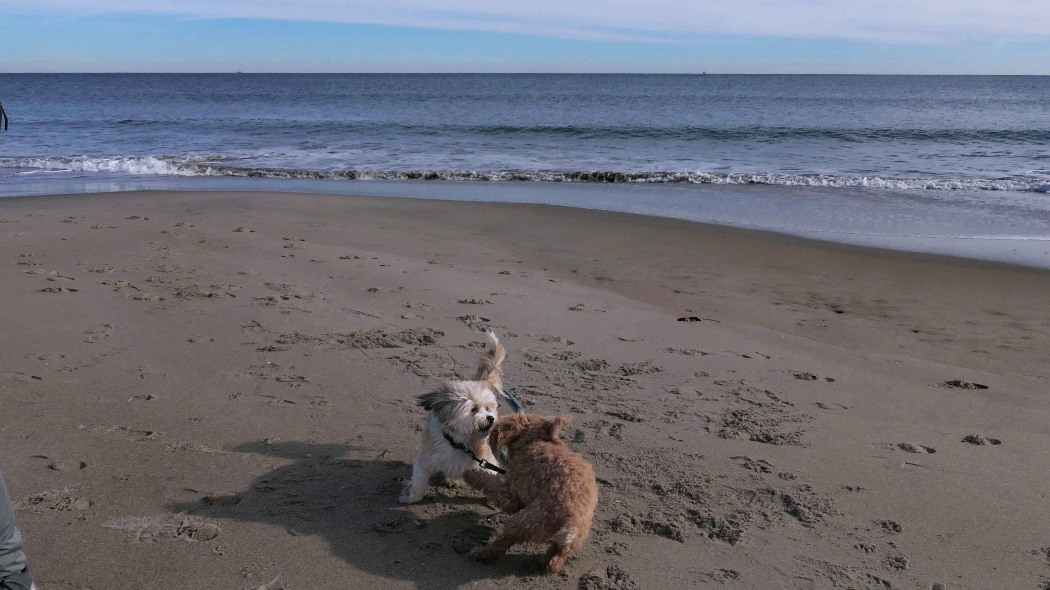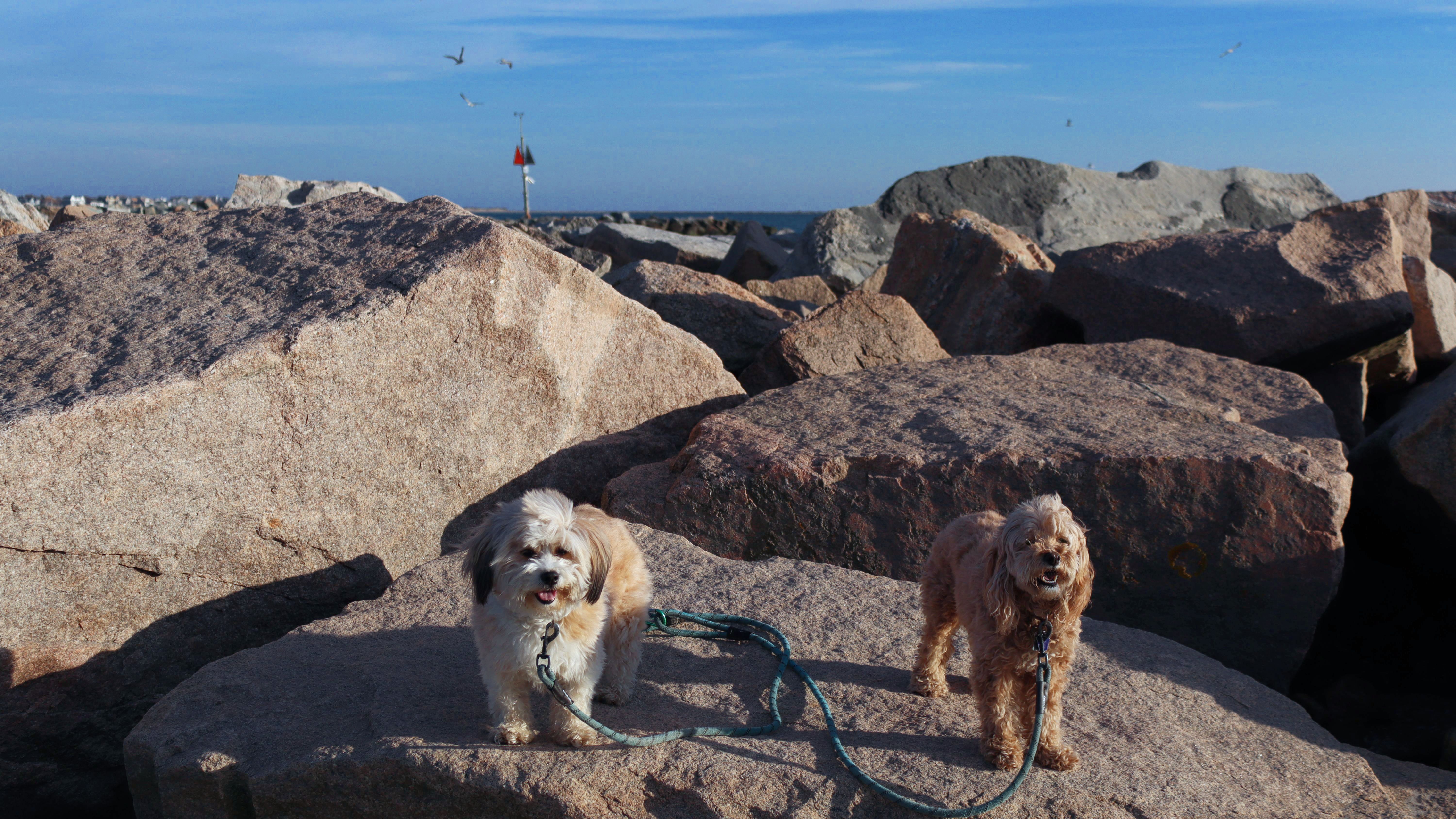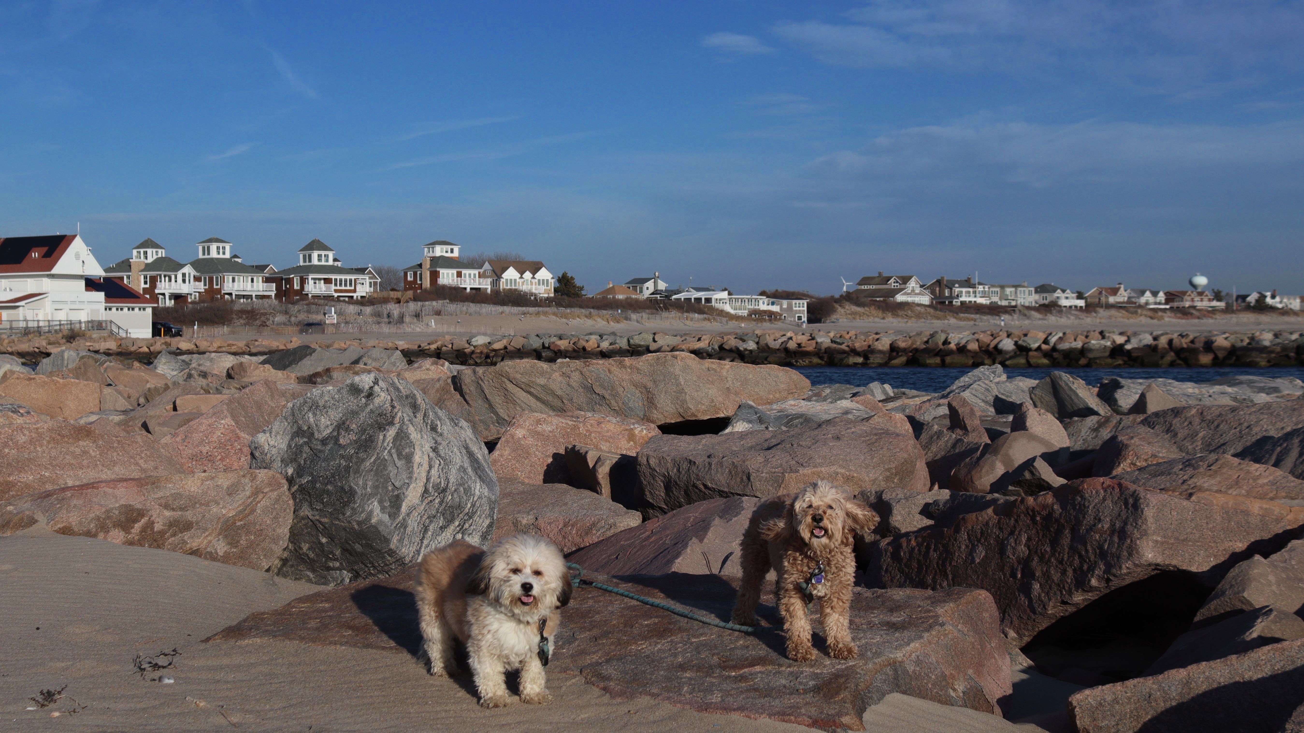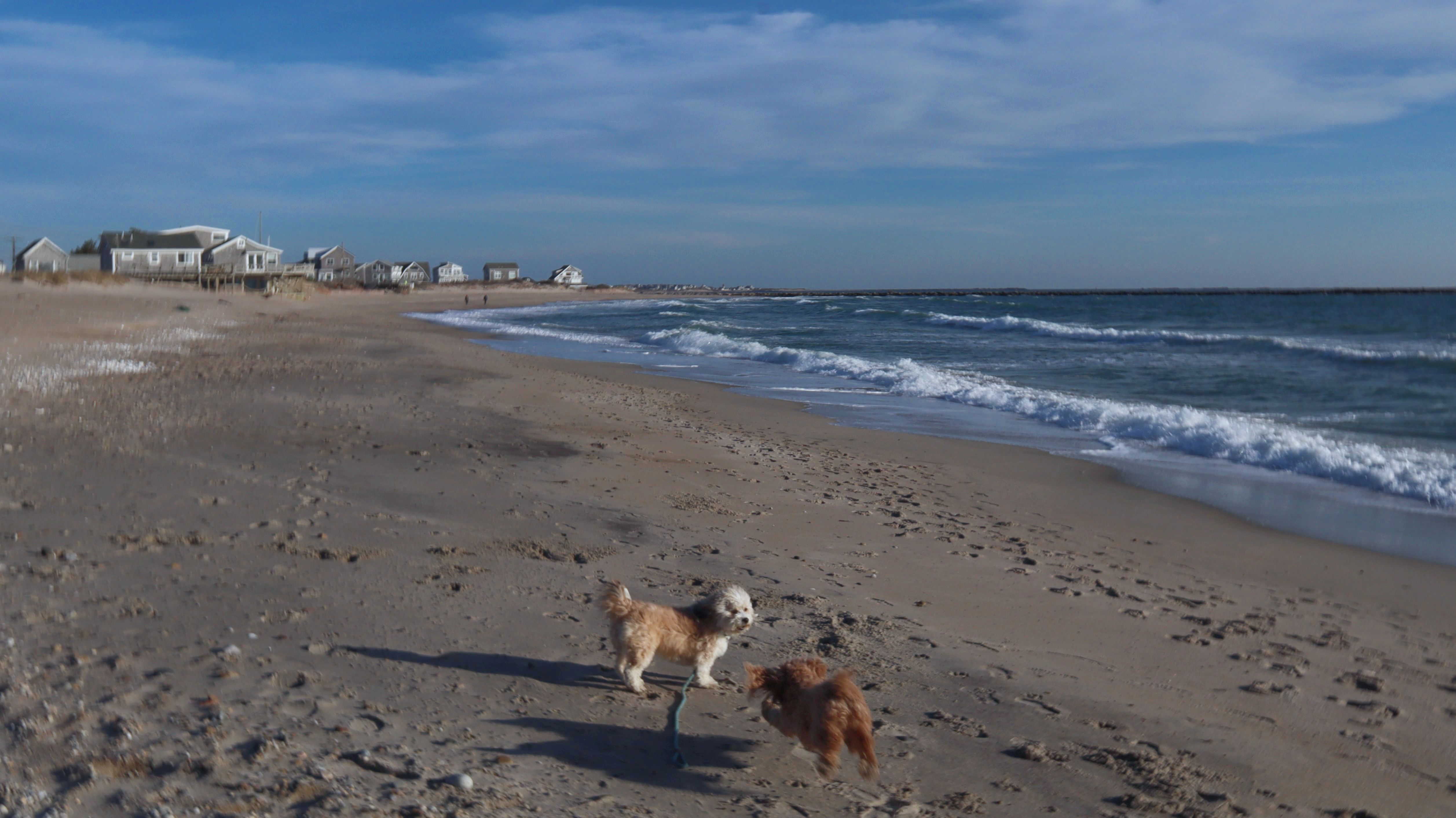 These are State Beaches in the Galilee section of Narragansett, right next to the Block Island Ferry. Dogs are allowed on Rhode Island State Beaches in the off-season, and even though it's 70 degrees in November, it's still the off-season. These beaches are connected, at least in the off-season. I think there might be a private beach in between that's roped off during the summer. I'm not really sure. These are okay beaches, but I think the Town Beach is nicer.