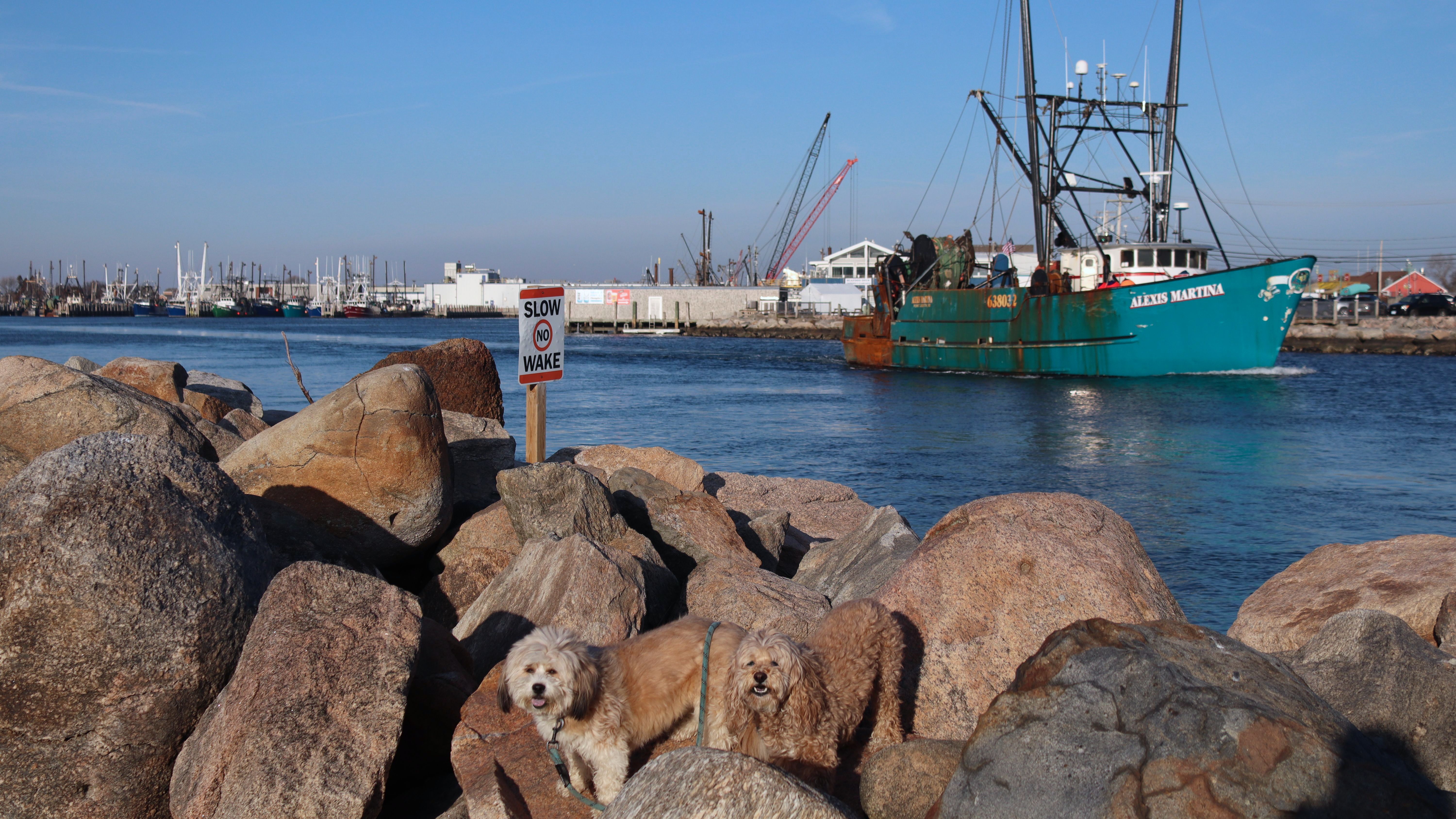 This was a quick 2.5-mile walk on a mild January afternoon. We covered nearly the entire length of the beach, though all of the photos are from the Narragansett side. We made it out to the far eastern end near the Point Judith Breachway, a busy waterway with regular ship traffic. The fishing vessel Alexis Martina was heading out to sea as we arrived. I'm still getting used to a new camera and had the shutter speed set incorrectly at the start of the walk, so most of the action shots of Mandy and Lexi didn't come out. Even so, it was an enjoyable walk along the beach and a welcome break from typical January weather.