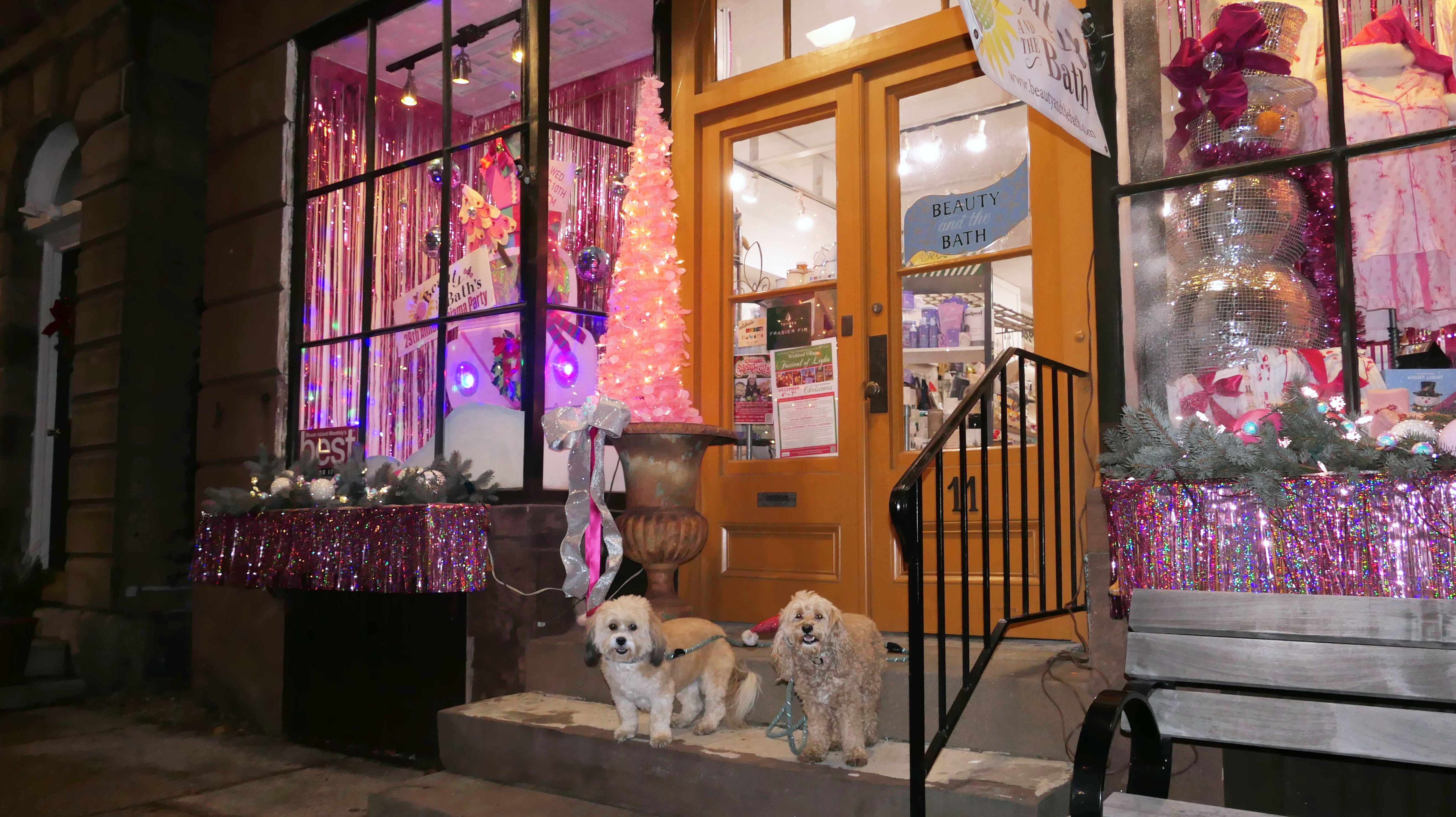 We returned here to take some Christmas photos. Most of the shops are decorated. It looks like the town held a contest to see which shop had the best holiday display. There were signs up at the shops that took first and third place, but we didn't see the second place winner. We also walked through the surrounding neighborhood, and headed to Wilson Park, walking four miles total.