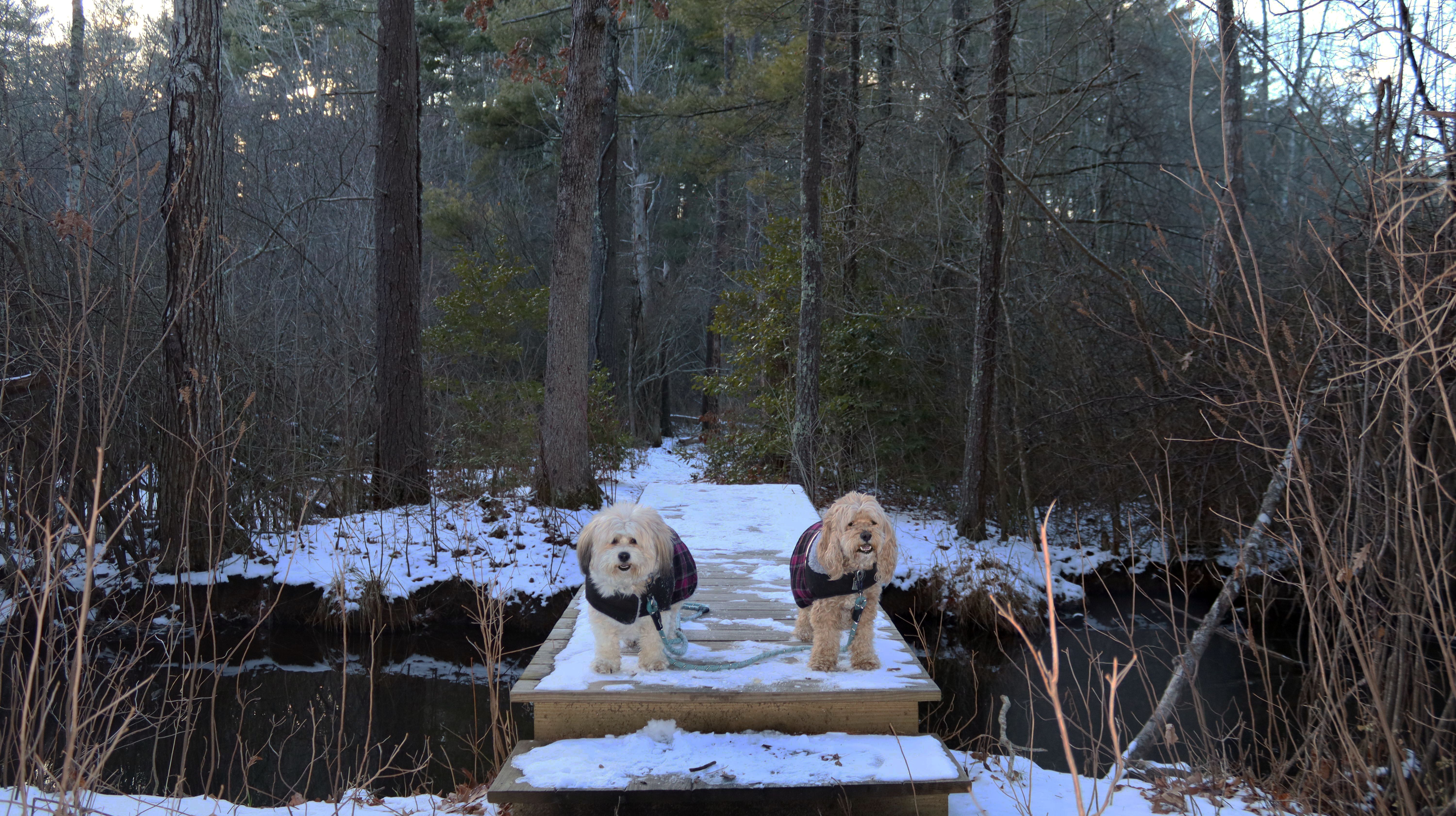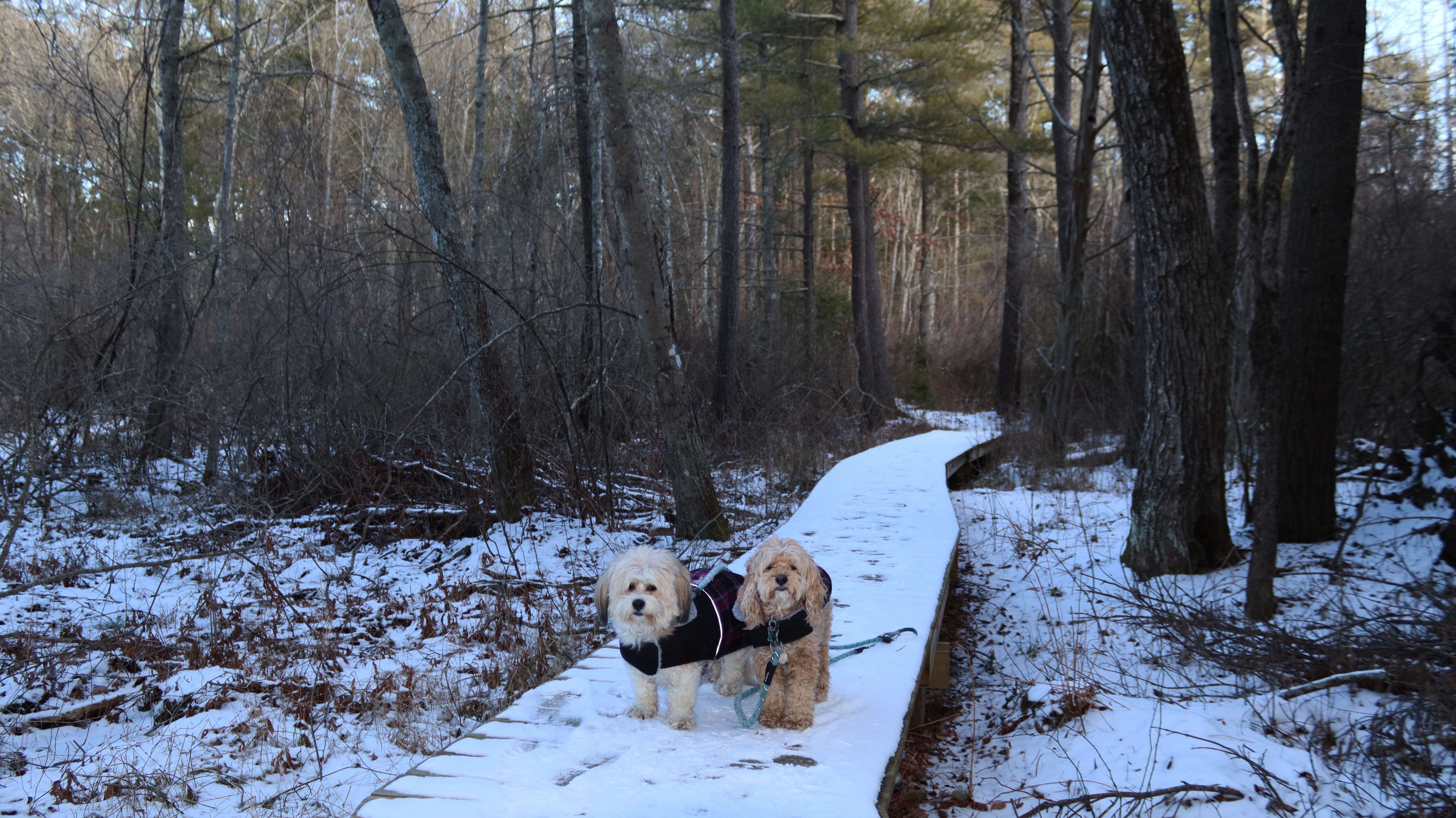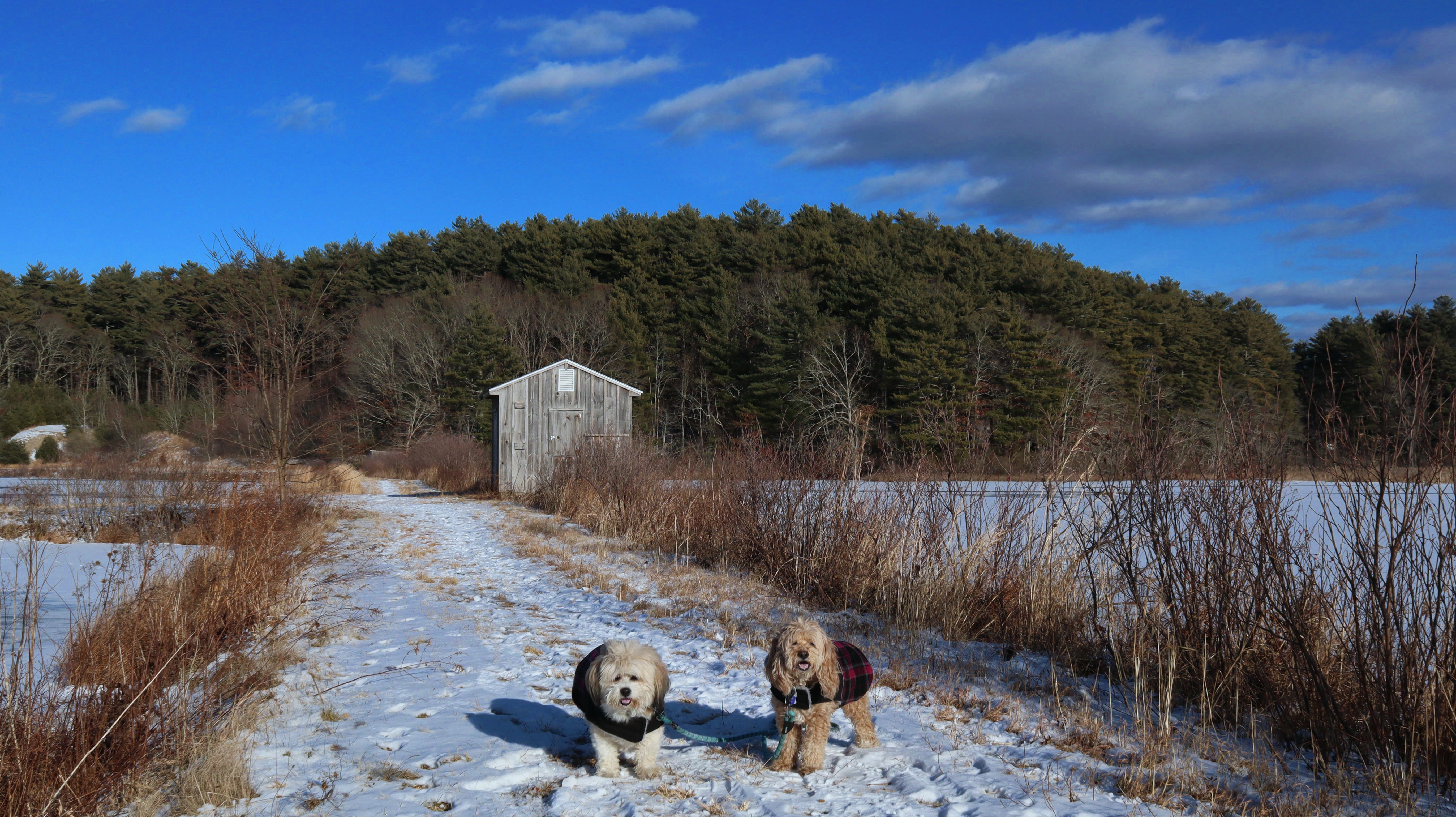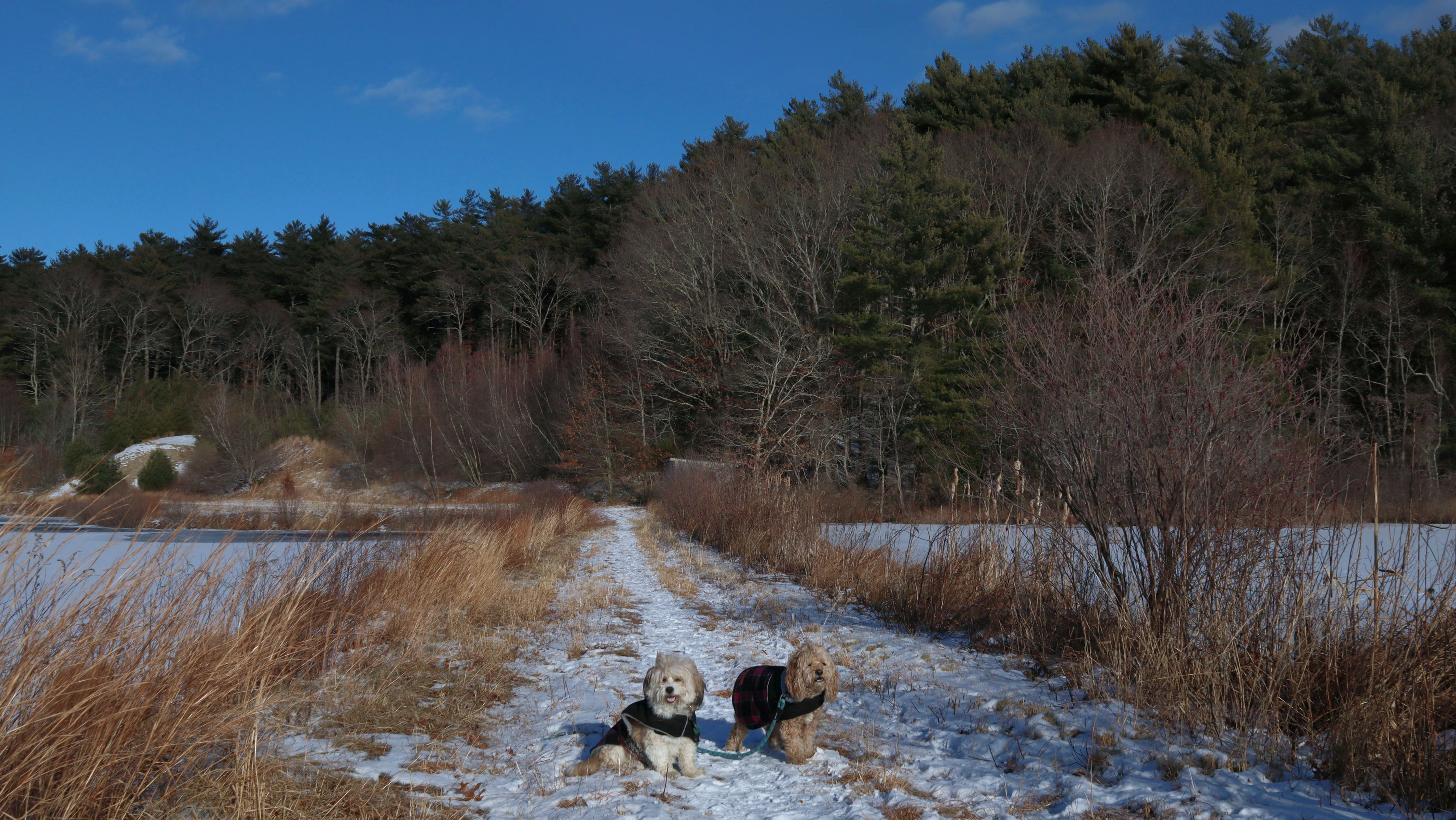 With this visit to Plympton, Mandy and Lexi have now visited 200 towns in Massachusetts! (Only 151 more to go!). This was a nice hike through a 135 acre conservation area. The trails pass through woods and wetlands, along old cranberry bog access roads, and a reservoir. It's a relatively new recreation area, it opened in 2022. There are about two miles of trails here that loop around the reservoir. This was a nice short hike on a winter afternoon.