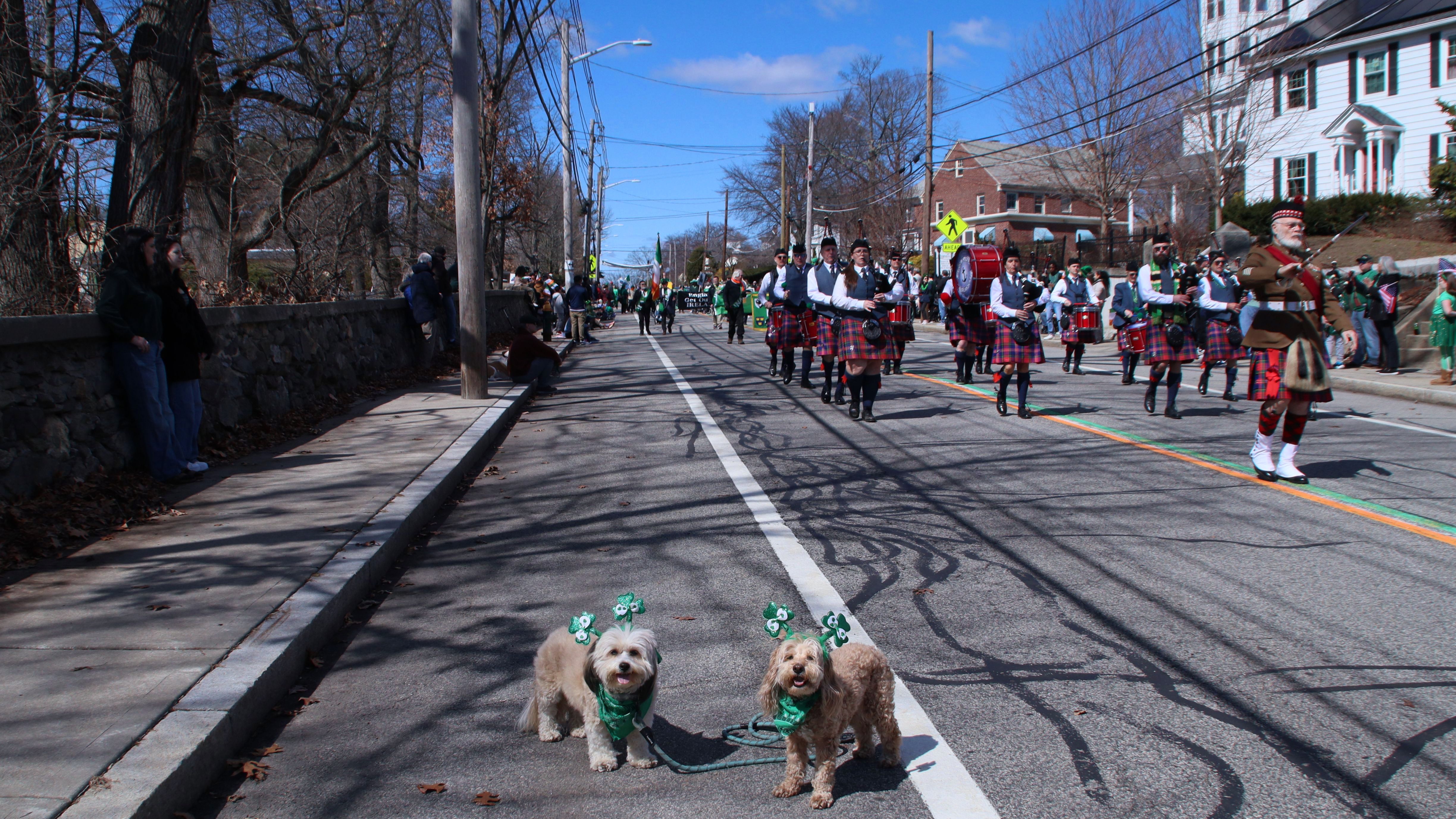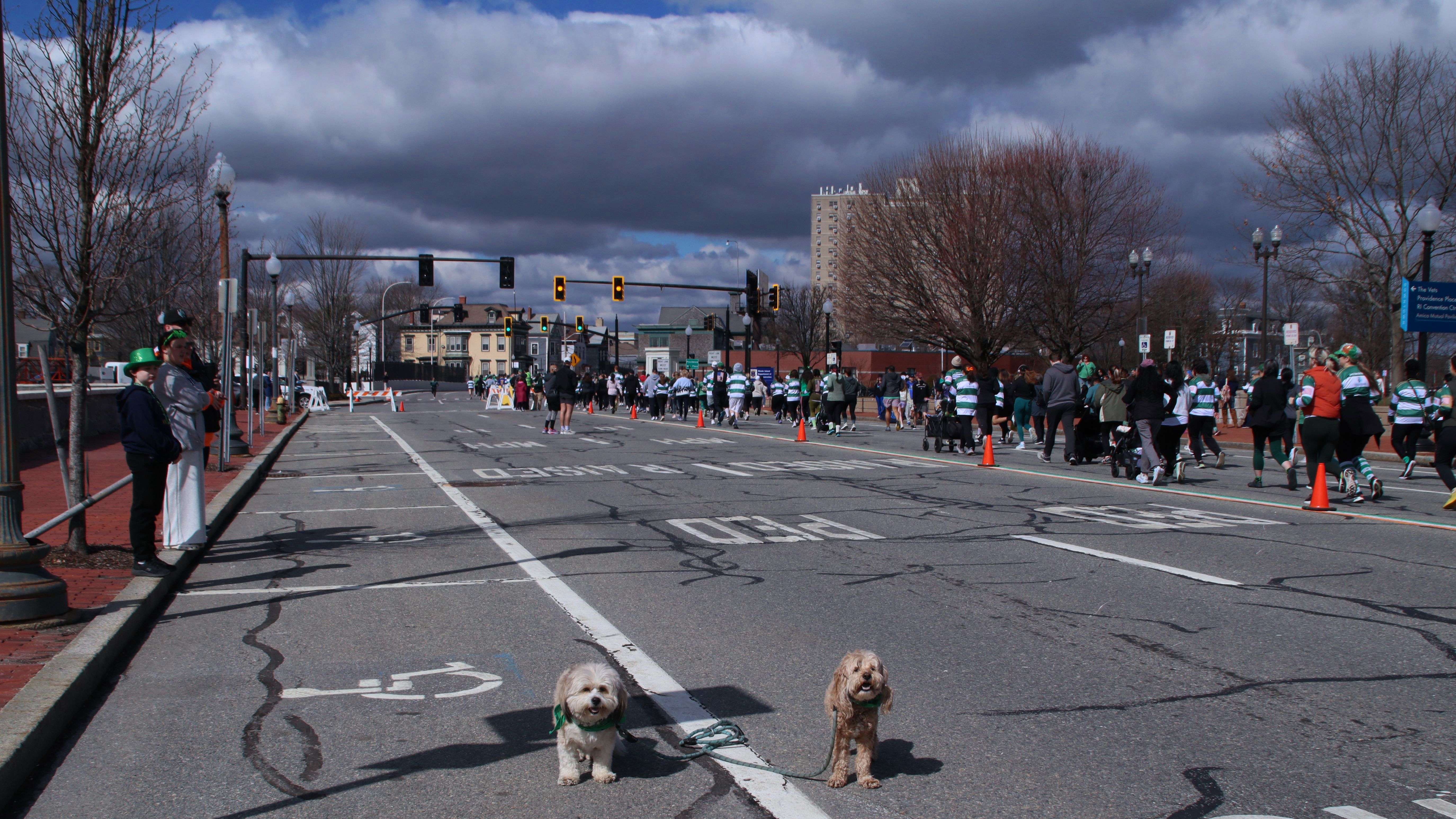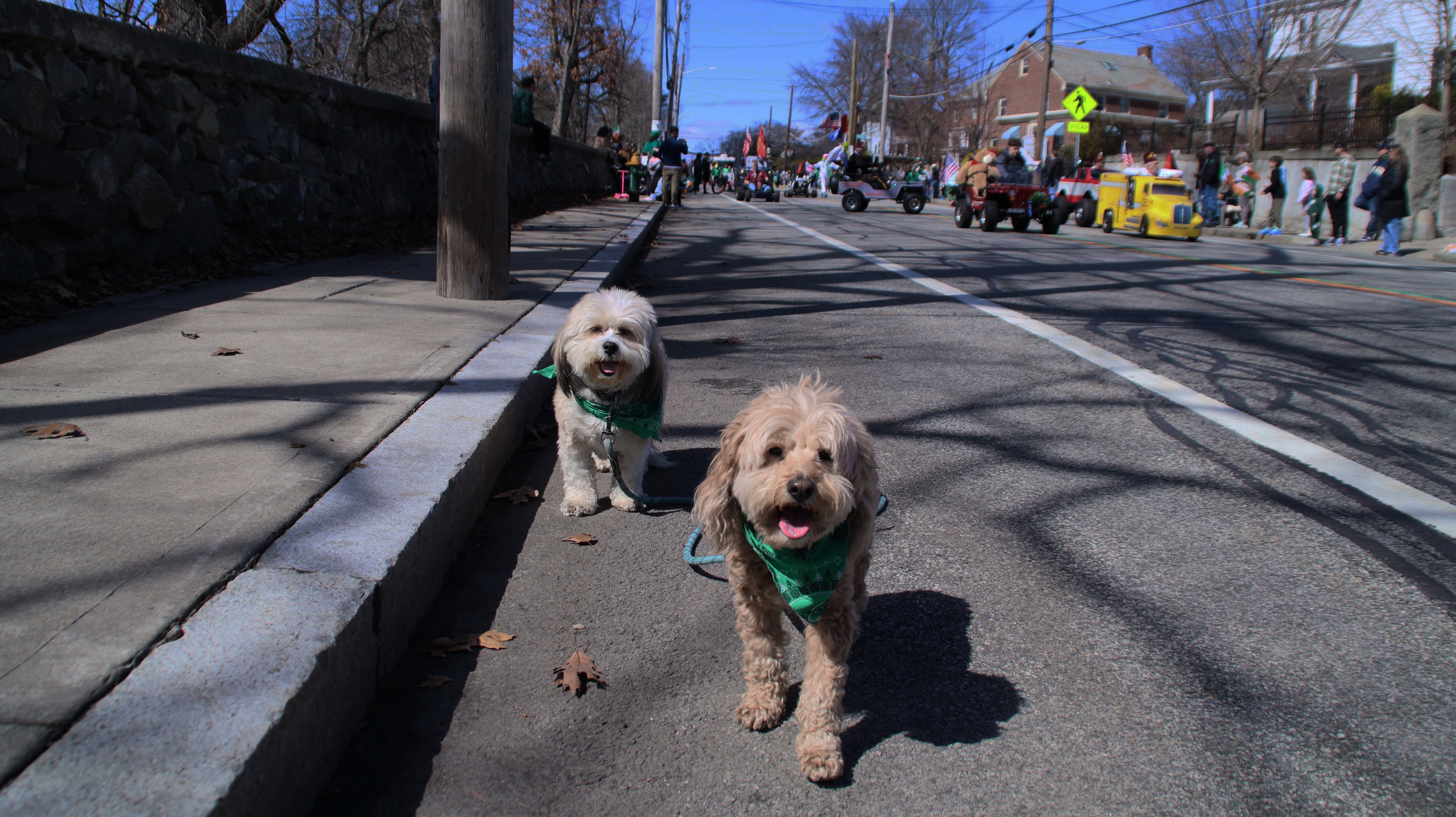 Happy St. Patrick's Day…again! Unlike the Newport St. Patrick's Day Parade, this one took place the Saturday after the holiday. The parade begins in the Elmhurst neighborhood and follows Smith Street (US 44) for about two and a half miles, ending at the State House. Before the parade, the Shoreham Bank St. Patrick's Day 5K road race was held along the same route, starting at the State House. We arrived just before the race began and ended up walking along the course as runners made their way toward us, gradually working our way up the route to the parade's starting point. We got there about 15 minutes before the parade began and found a great spot near the start. Unfortunately, we had to cut our day short. One of the groups in the parade was firing blanks from their guns, along with a cannon that was incredibly loud. The sudden noise made Lexi very nervous—she already struggles with fireworks and thunderstorms, and the repeated blasts were just too much for her. I do wish there had been some kind of warning, as we likely would have planned differently. The Newport parade didn't include any gunfire at all.