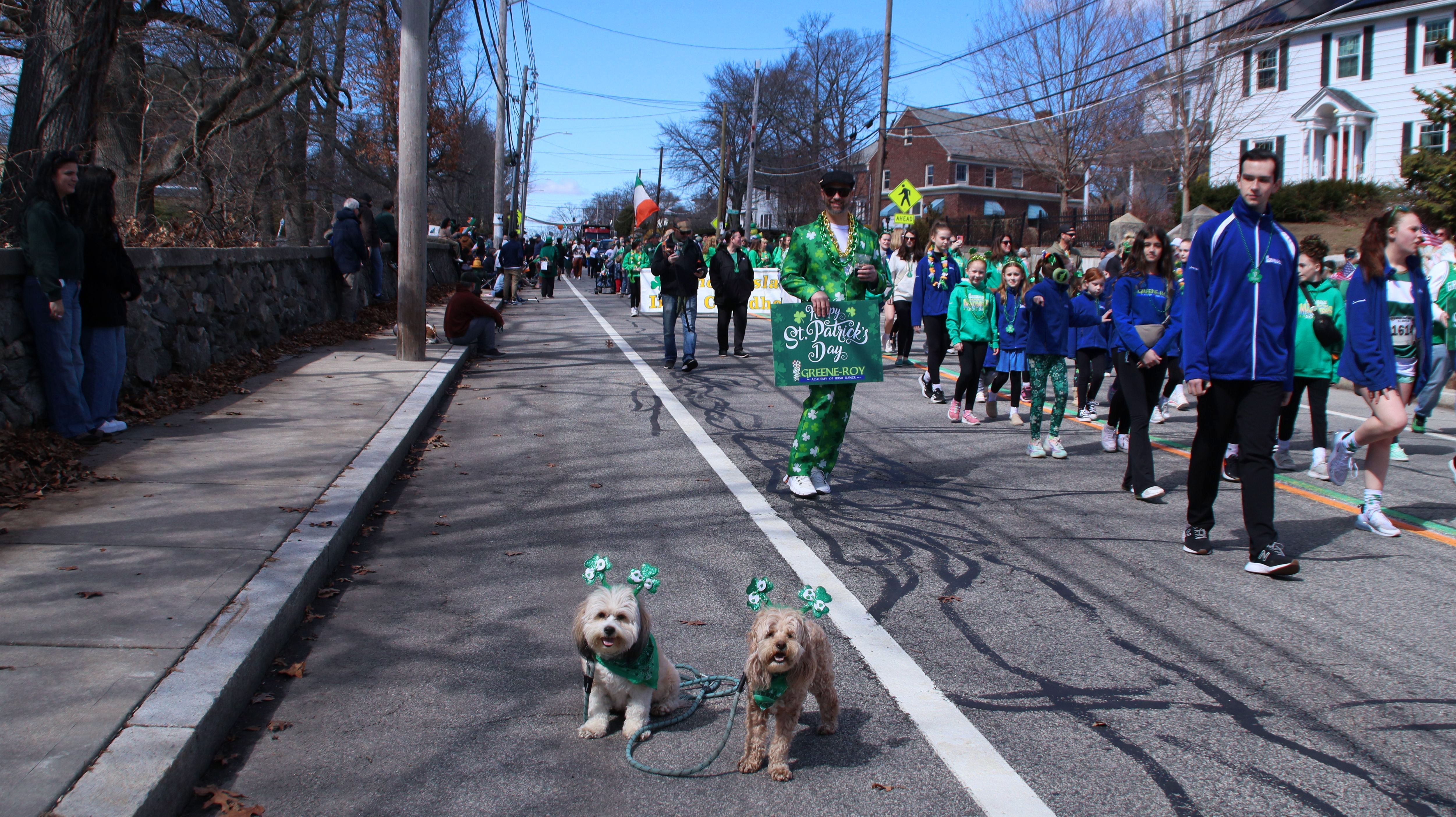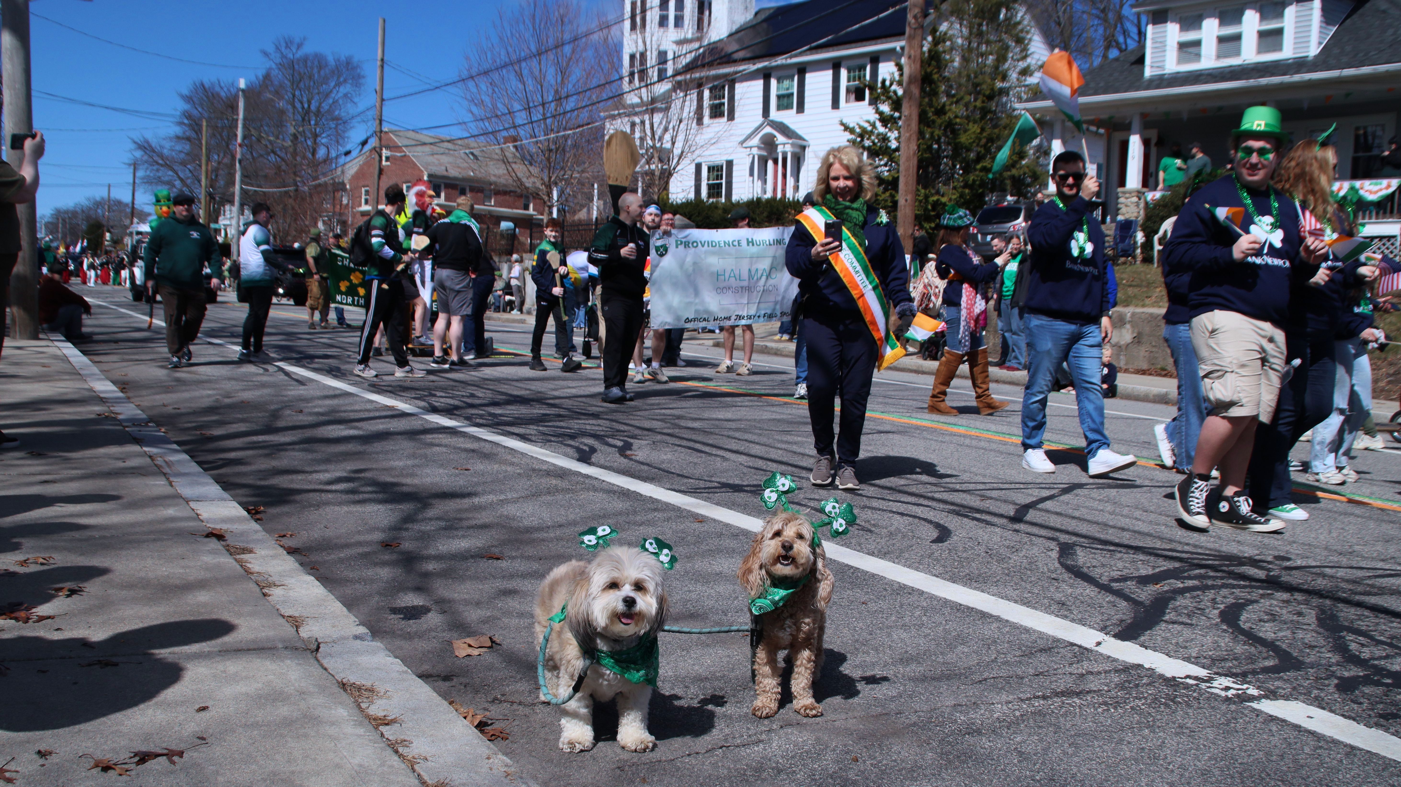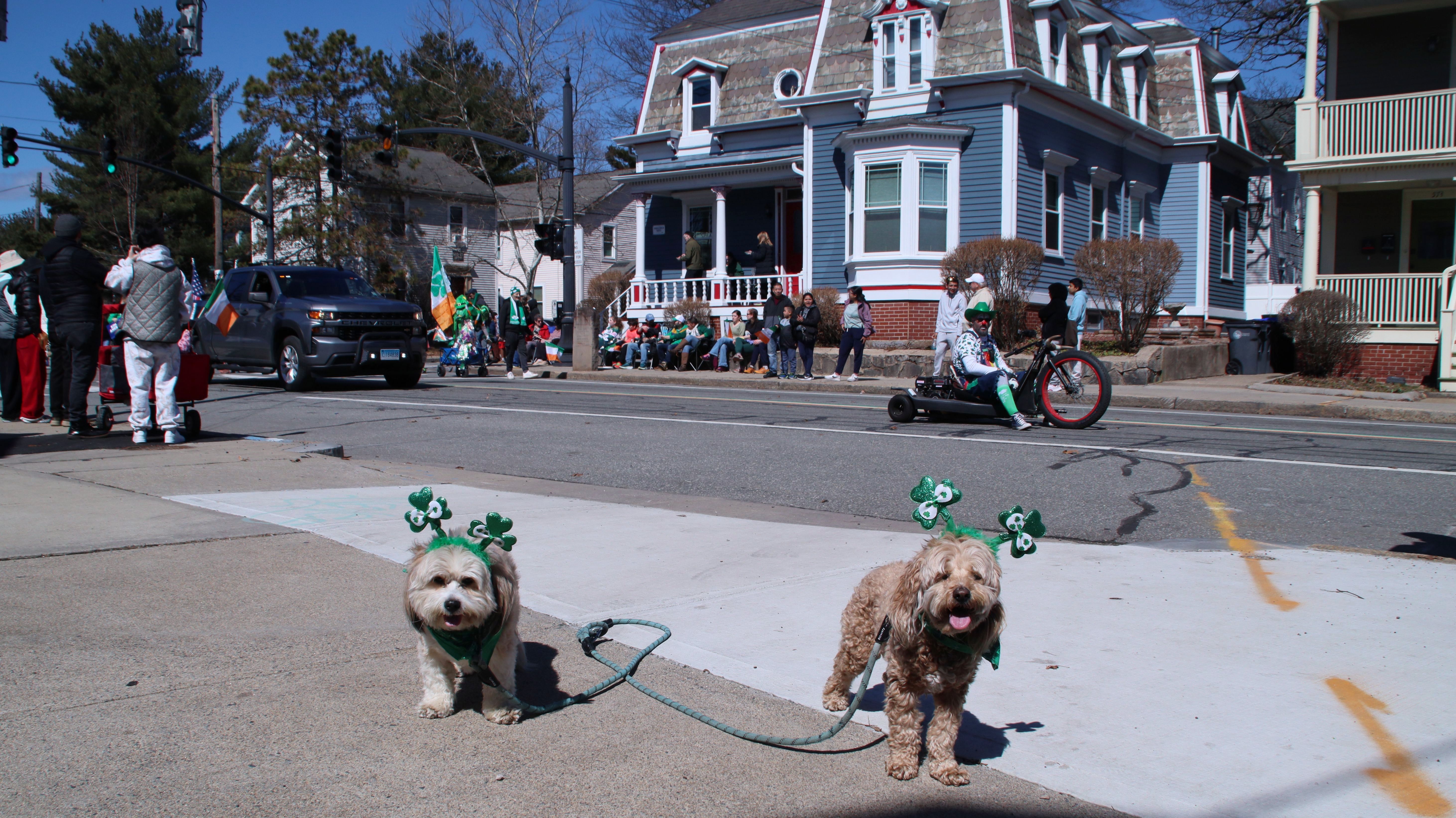 Happy St. Patrick's Day…again! Unlike the Newport St. Patrick's Day Parade, this one took place the Saturday after the holiday. The parade begins in the Elmhurst neighborhood and follows Smith Street (US 44) for about two and a half miles, ending at the State House. Before the parade, the Shoreham Bank St. Patrick's Day 5K road race was held along the same route, starting at the State House. We arrived just before the race began and ended up walking along the course as runners made their way toward us, gradually working our way up the route to the parade's starting point. We got there about 15 minutes before the parade began and found a great spot near the start. Unfortunately, we had to cut our day short. One of the groups in the parade was firing blanks from their guns, along with a cannon that was incredibly loud. The sudden noise made Lexi very nervous—she already struggles with fireworks and thunderstorms, and the repeated blasts were just too much for her. I do wish there had been some kind of warning, as we likely would have planned differently. The Newport parade didn't include any gunfire at all.