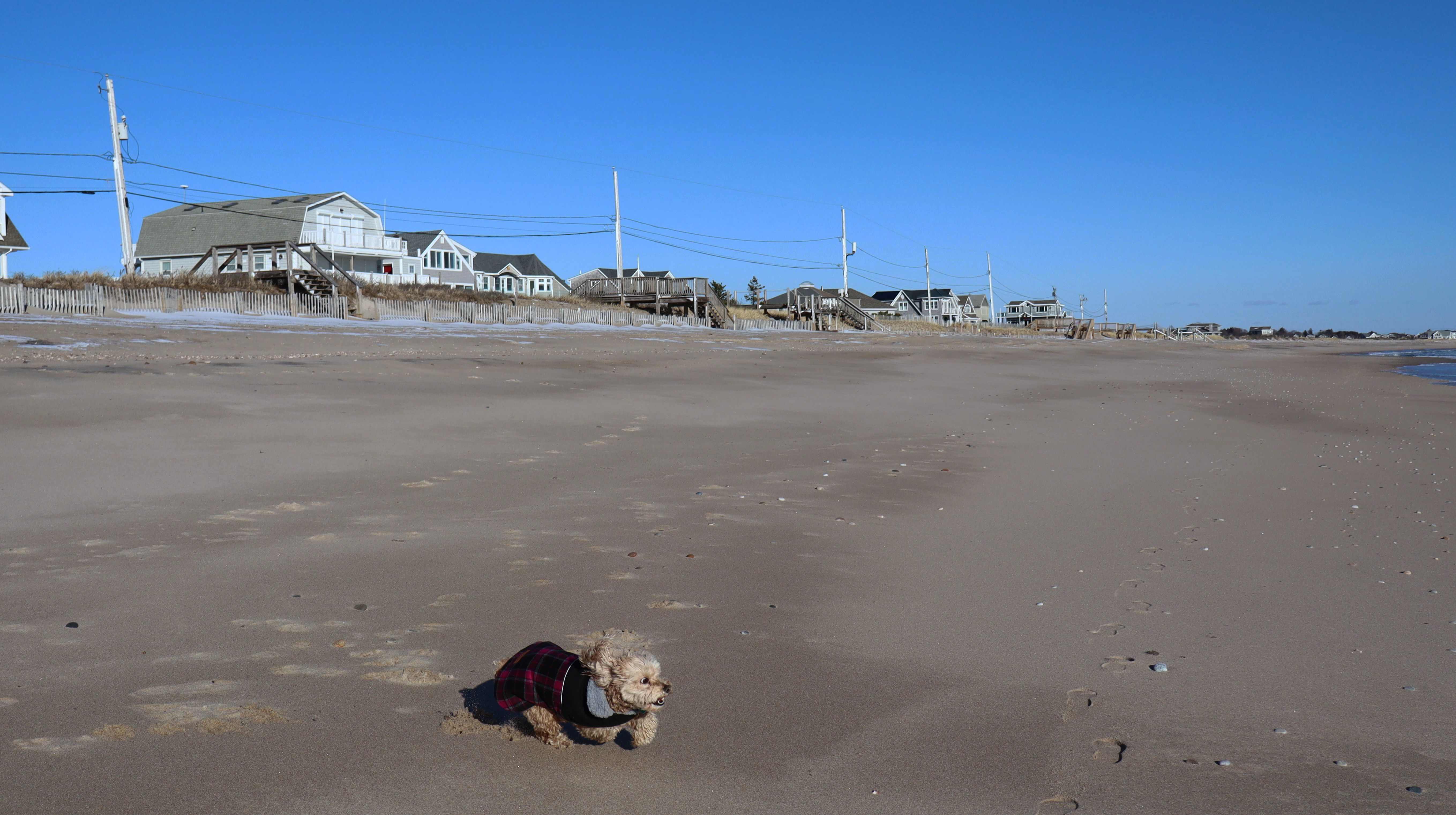 Evidently dogs are not allowed here. After getting out of the car, I spotted a sign with a number of different items listed as "prohibited" in small print. One of them was "Pets (Dogs and Horses)". Does that mean that cats are allowed? Also listed was "Nudity". Well, Mandy & Lexi had their sweaters on, so at least they didn't violate that one! Seriously, I guess years ago this was a nude beach. Now most of it is closed in the summer months because of Piping Plovers. A small section is open for residents for sunbathing and swimming, but the entire beach is open from September 16 to March 31st each year for the public. Since we were already out of the car, we did take a few pictures of the beach near the entrance. Like most beaches in this area, it is quite beautiful. It was the middle of February and temps were in the mid 30's, so I'm pretty sure we didn't disturb any birds. We only stayed about 10 minutes, but I guess this is not a place to bring your dogs, even in the winter.