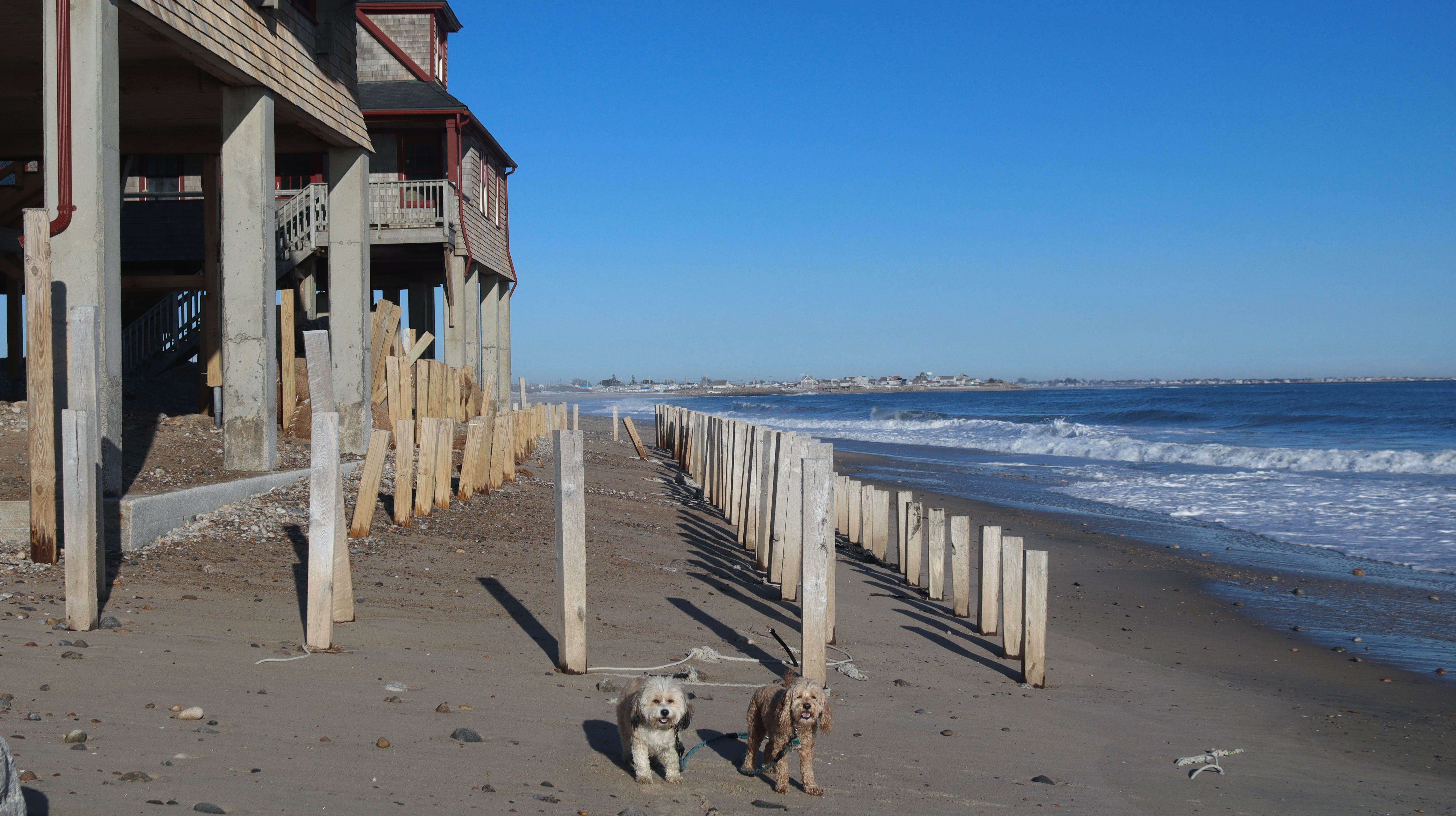 Last year we visited a beach on Christmas Day, so I thought maybe we could make this a tradition. It wasn't as warm this year, and this beach wasn't as nice as the one we went to last year. We didn't take that many photos, and some of the ones we did take didn't come out that well for various reasons...mostly because I forgot the good dog treats at home, and Mandy and Lexi weren't as cooperative posing with the emergency treats I keep in the car. (They are so spoiled!) After walking down the beach, we wound up walking up Cards Pond Road to the Theatre By-The-Sea, before heading back to the car and calling it a day.