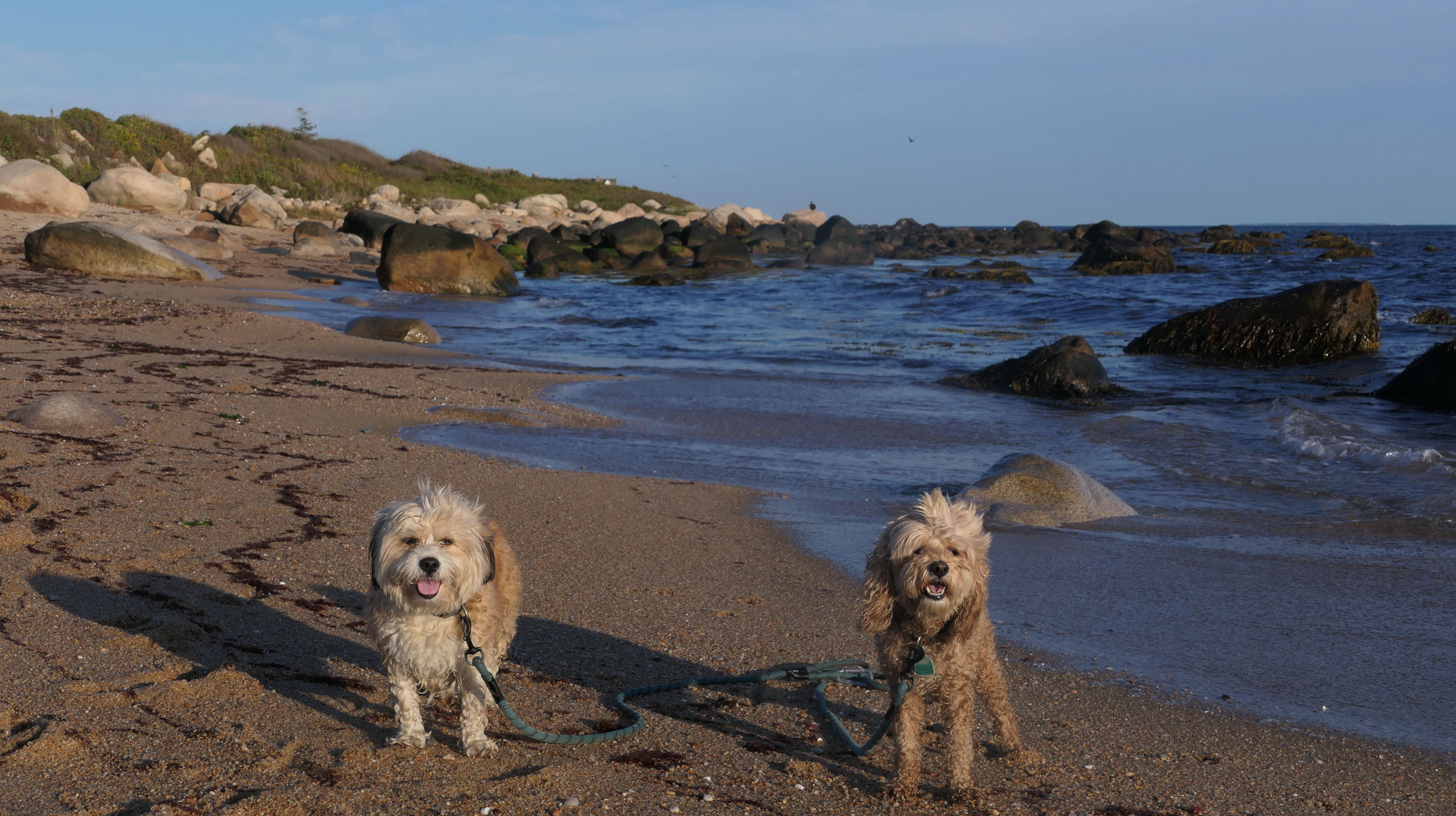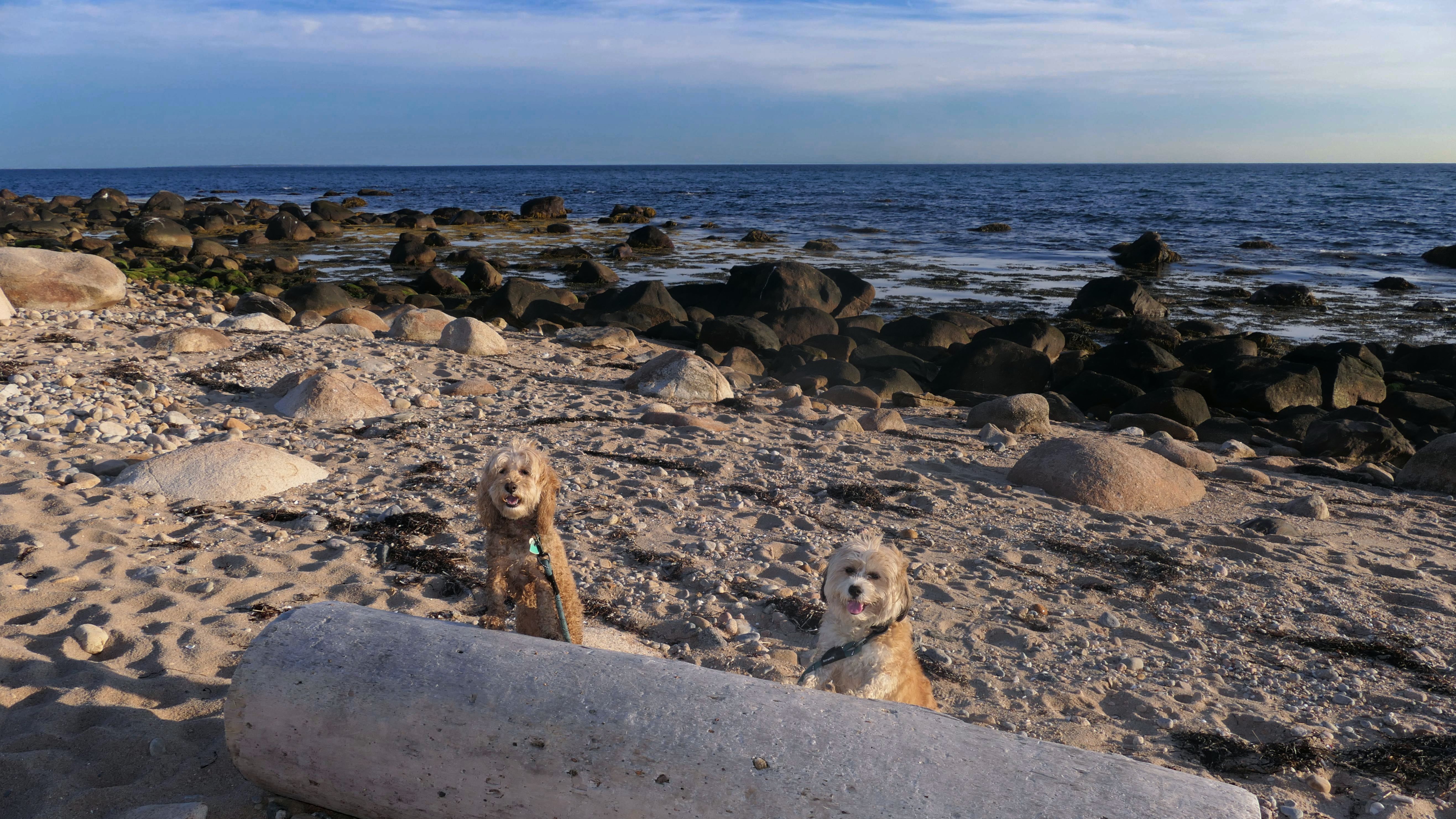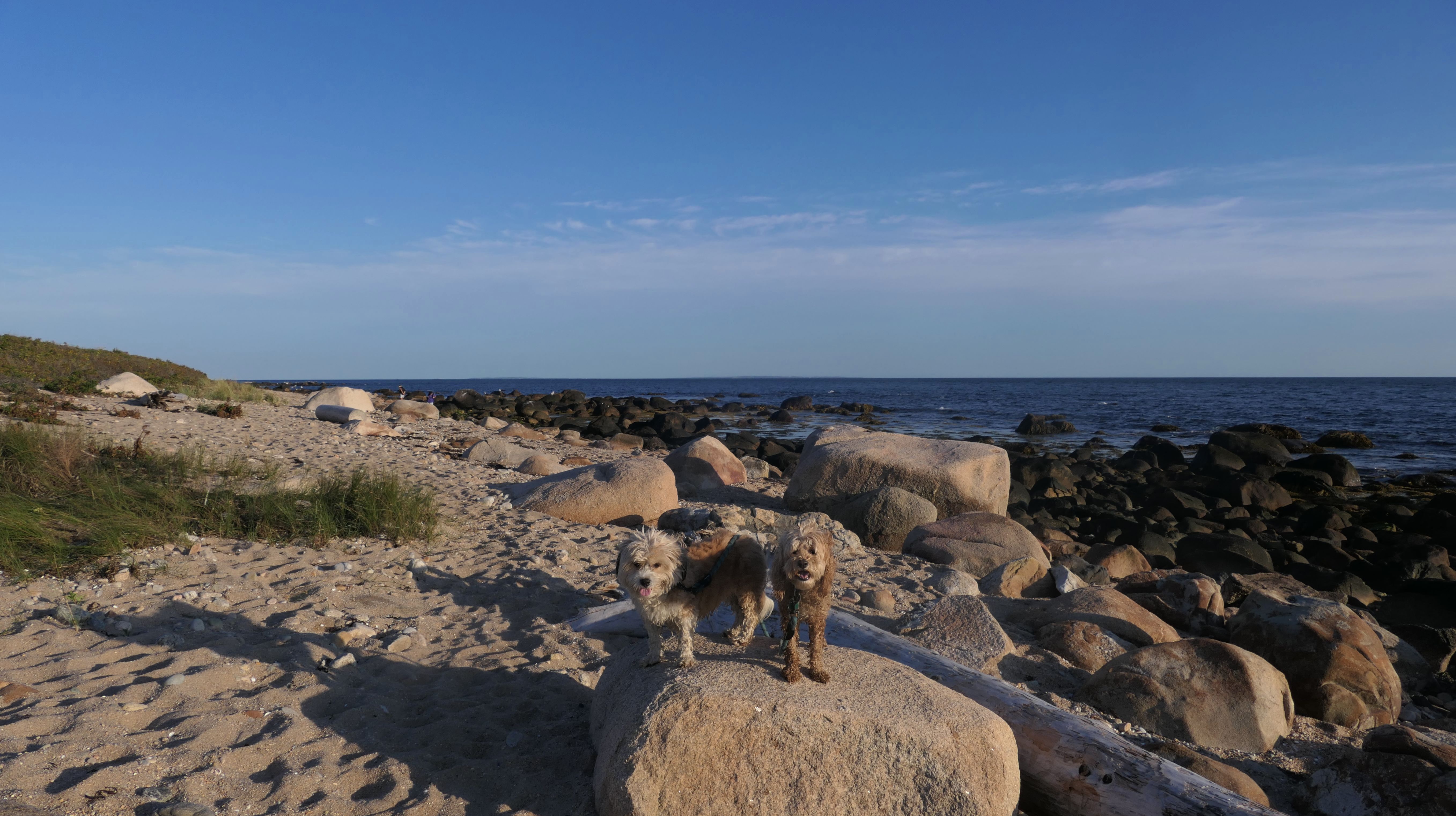 We've been here many times before, but this was only the second time we managed to complete the full loop. The first was during our very first trip to Westerly, way back in December 2020. We attempted it again last summer, but high tide and overgrown trails around the rocks stopped us short. This time, we arrived right at low tide and started out on the bay side. The dogs love this part—it's calm, and they enjoy splashing around in the gentle water. Near the tip of the point, there's a small stream we have to cross to finish the loop. Back in 2020, it was cold and windy, and I had to wade through the stream to avoid turning back. Today, I still had to cross it, but the water was so low it felt more like stepping through a puddle. For the first time, we made it up to the ruins—remnants of an old military fort hidden among the dunes. The narrow trails leading there were just barely passable, and they'll be even tougher to navigate later in the summer when growth thickens. It was exciting to explore something new in a place we thought we knew well. (In 2020, we had skirted the rocks to complete the loop—I didn't even know the ruins existed then.) We wrapped up the walk along the ocean side, where the views of Block Island were strikingly clear. Usually, the waves on that side are pounding, but today the sea was surprisingly calm. With the seasonal dog restrictions starting May 2nd—when pups are only allowed after 6 PM—this was one of the last afternoons we could enjoy this walk freely. All in all, it was a great three mile loop on a beautiful spring day.