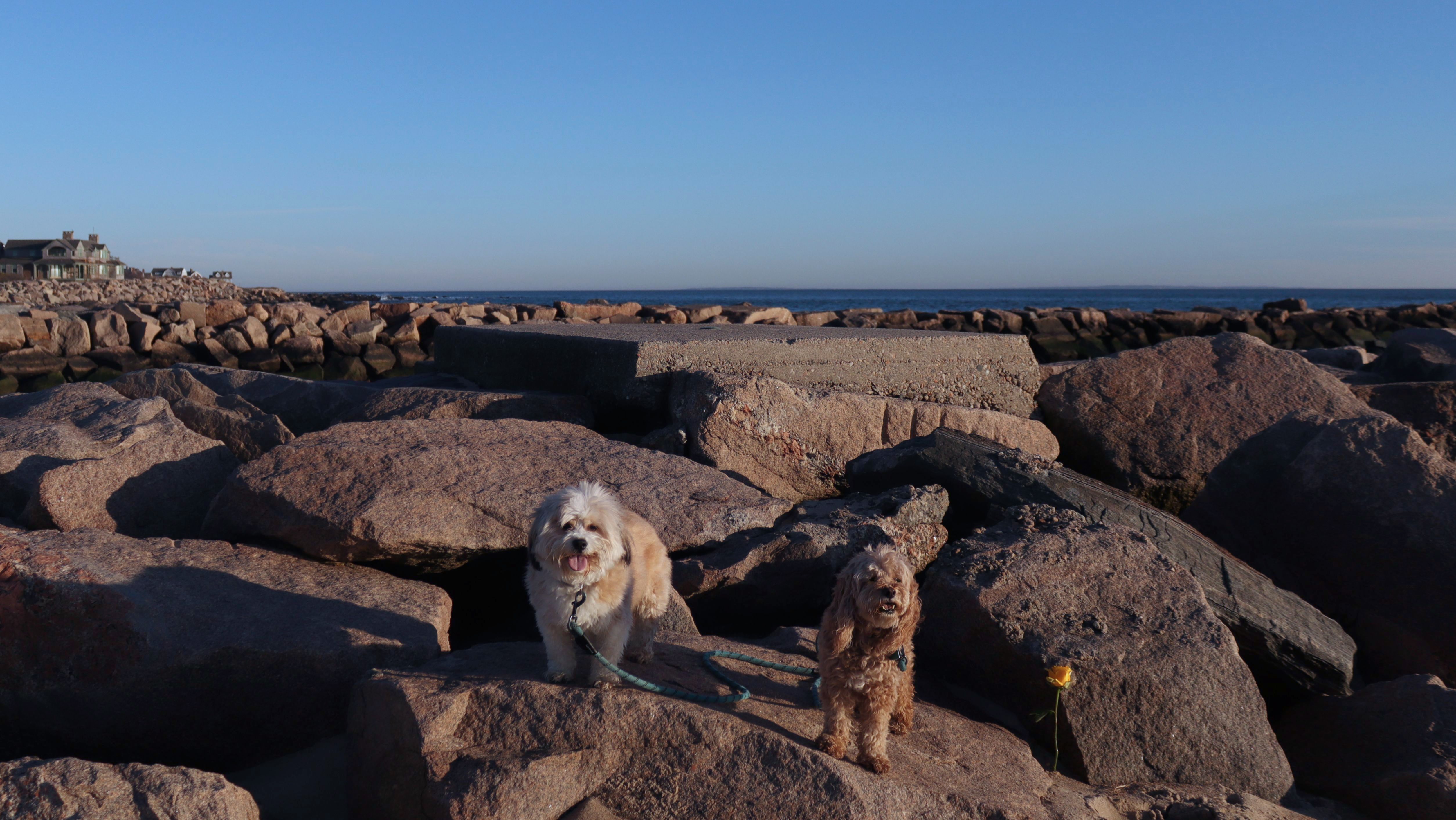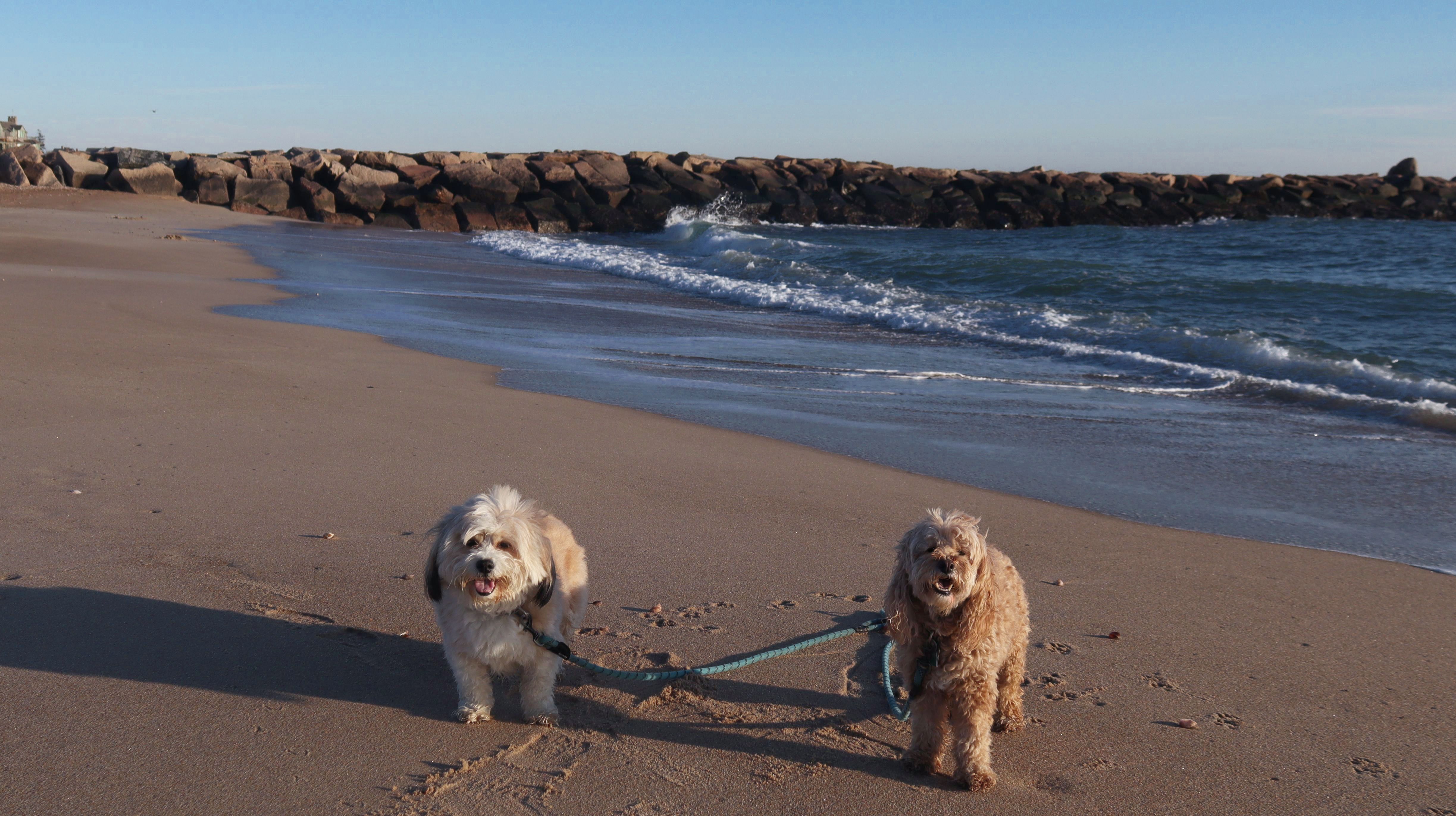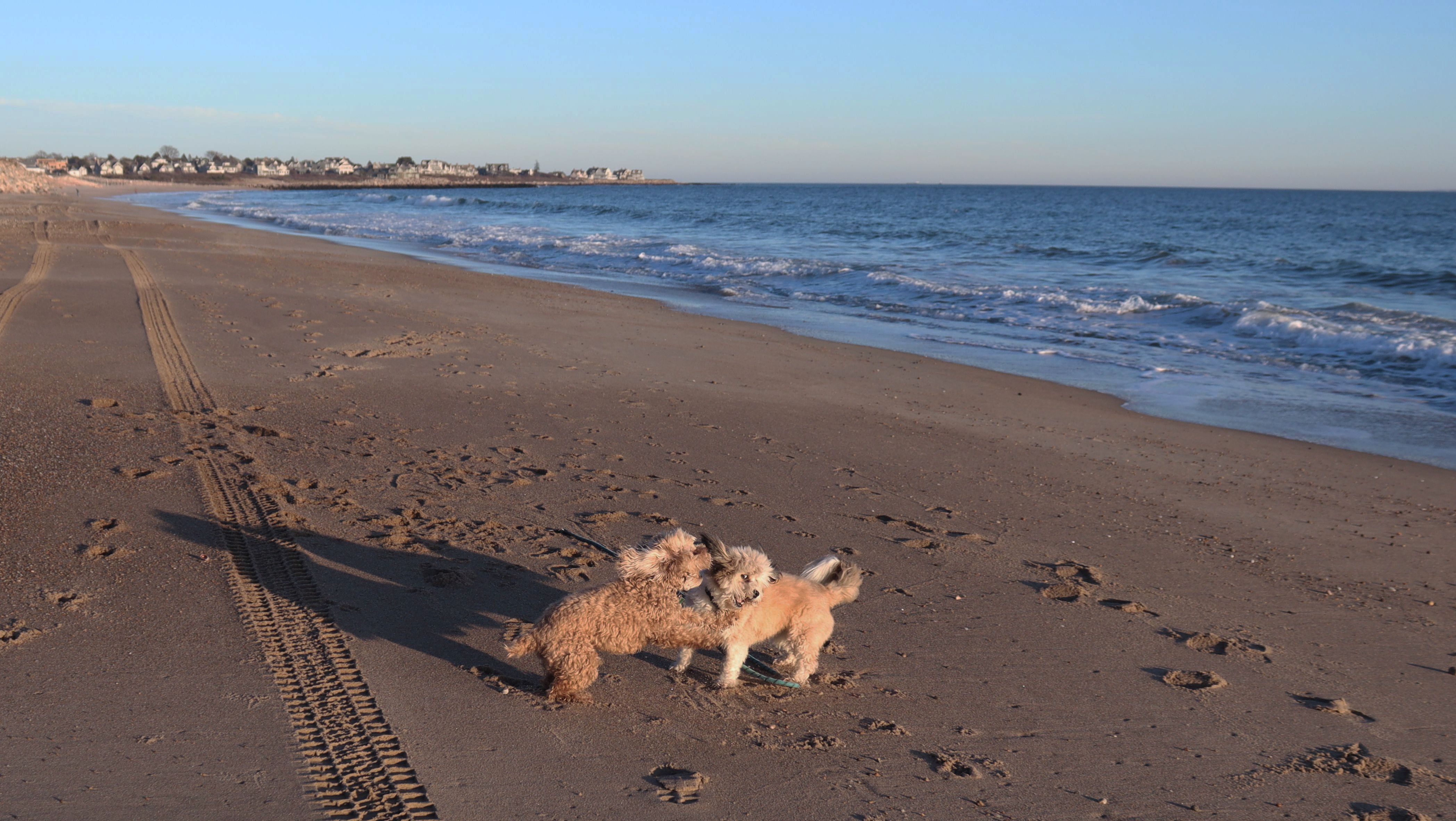 This is a small beach, wedged in between Napatree Point Conservation Area and the Watch Hill Lighthouse. I'm pretty sure this is a "private" beach for Watch Hill Association members. There is an entrance near the carousel that is completely closed off and gated in the off-season. We reached the beach via a short trail from Napatree. The waves were absolutely ripping, as it had stormed most of the day and was still very windy at the shore. We came here after our Wilcox Park adventure, and arrived just in time to enjoy a beautiful sunset. On our walk back, the dogs decided it was playtime. They seem to enjoy the beach so much!