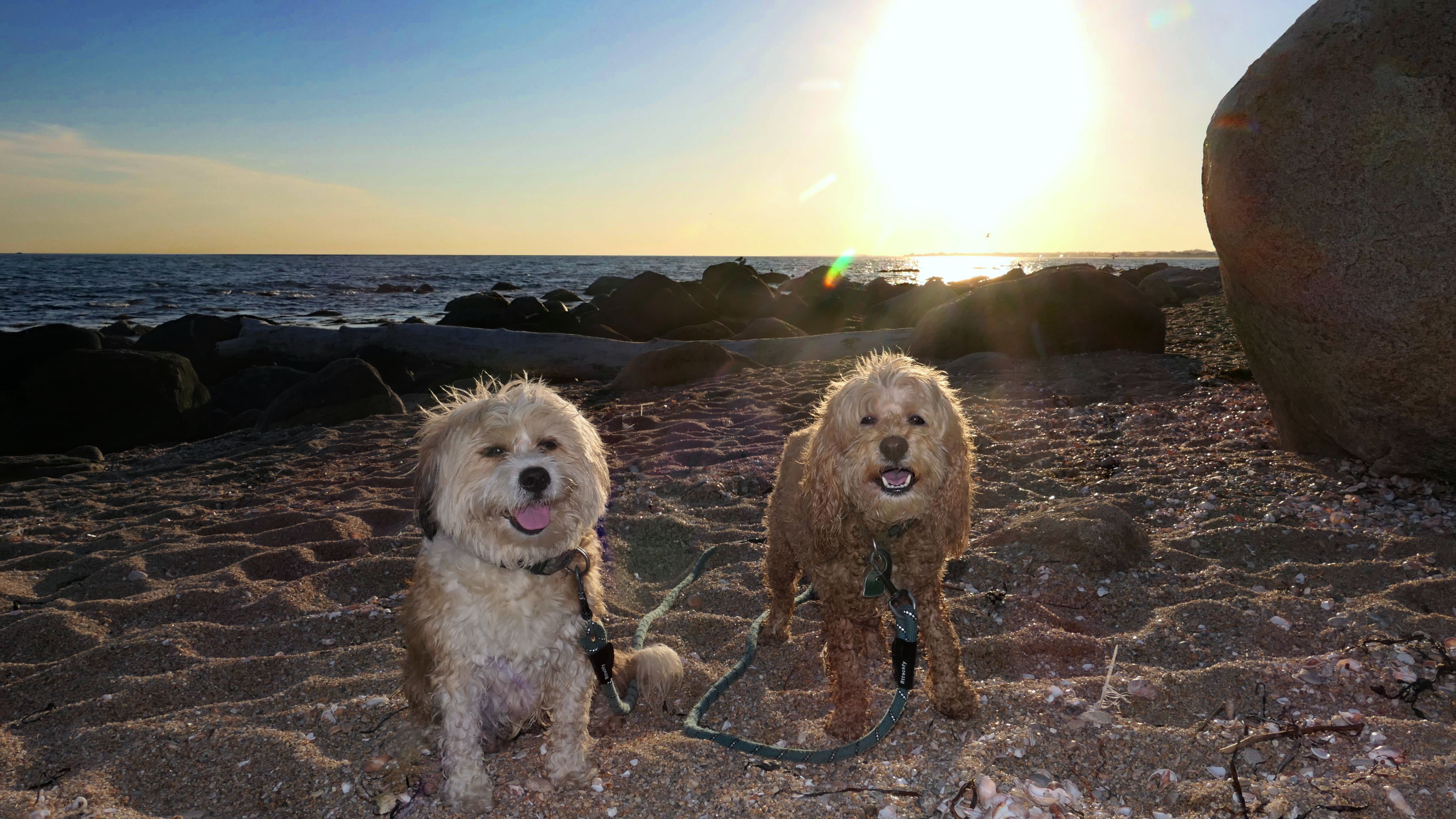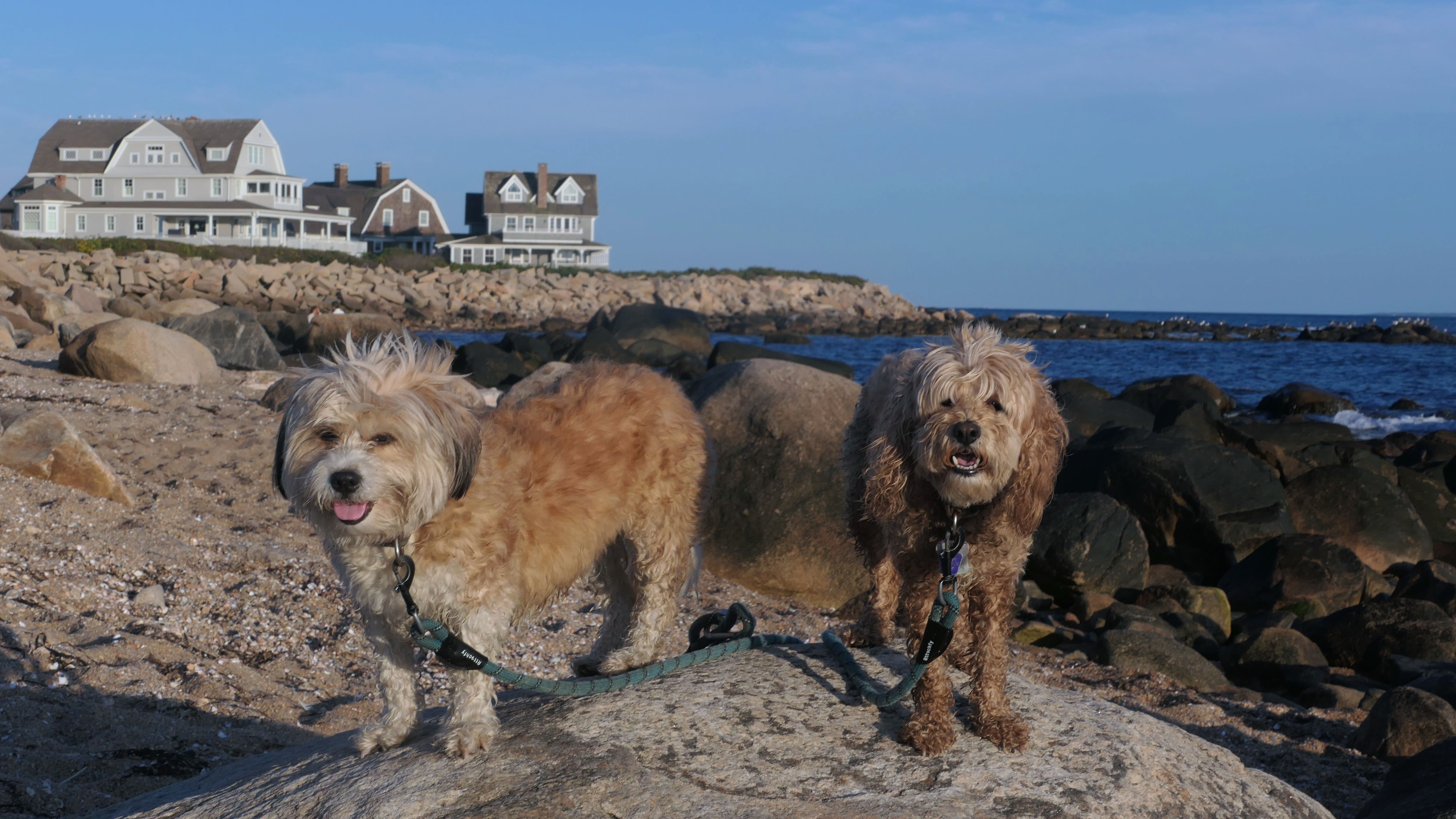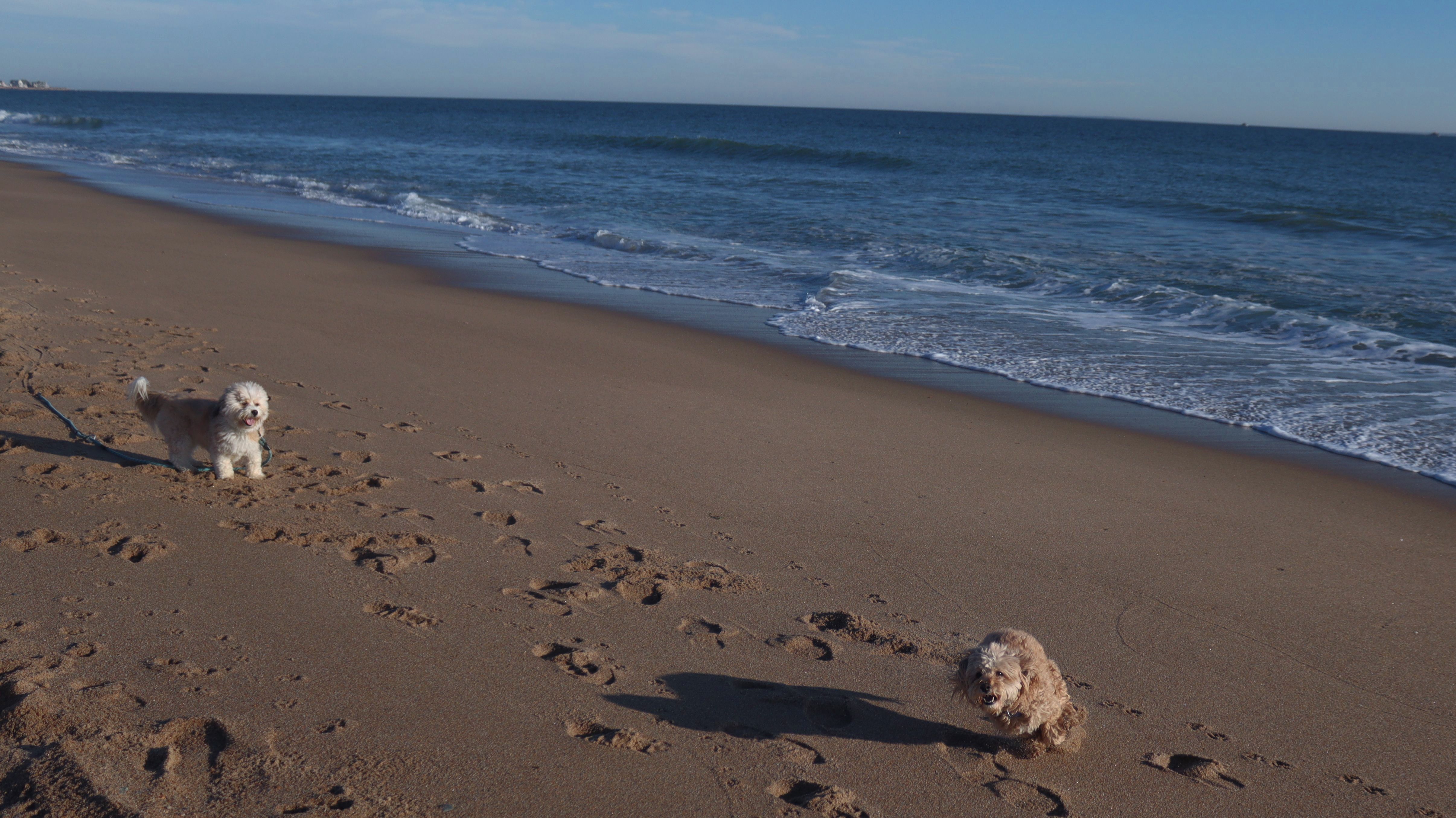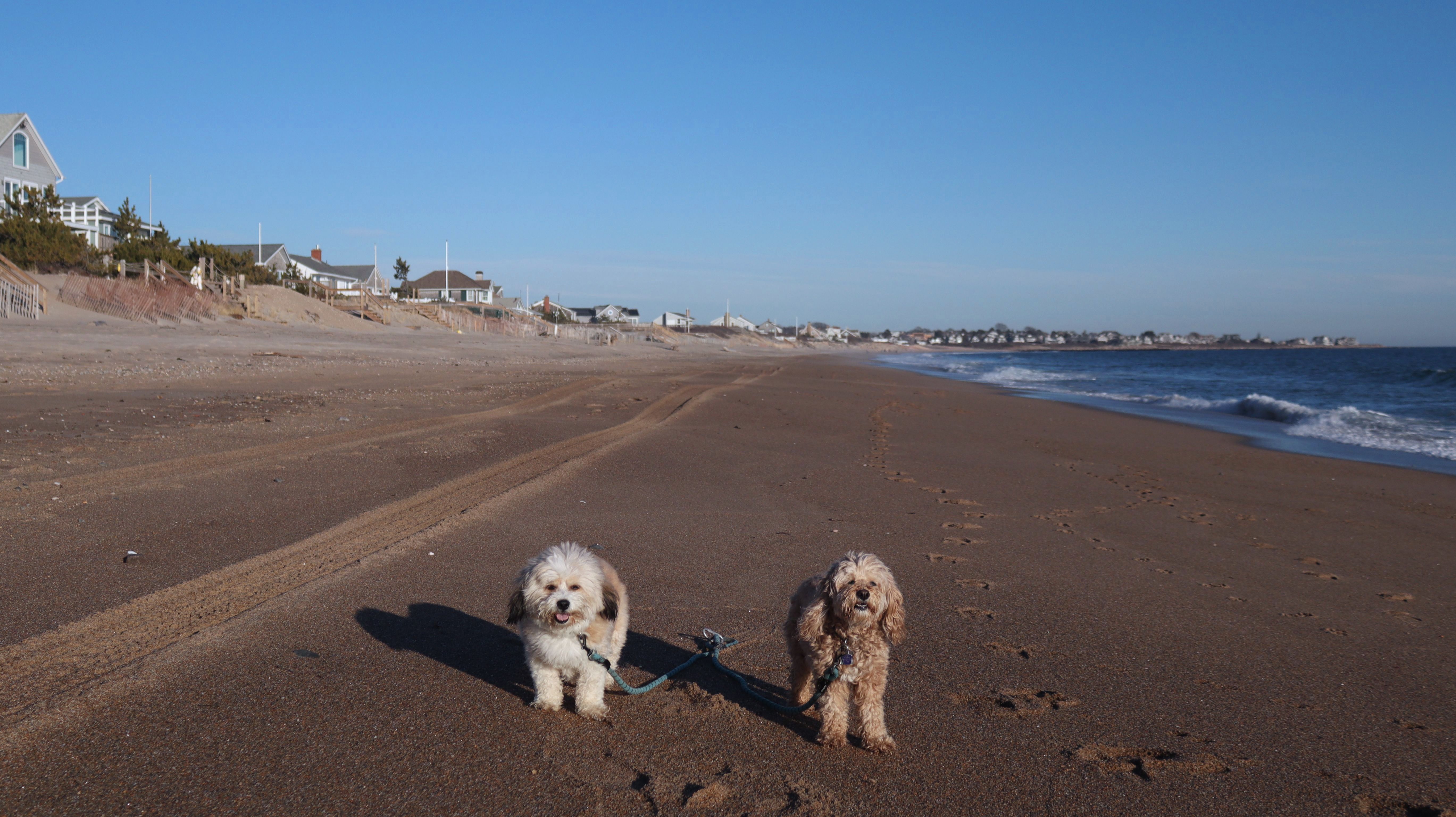 This is a small beach, wedged in between Napatree Point Conservation Area and the Watch Hill Lighthouse. I'm pretty sure this is a "private" beach for Watch Hill Association members. There is an entrance near the carousel that is completely closed off and gated in the off-season. We reached the beach via a short trail from Napatree. The waves were absolutely ripping, as it had stormed most of the day and was still very windy at the shore. We came here after our Wilcox Park adventure, and arrived just in time to enjoy a beautiful sunset. On our walk back, the dogs decided it was playtime. They seem to enjoy the beach so much!