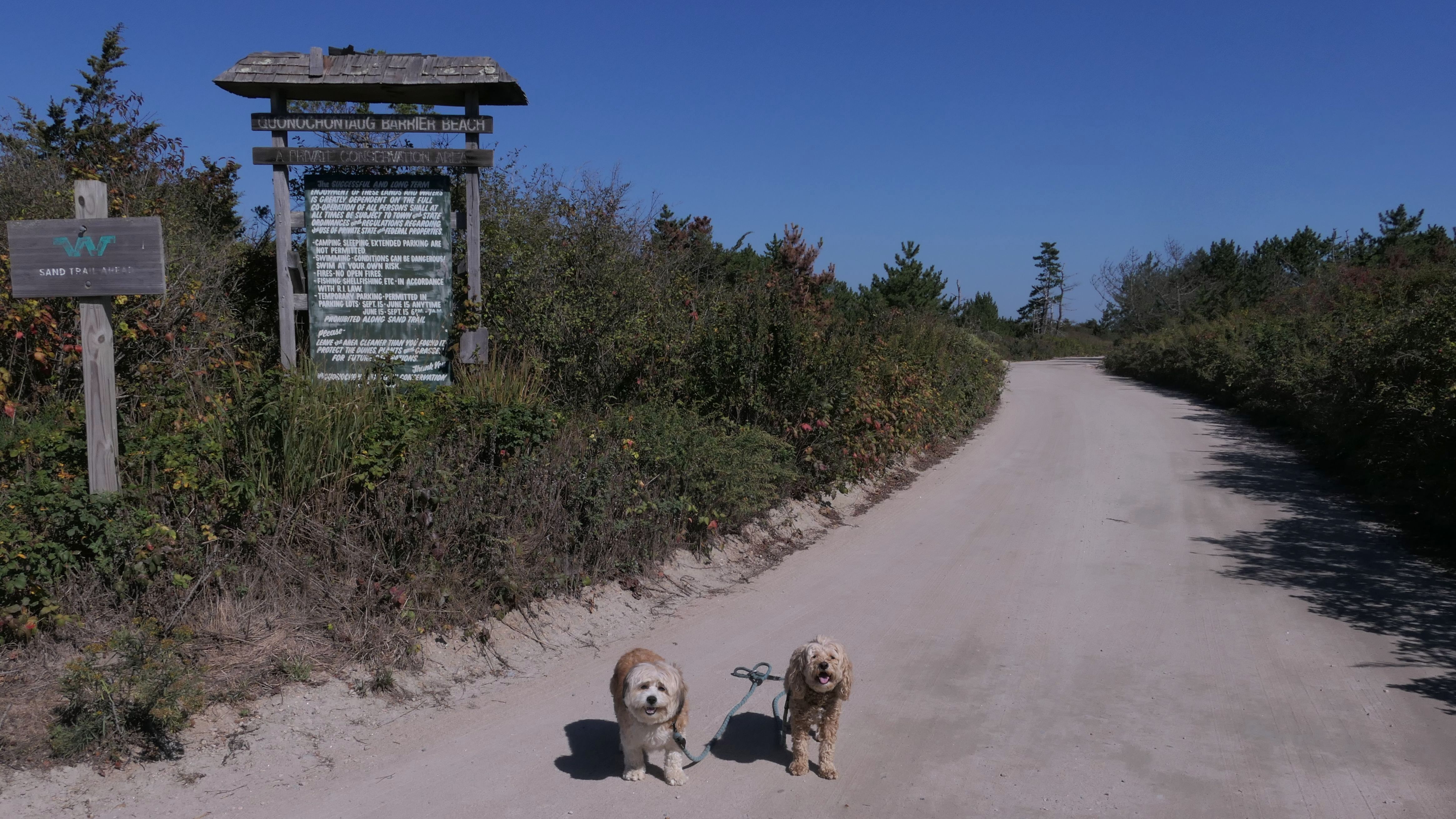 Our intention was to walk the Sand Trail. It was boring, so we only walked a little over half-way, and then turned around and walked back on the beach. We probably weren't supposed to be on the beach here, it's for Weekapaug Fire District Residents only, but nobody else was using it and the dogs wanted to play. While it was sunny all day, storm clouds developed while we were here, so it was probably a good thing we didn't finish the trail, since by the time we got back to car it had started to sleet.
