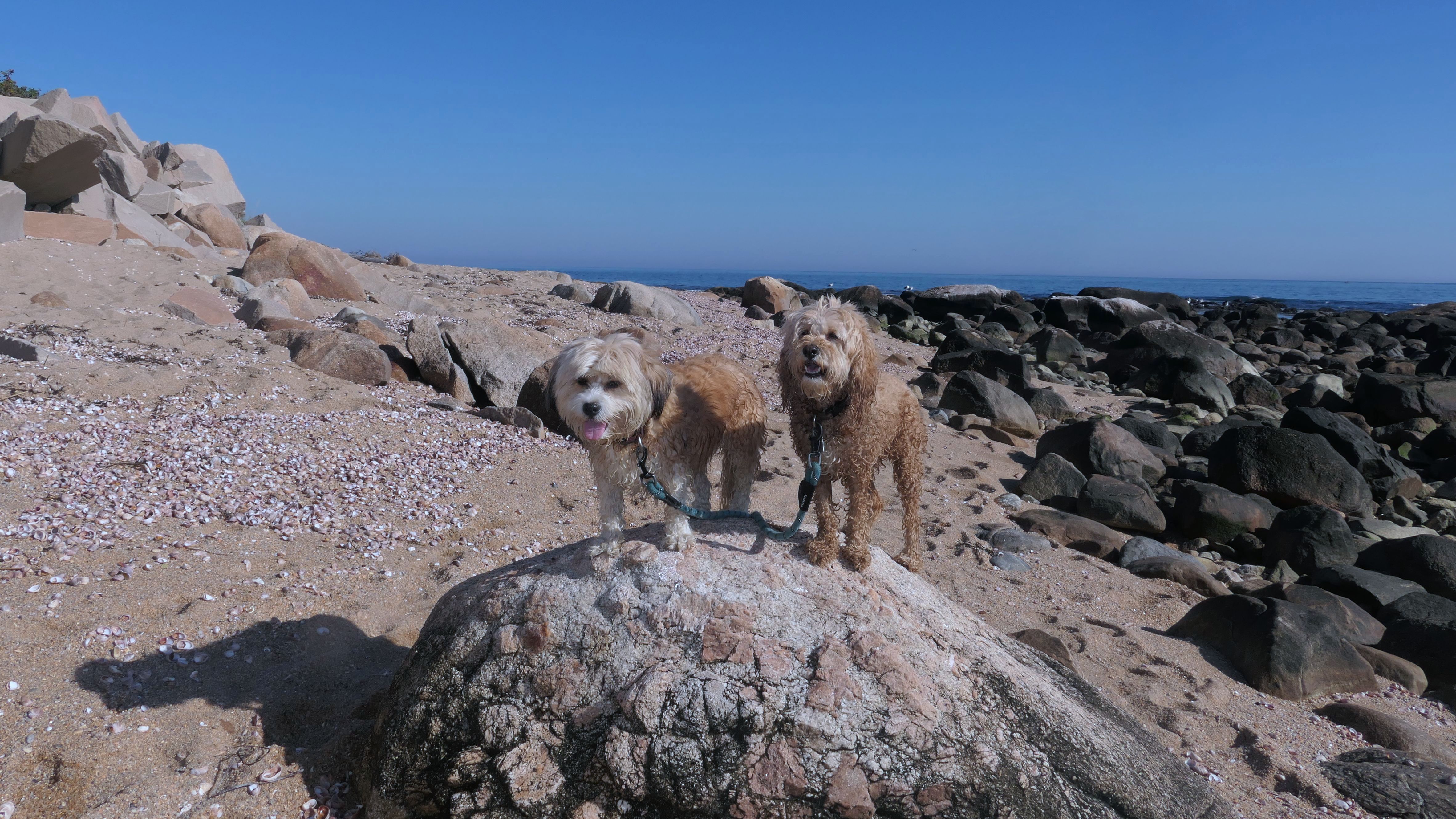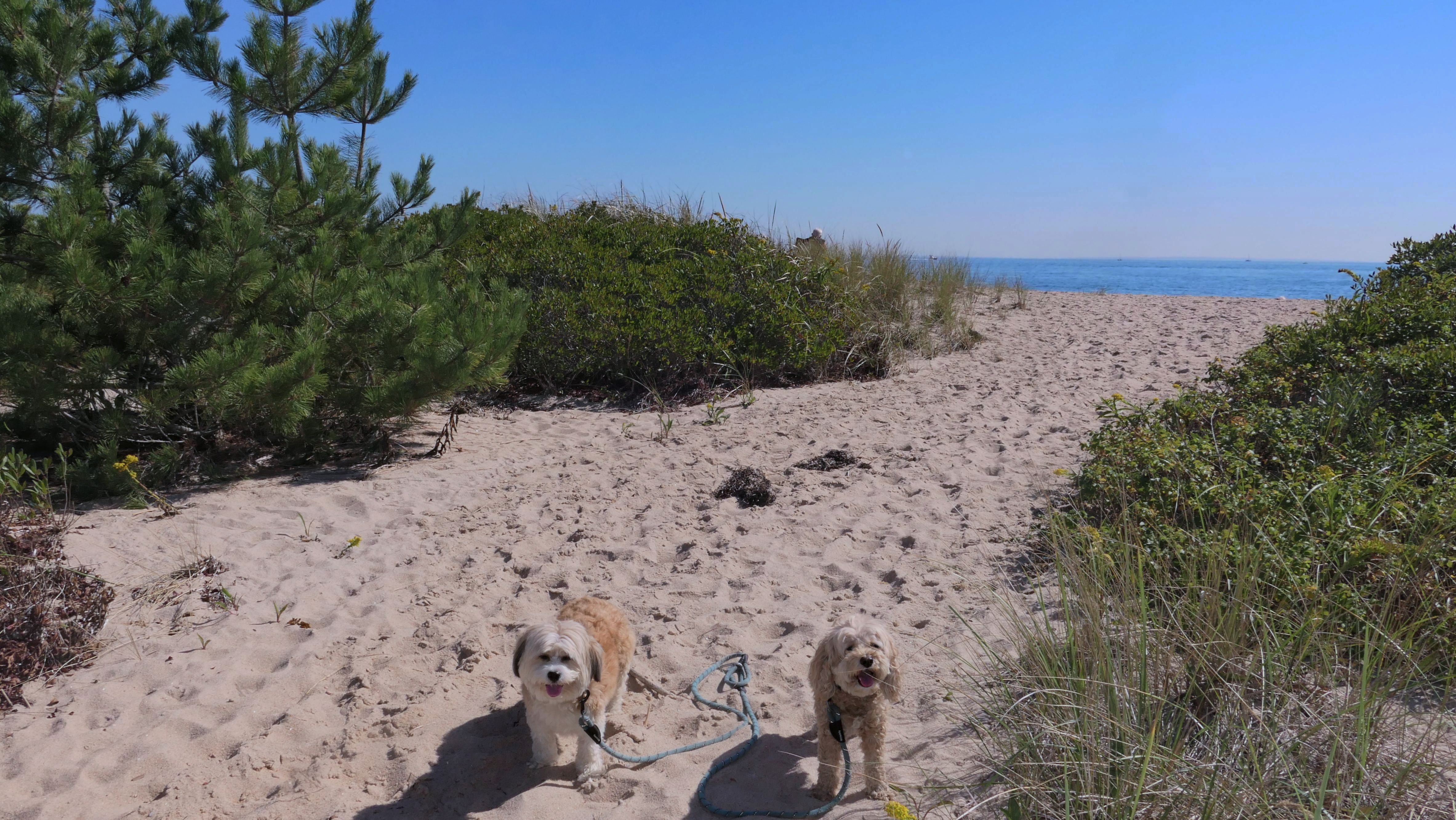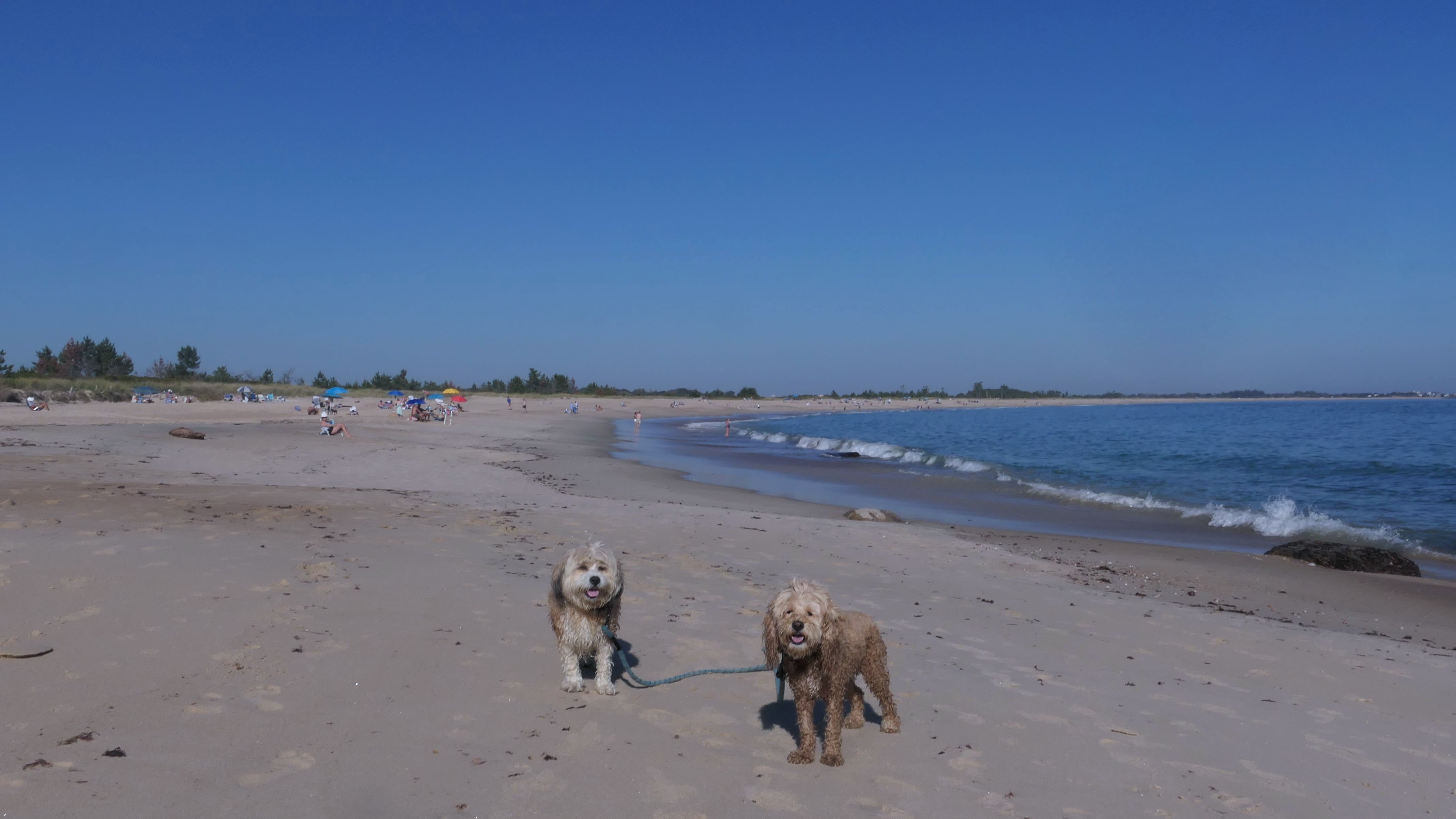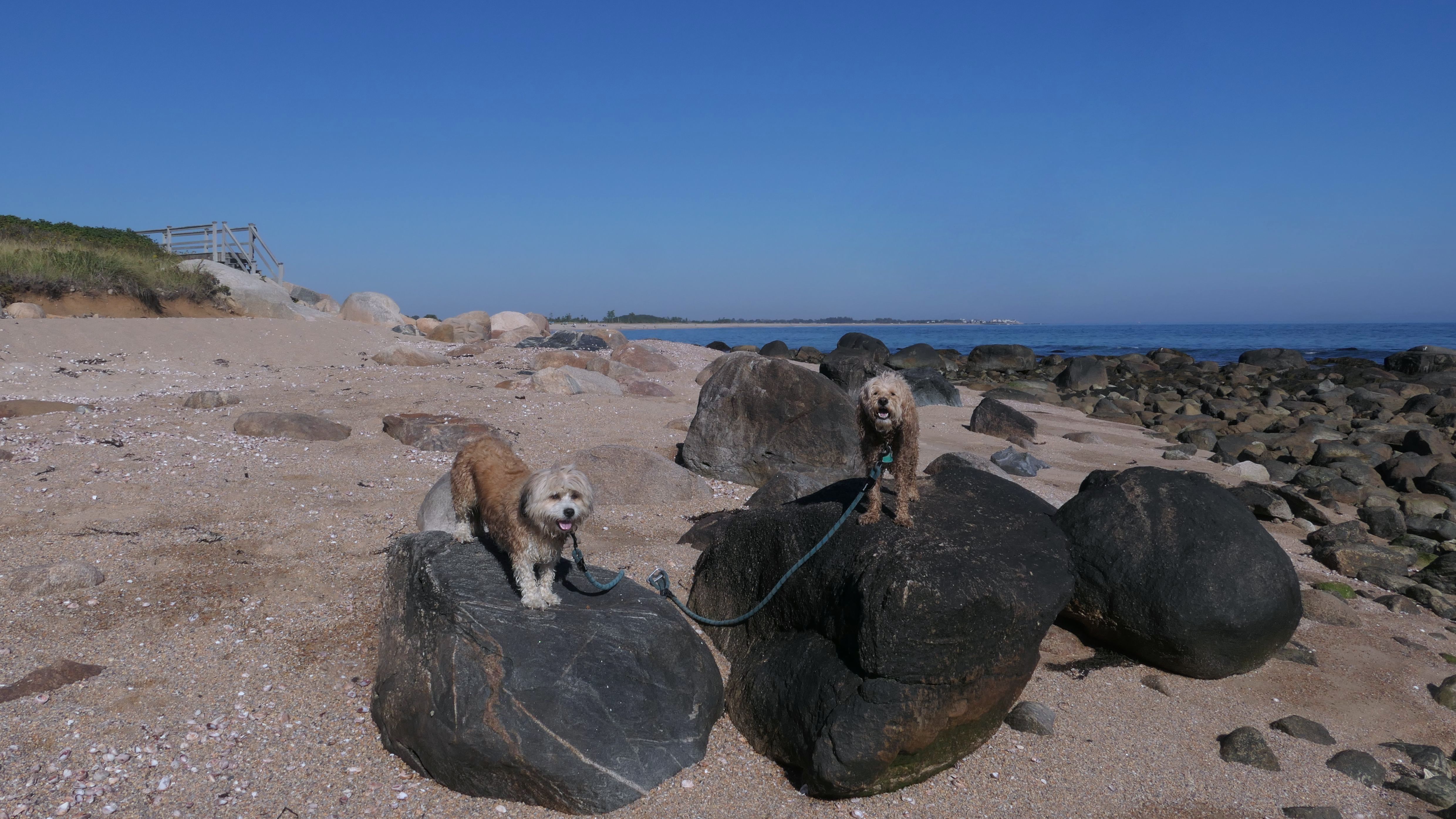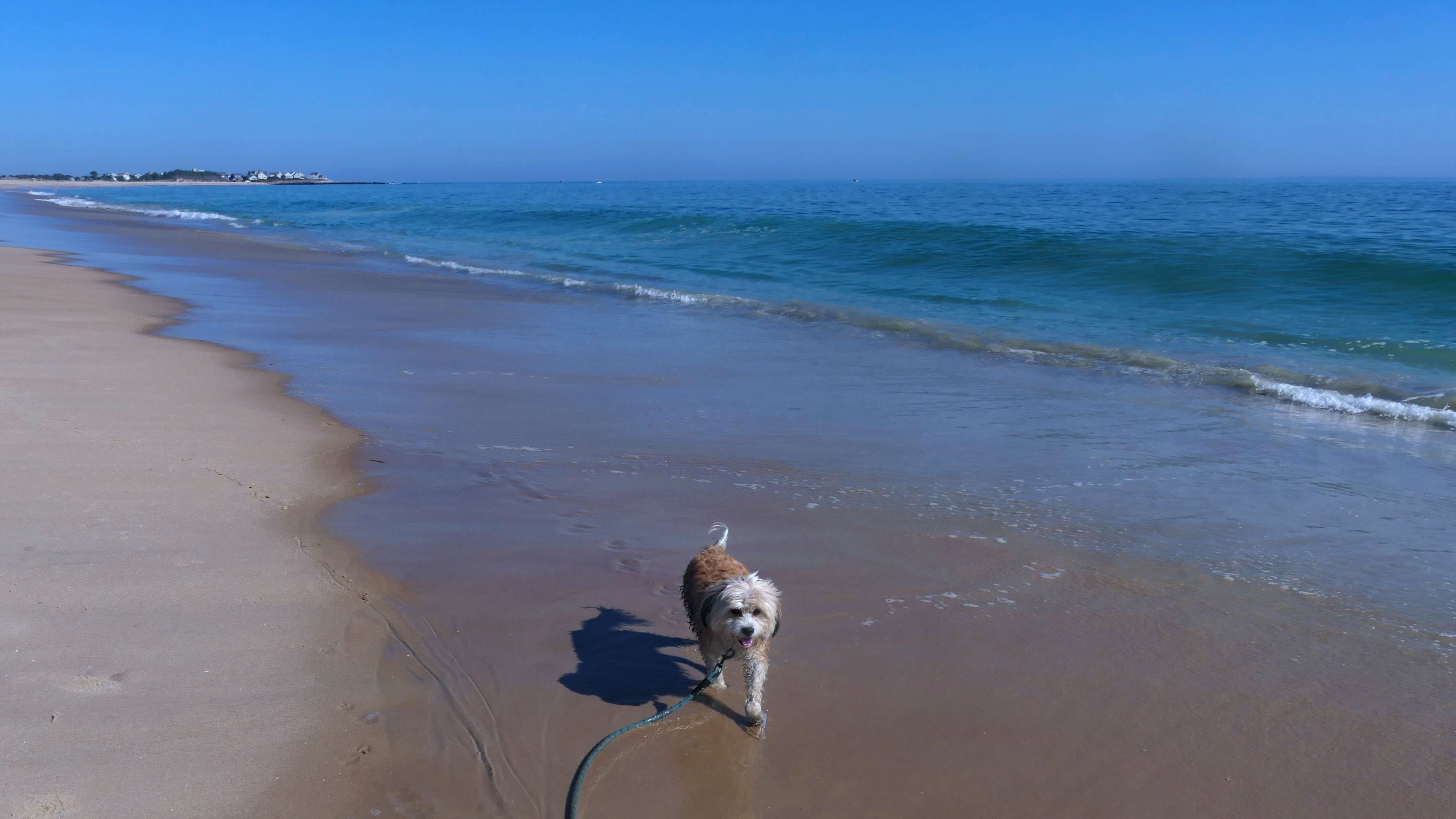 This is a public beach in the Watch Hill section of Westerly. The "Watch Hill Lighthouse Village Loop" in the All-Trails app utilizes a short section of this beach. There's a sign that says "No Pets", but you can ignore it. There is another sign that specifies that dogs are allowed in the off-season any time, and before 8 AM and after 6 PM during the summer months (May 2nd through Labor Day). This corresponds to what it says on the Town of Westerly's website. There's no dedicated parking for this beach. You have to park at Watch Hill and then access it through one of the right-of-way paths. We visited here a second time, and walked more of the beach. It's about two miles long and we probably walked about half of the total length before turning around. This time, it was an usually warm day in April. It had made it up to 90 degrees inland, but down here it was about 15 degrees cooler (just like the summer), and was very nice.