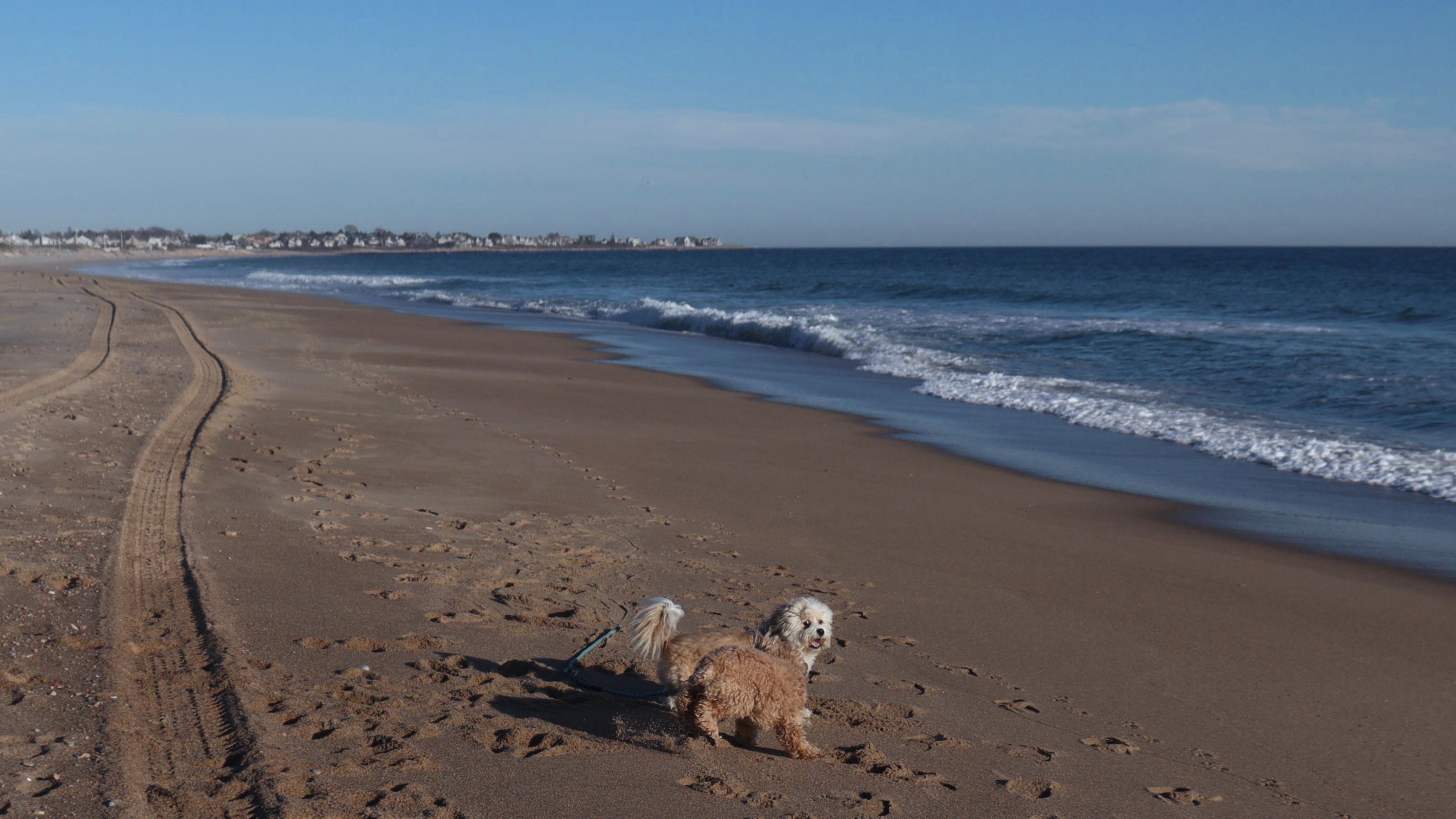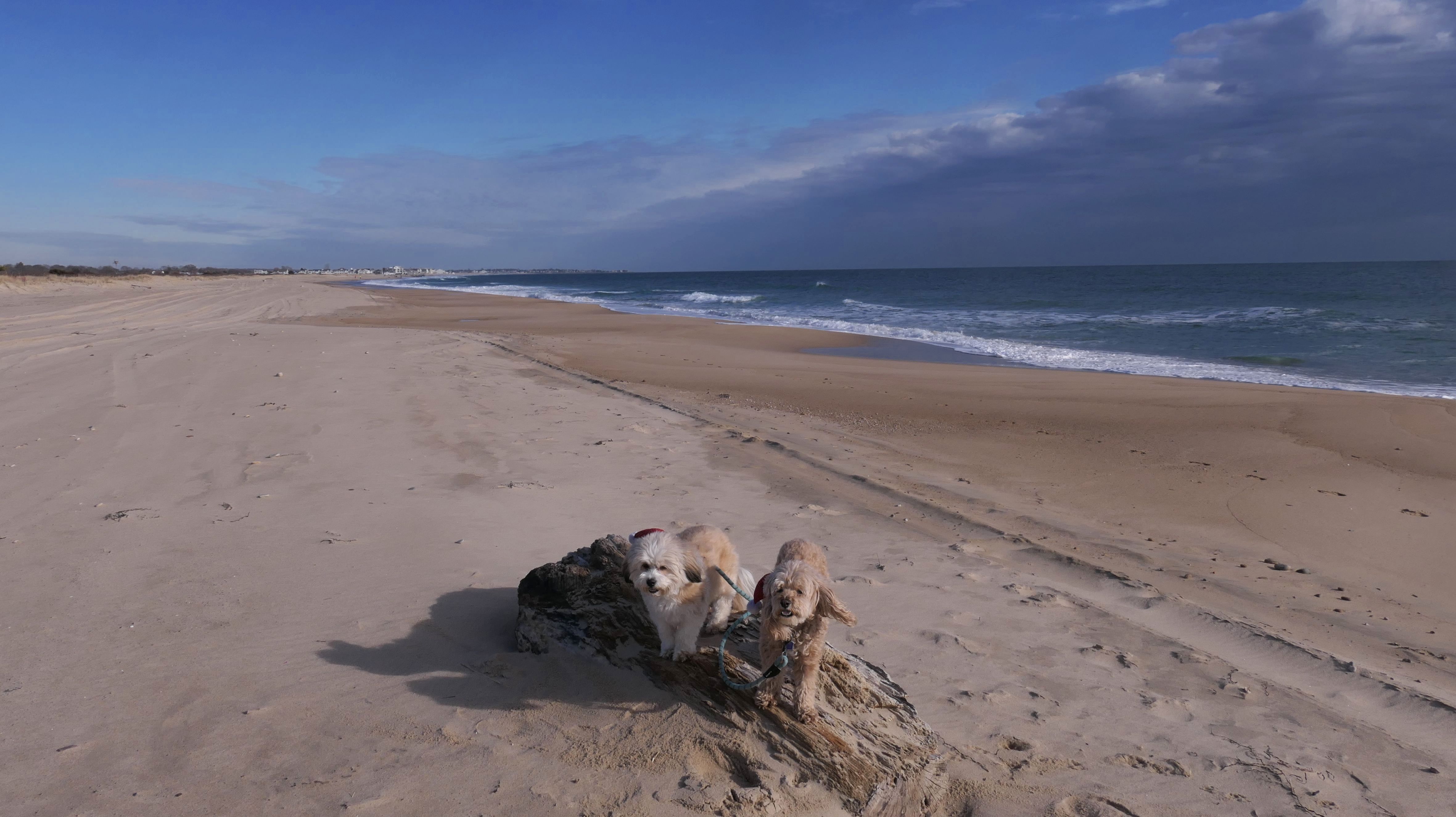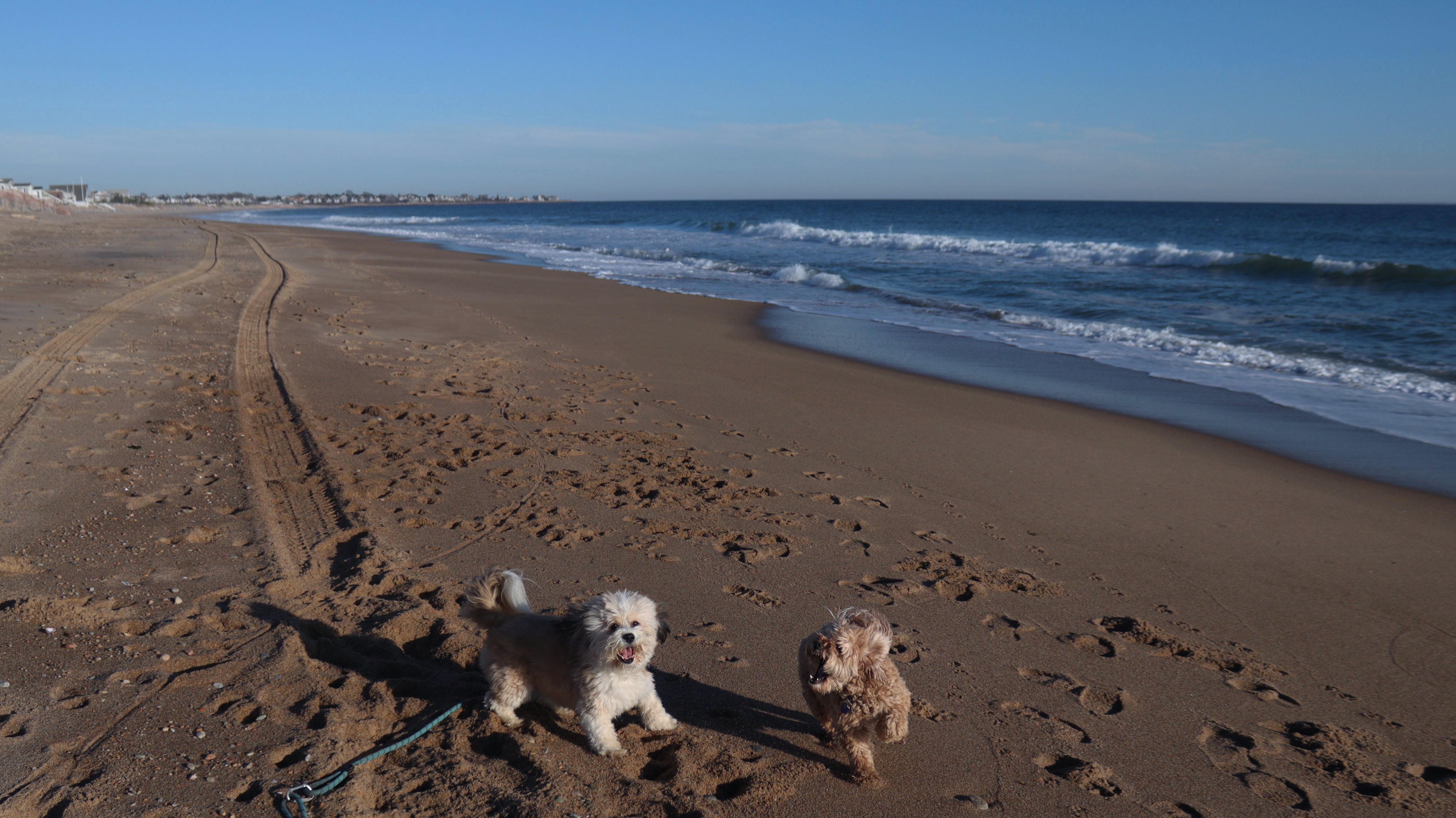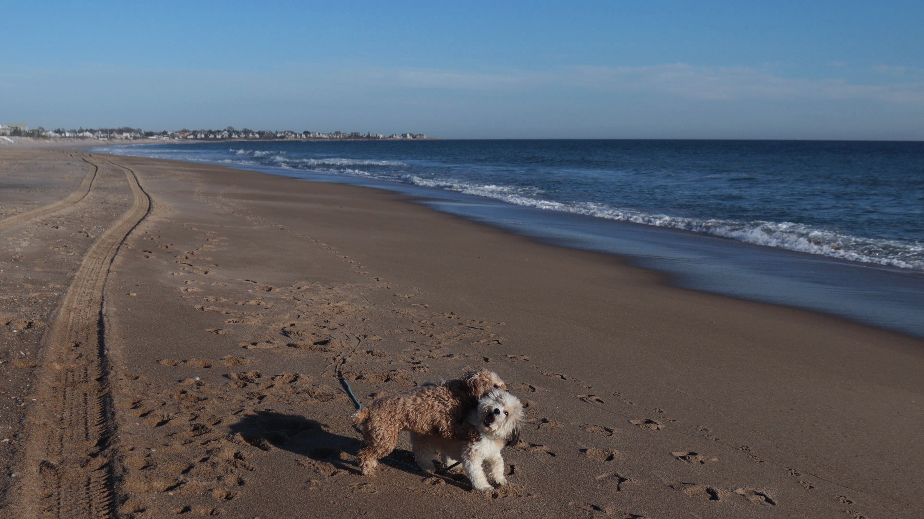 According to this website, this was only the second time we've visited this beach. That's not entirely true, though, since we've been to the beaches on either end—Misquamicut and Dunes Park—multiple times, with some overlap along the way. Still, about half of our walk covered ground we hadn’t visited since Christmas Morning 2023. This beach is also known as "Wuskenau Beach", and part of it is also known as "Atlantic Beach". I've combined them here since it's hard to know where one ends and the other begins. It was a spring-like day in early January, with inland temperatures nearing 50 degrees and slightly cooler air along the shore. It turned out to be a perfect afternoon for a sunny beach walk, and Mandy and Lexi thoroughly enjoyed letting loose for a while. I'm still getting the hang of my new camera, but most of the photos came out well. It was wonderful to get outside on such a nice day before winter settles back in.