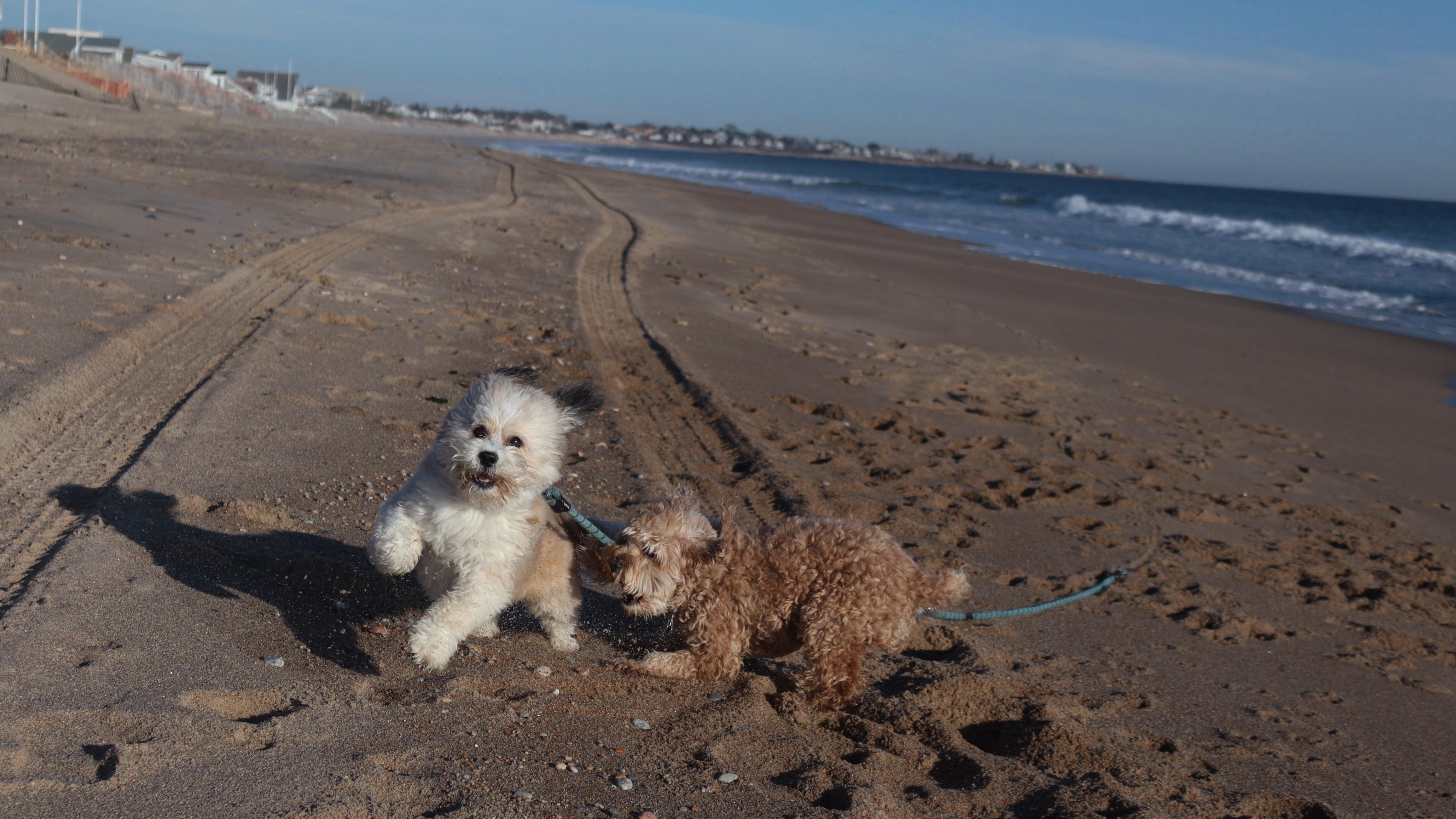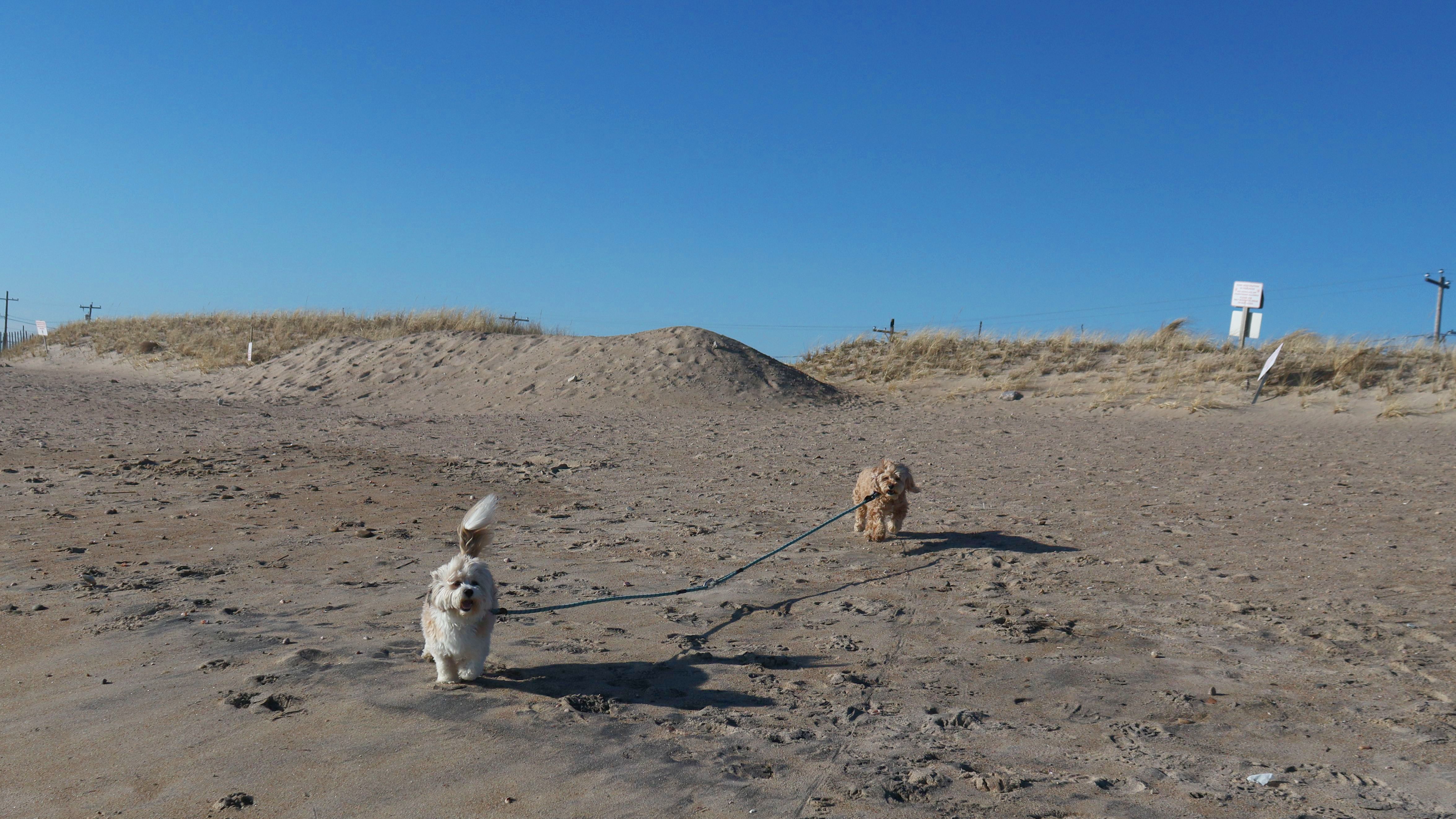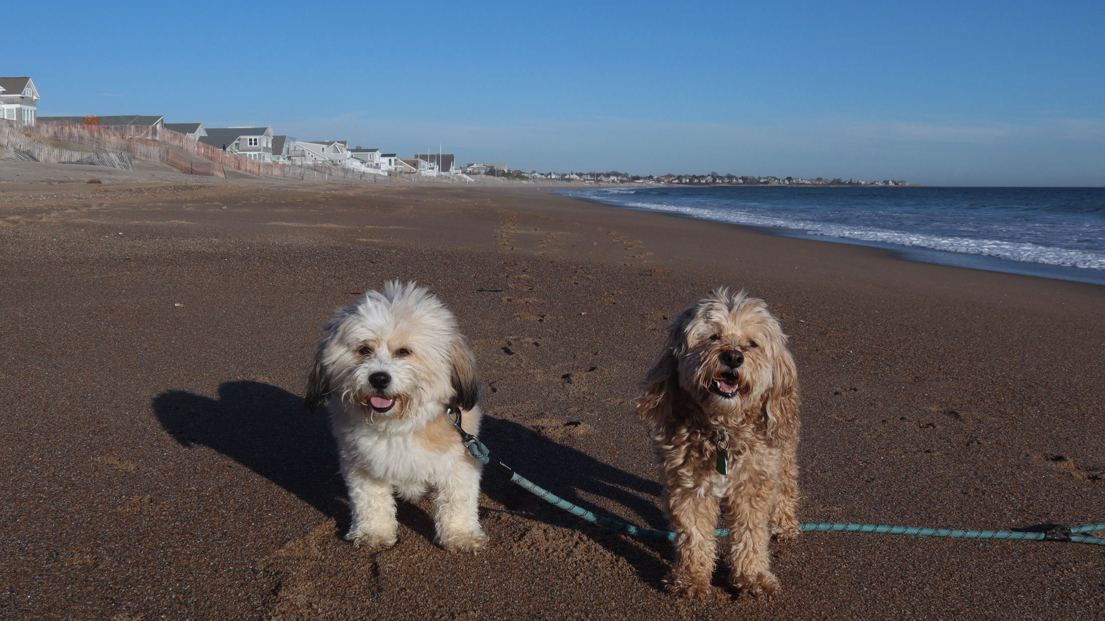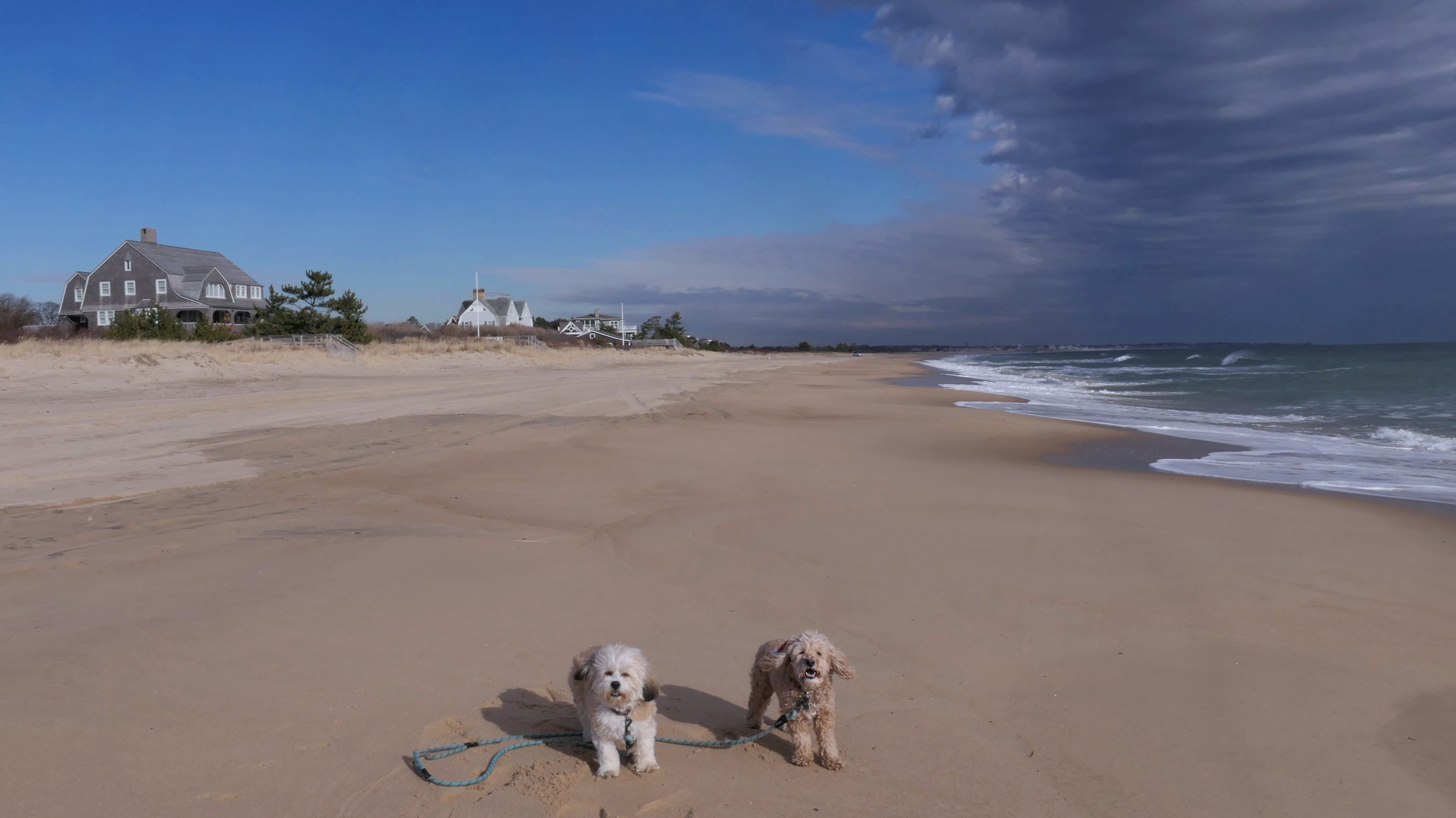 According to this website, this was only the second time we've visited this beach. That's not entirely true, though, since we've been to the beaches on either end—Misquamicut and Dunes Park—multiple times, with some overlap along the way. Still, about half of our walk covered ground we hadn’t visited since Christmas Morning 2023. This beach is also known as "Wuskenau Beach", and part of it is also known as "Atlantic Beach". I've combined them here since it's hard to know where one ends and the other begins. It was a spring-like day in early January, with inland temperatures nearing 50 degrees and slightly cooler air along the shore. It turned out to be a perfect afternoon for a sunny beach walk, and Mandy and Lexi thoroughly enjoyed letting loose for a while. I'm still getting the hang of my new camera, but most of the photos came out well. It was wonderful to get outside on such a nice day before winter settles back in.