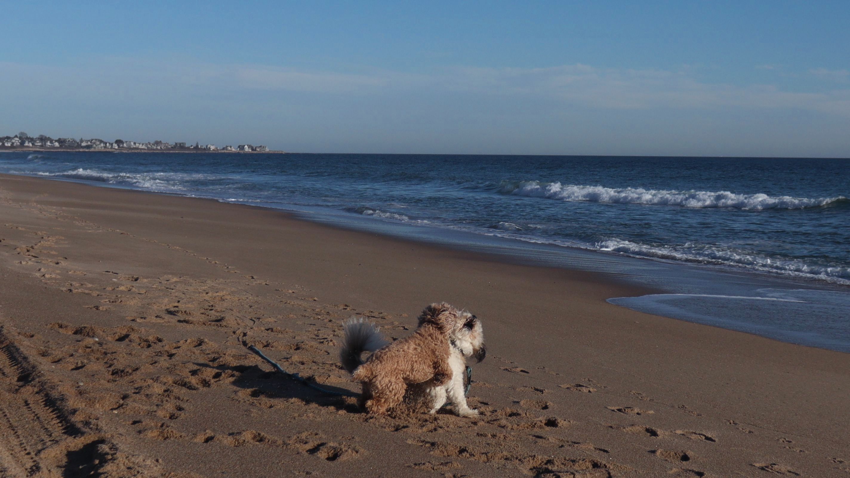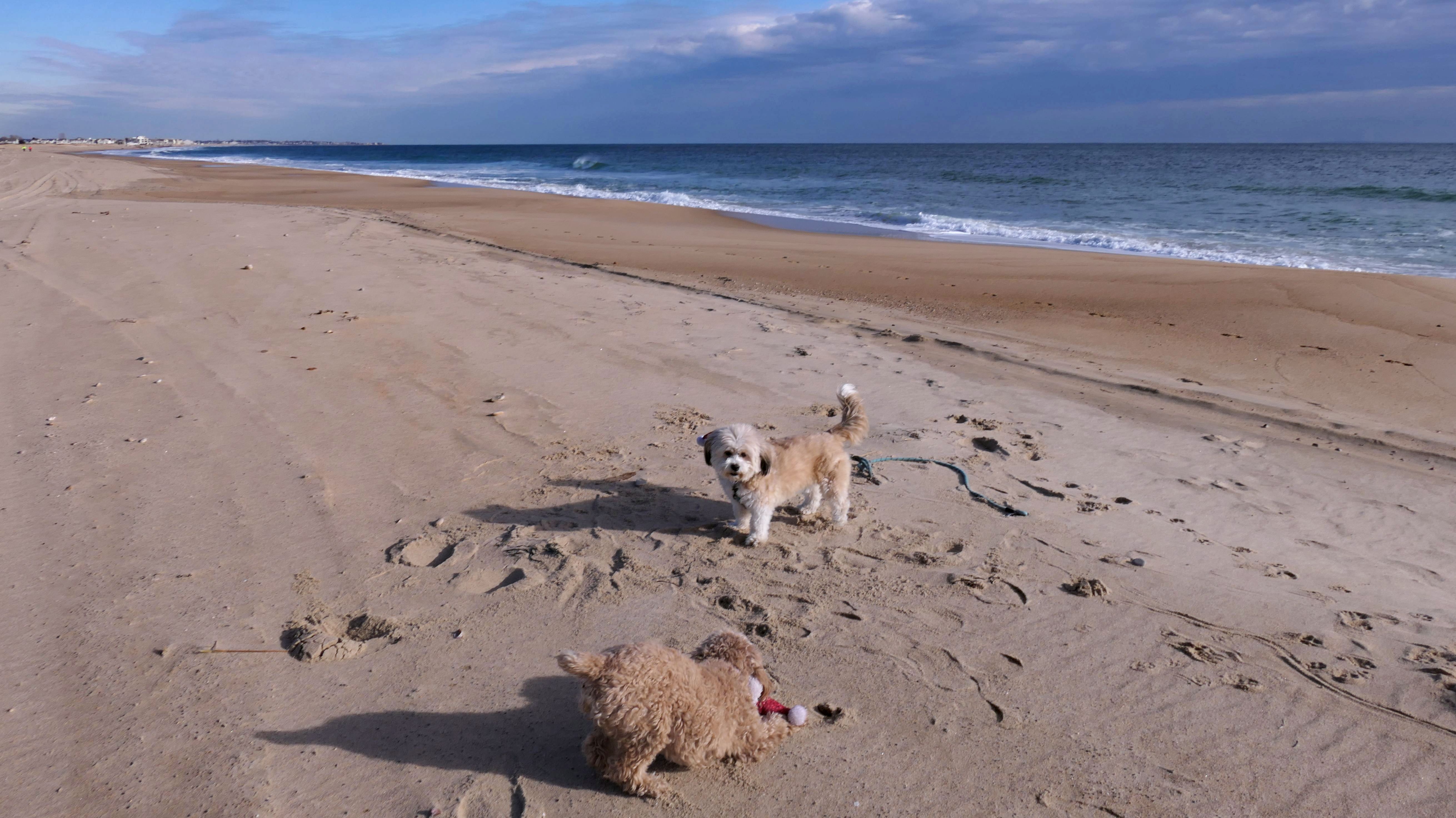This marked our third consecutive Christmas Day visit to a Rhode Island beach. It's become a tradition for us. We usually arrive earlier in the morning, but this year we didn't make it there until about 12:45 PM. The forecast had promised clearing skies around 1 PM, yet the clouds were still hanging on when we arrived. About twenty minutes later, though, they finally broke apart and the day turned beautiful. With family visiting later, we only had about an hour for our outing—but it was just enough time for a refreshing two-mile walk and for Lexi to get all her zoomies out.