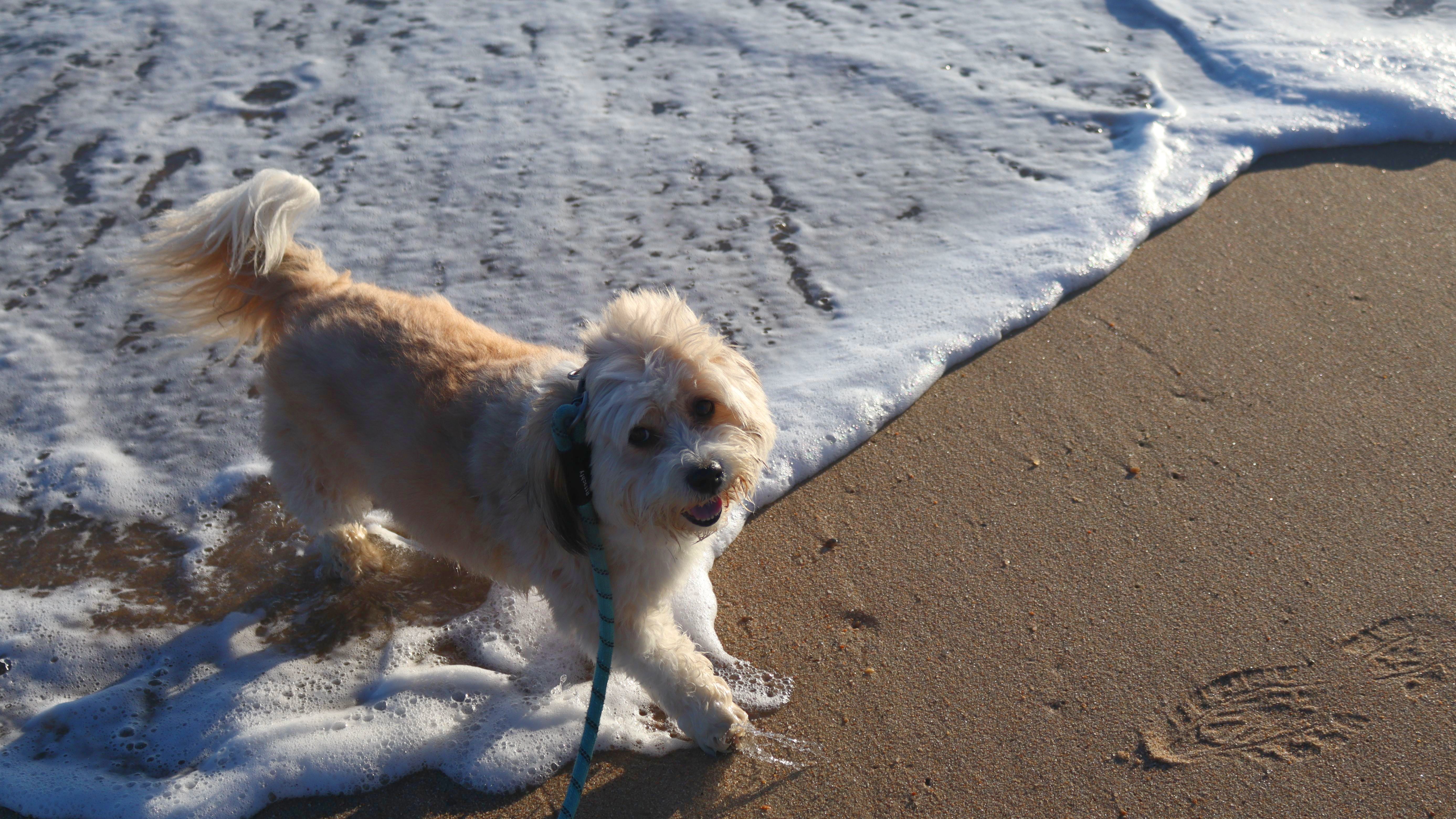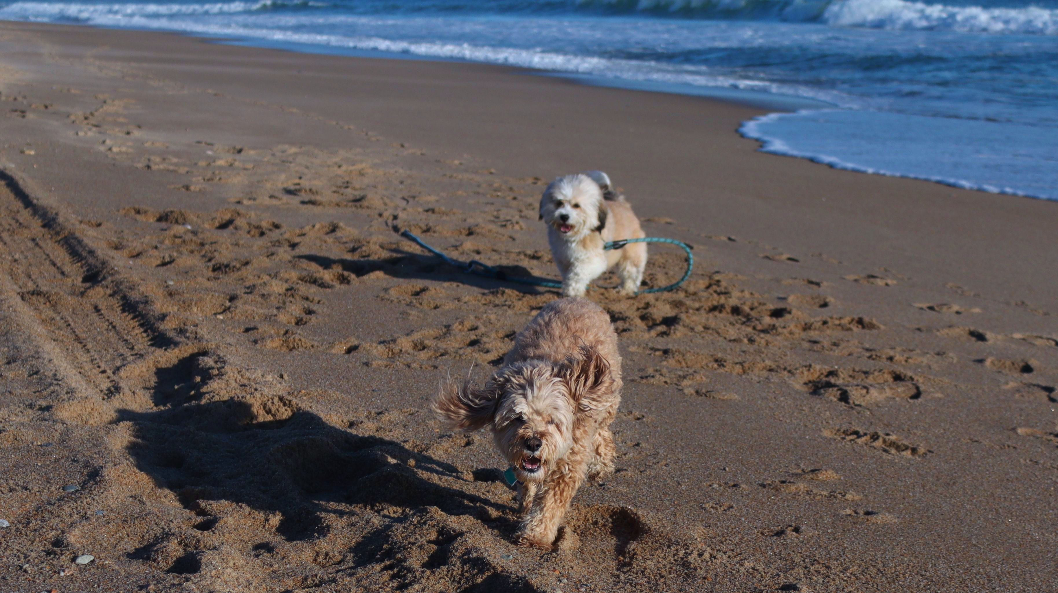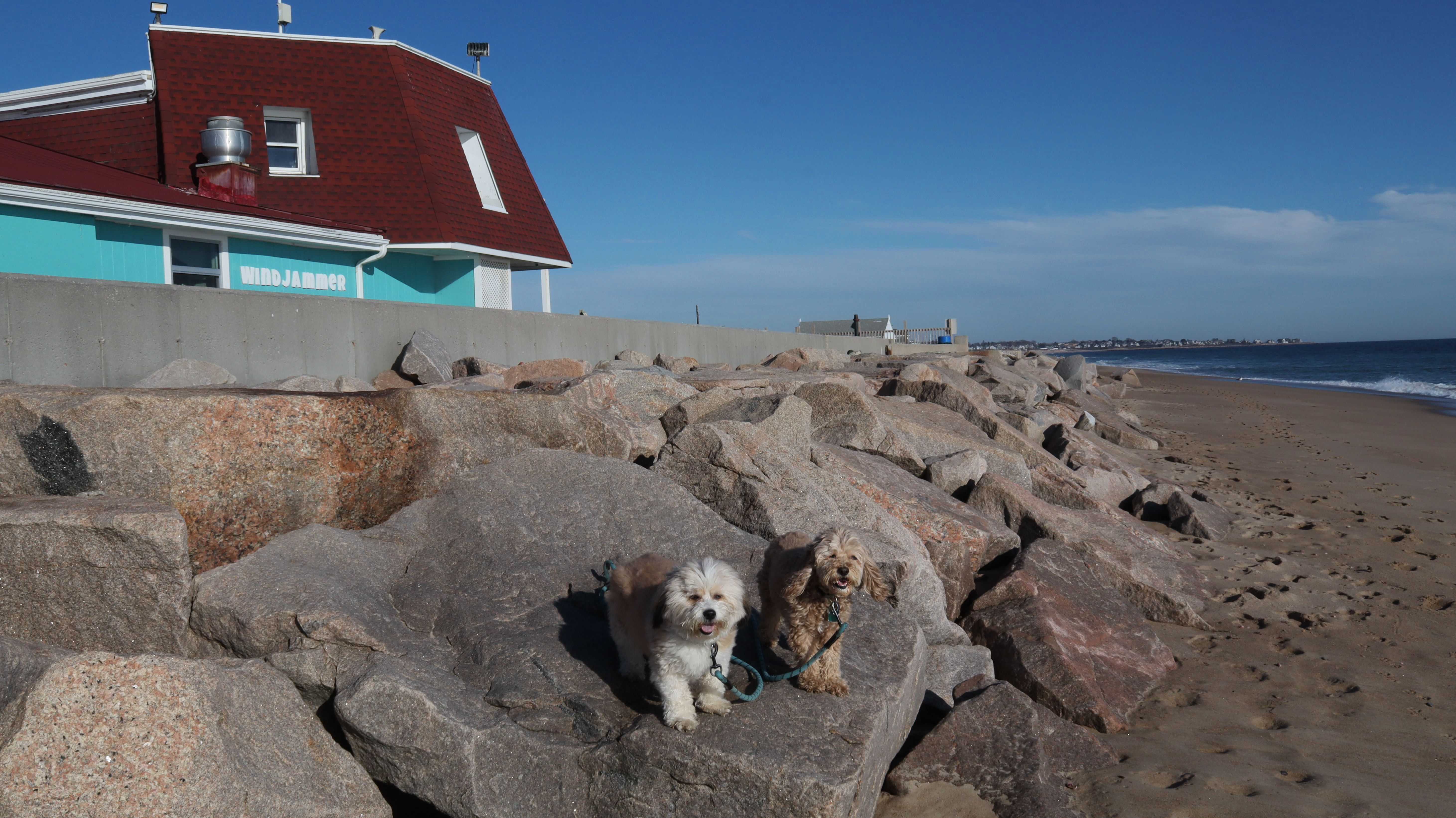 We had record temperatures inland, approaching the mid-80's, so we of course went to a beach! I didn't feel like driving to New Jersey for the 3rd straight day, so we made a return visit to Misquamicut. It wasn't as warm here, probably low to mid 70's, but very breezy. I suspect the wind kept people away. We explored some of the surrounding area before walking the beach. The waves were really ripping here. Mandy kept trying to walk in the water, but Lexi would pull her away. It was a fun adventure, despite the windy conditions.