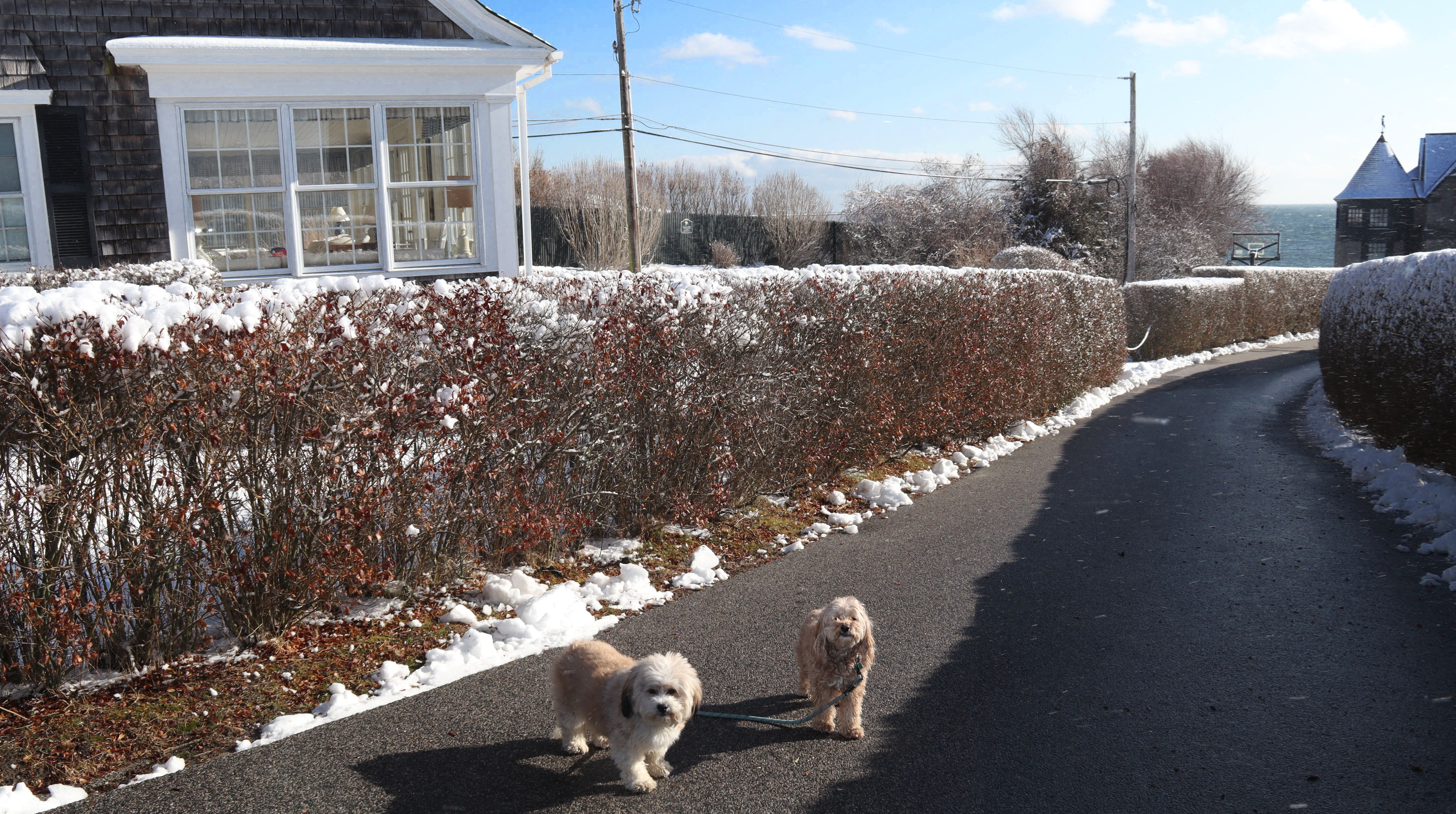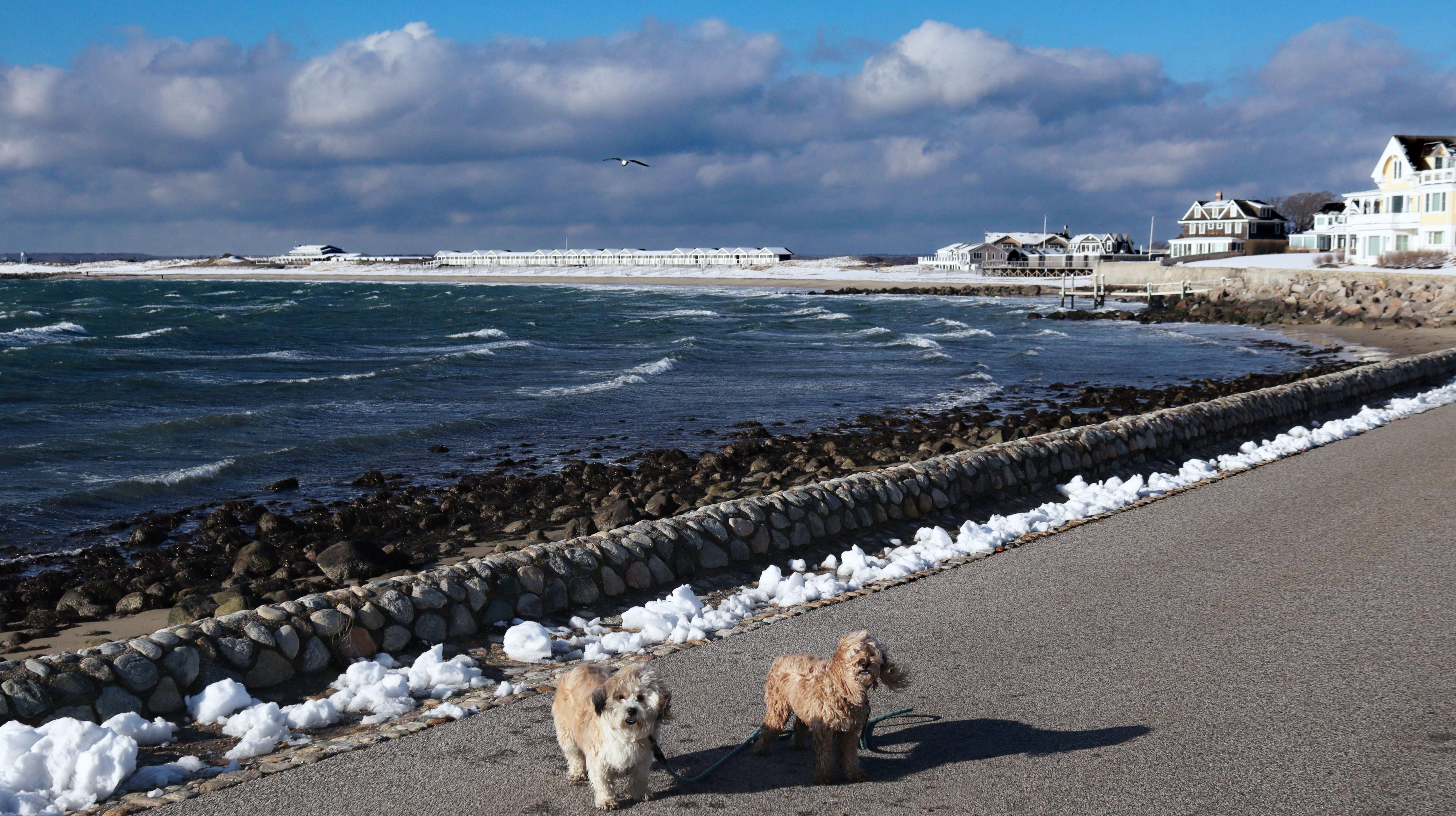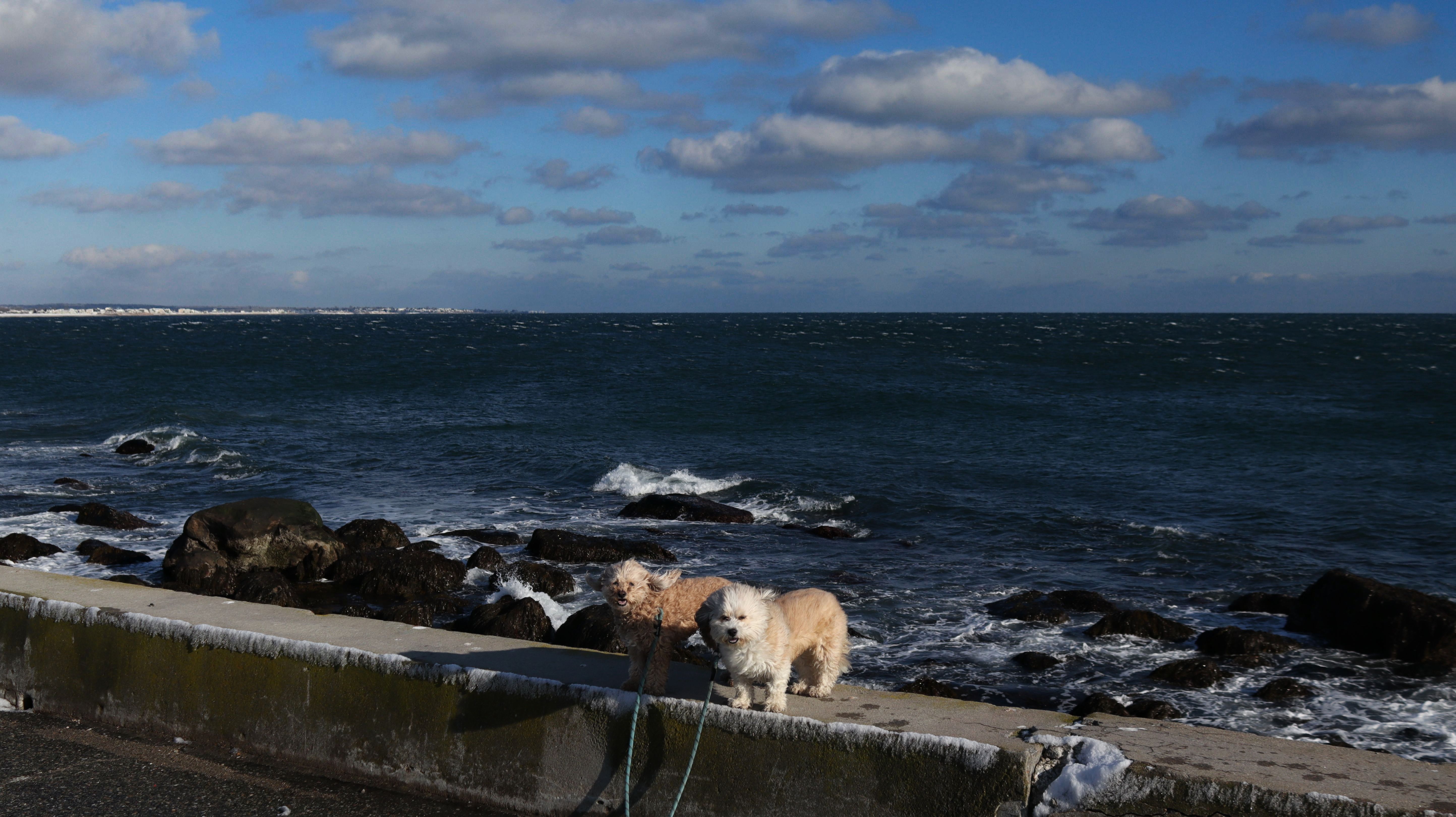 It had snowed for two days straight, but we were able to salvage the last day of the long weekend. There wasn't as much snow right on the shore as there was inland, so I thought this would be a good place to take the dogs for a walk. I pictured taking a photograph of them in front of a scenic, snowy lighthouse... it all seemed great in my mind. In reality, there wasn't much snow and the conditions were brutal! While there was very little wind inland, it was about as windy as I've ever experienced here! That made taking any photos a real challenge. We did get a few okay pictures, and while I got plenty of exercise shoveling snow over the weekend, it was good to get the dogs out. We took a short walk around Watch Hill after walking down the road to the lighthouse. That being said, it might have been better remaining inland.