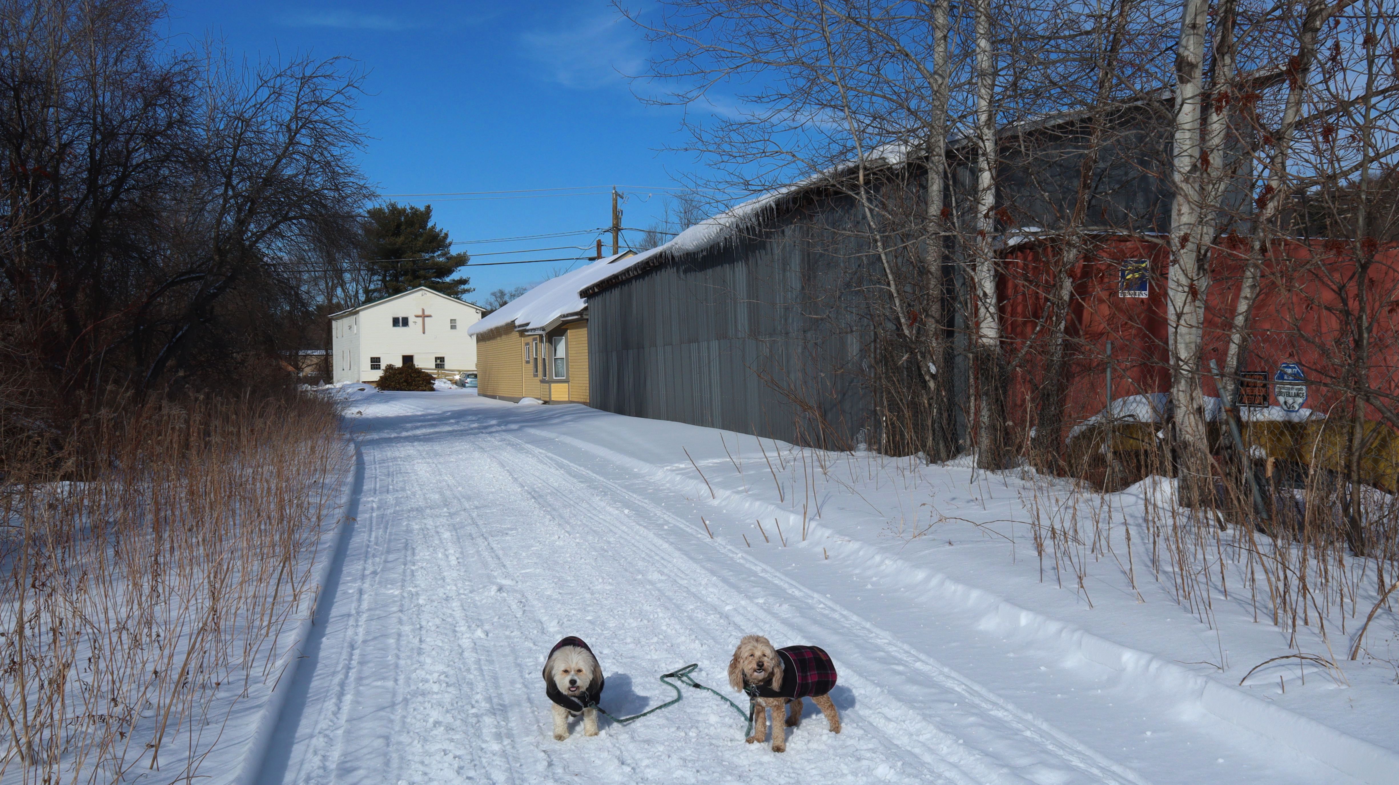 I was planning the majority of our walk to be around this area of town, but the sidewalks were pretty messy, so we stayed mostly on the Rail Trail instead. We still went for a short walk along Main Street.