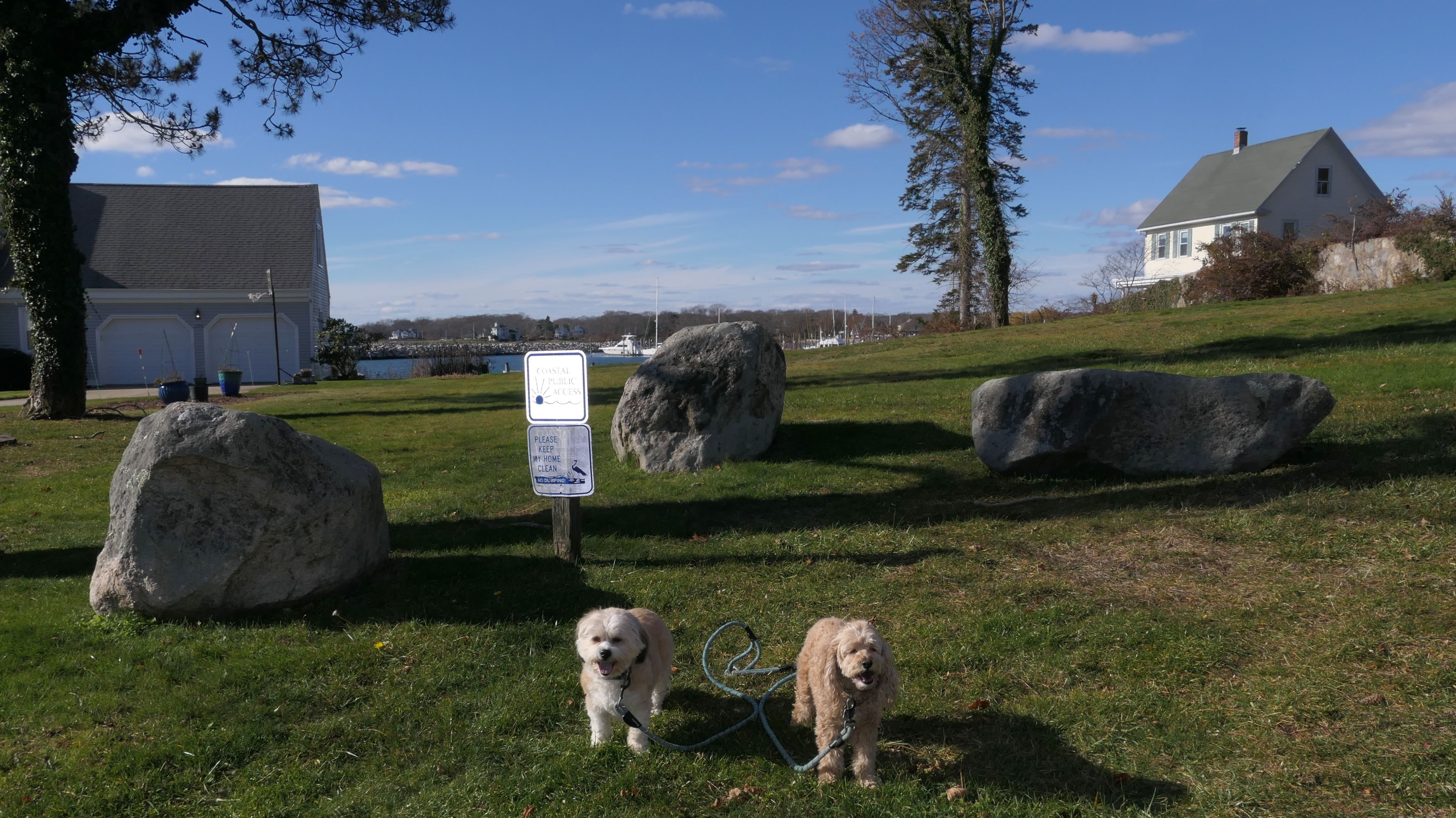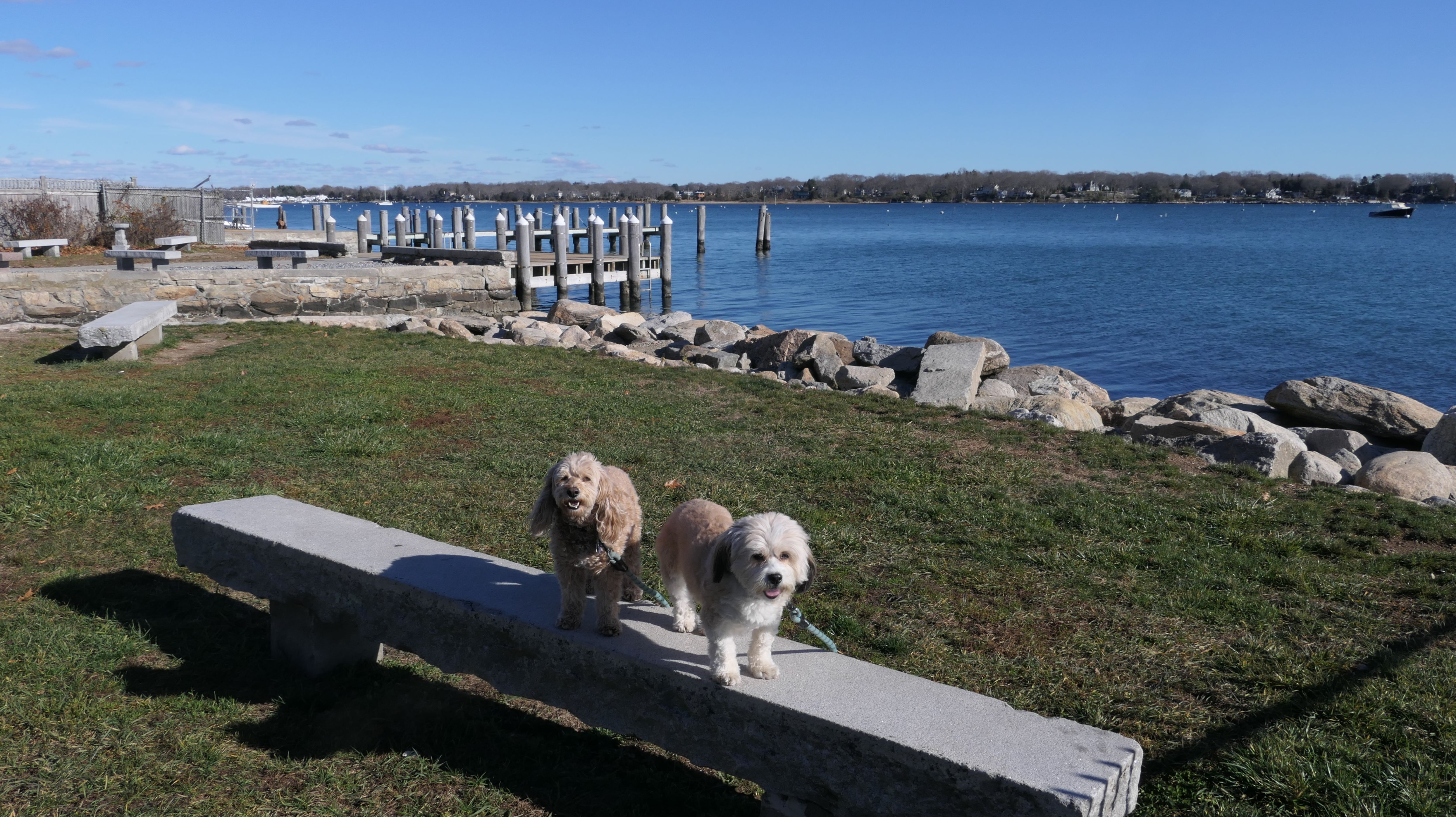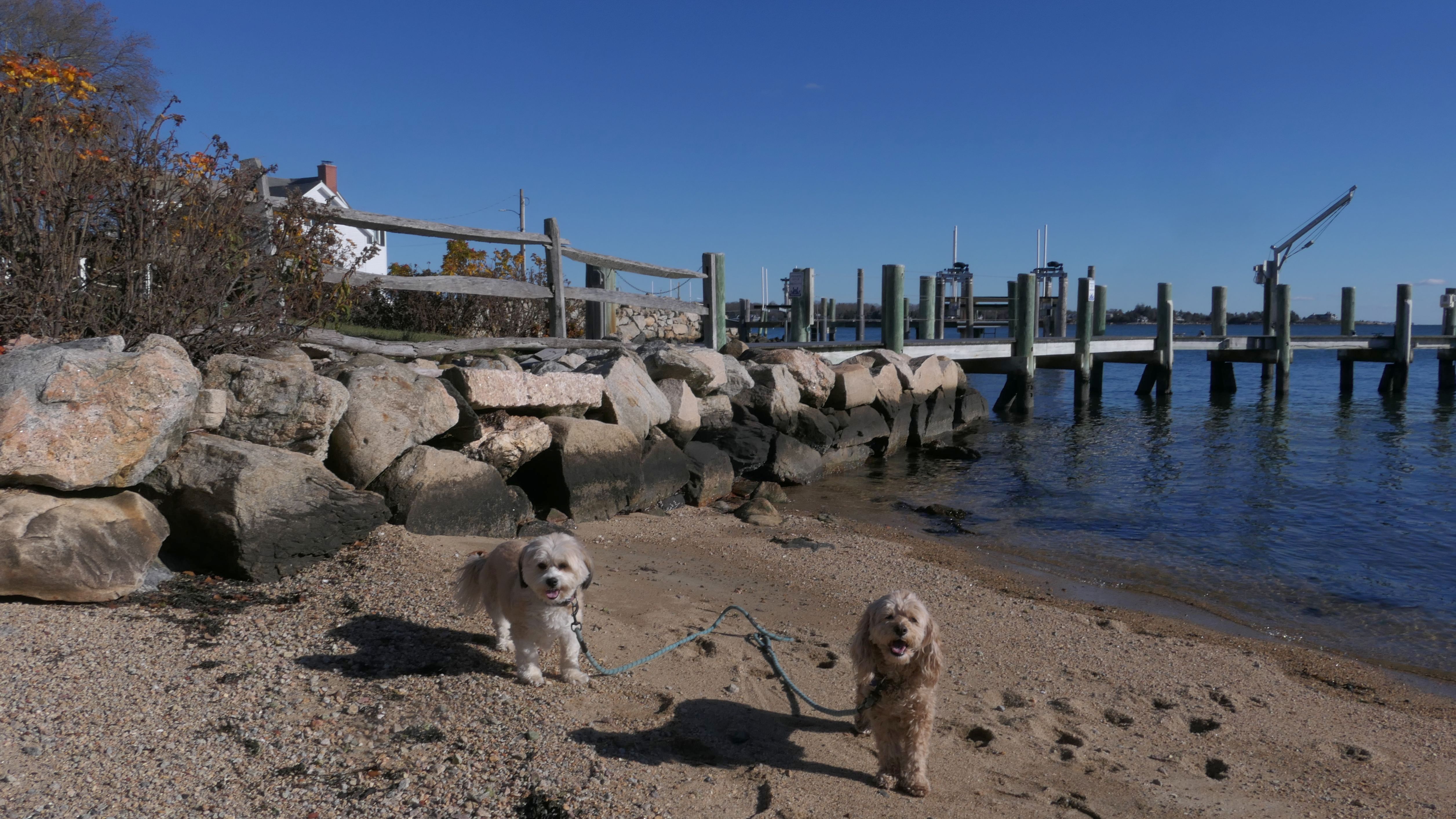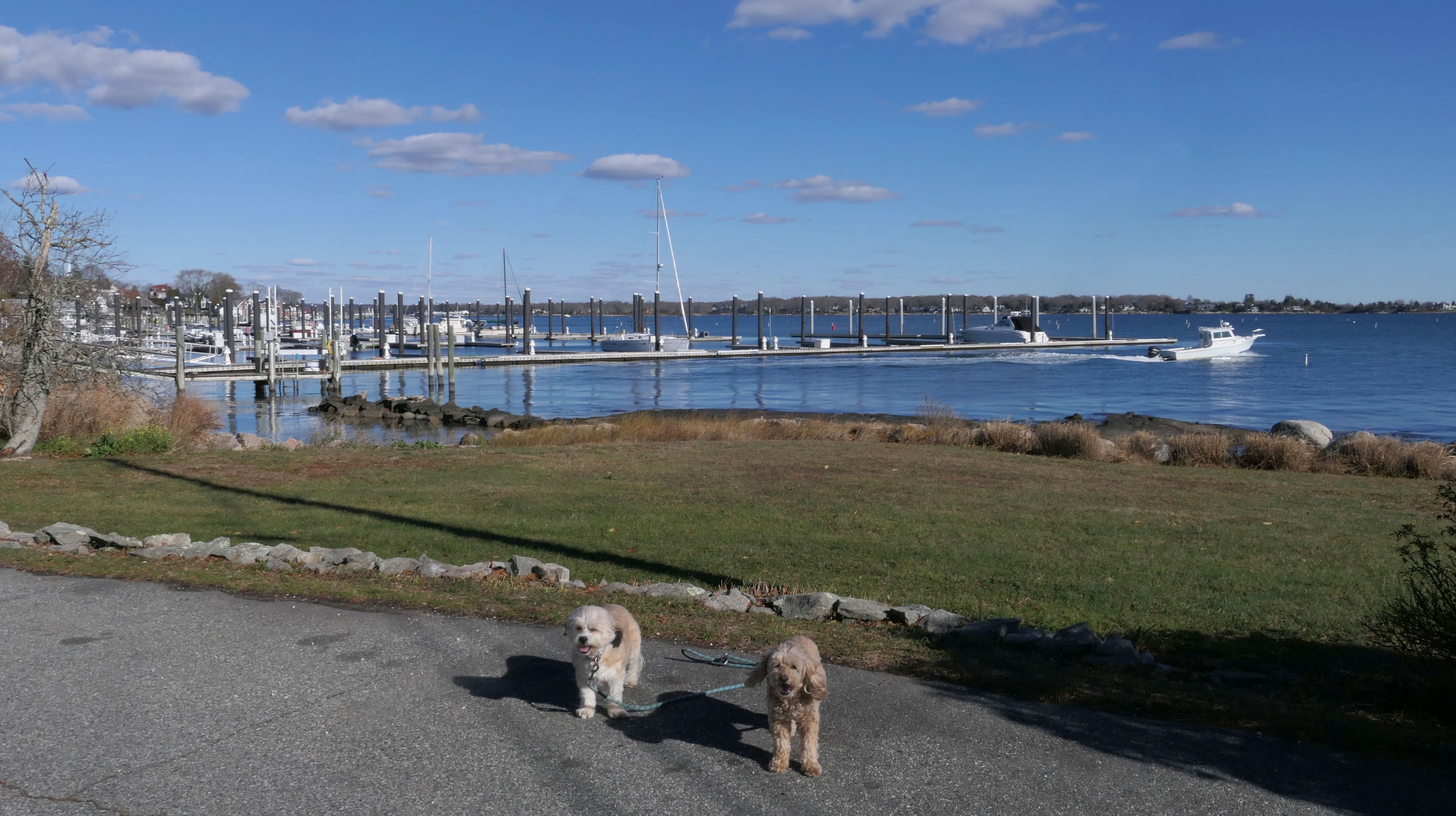Our Thanksgiving morning adventure was a walk through the Noank section of Groton. We started at the Town Dock, and walked about four miles through a mostly residential neighborhood. There were a number of small parks and costal access points along the way. The access point at the corner of Riverview Avenue and Palmer Court features a wooden staircase that goes down to a small sandy beach area. I didn't see any "No Dogs" signs at any of the access points, so some of these spots could be good places for dogs to cool off in the summer. Unfortunately, there is very limited parking in the area. Toward the end of our walk we also visited Spicer Park. This was a very pleasant walk on a nice and sunny Thanksgiving morning.