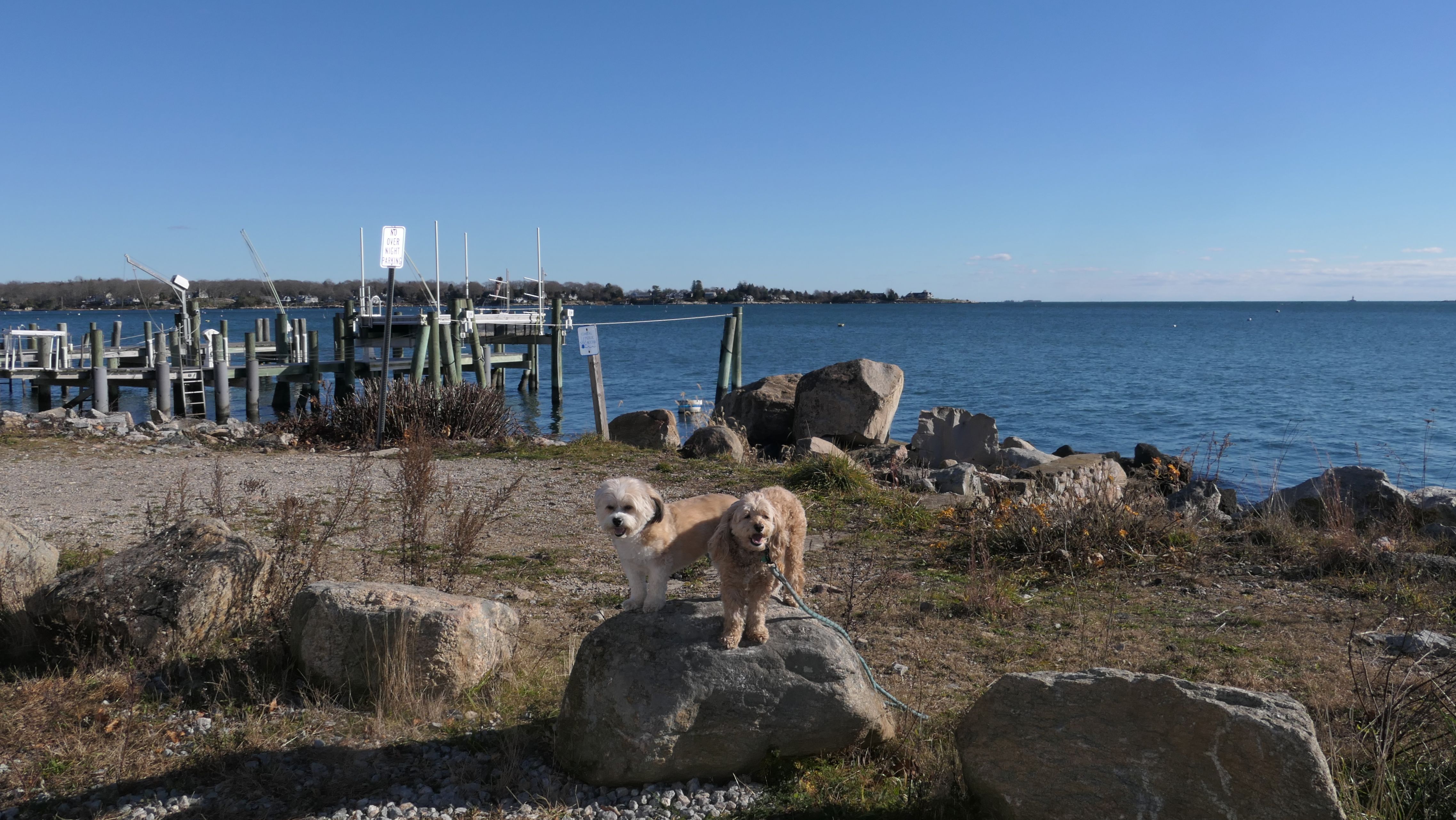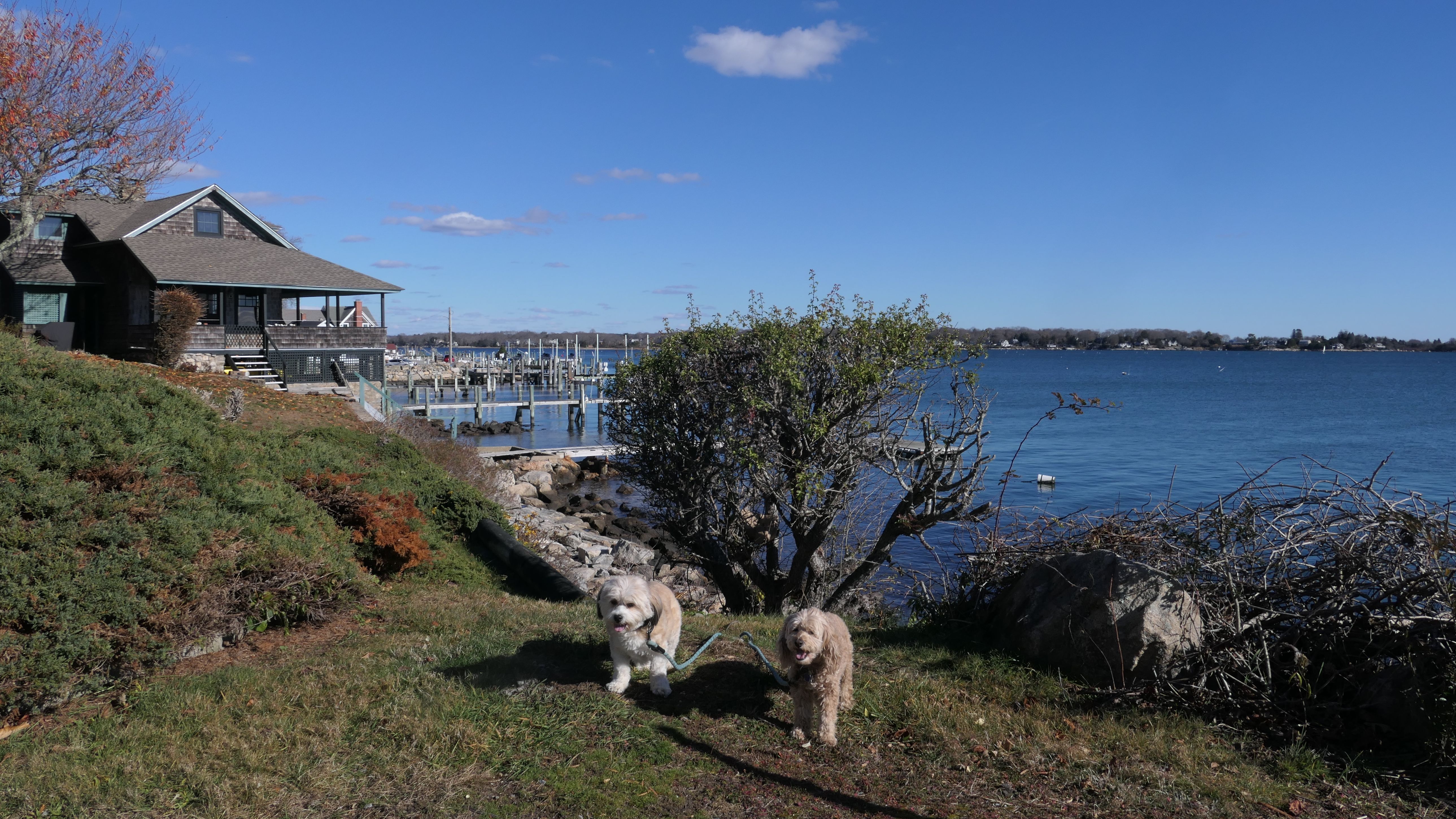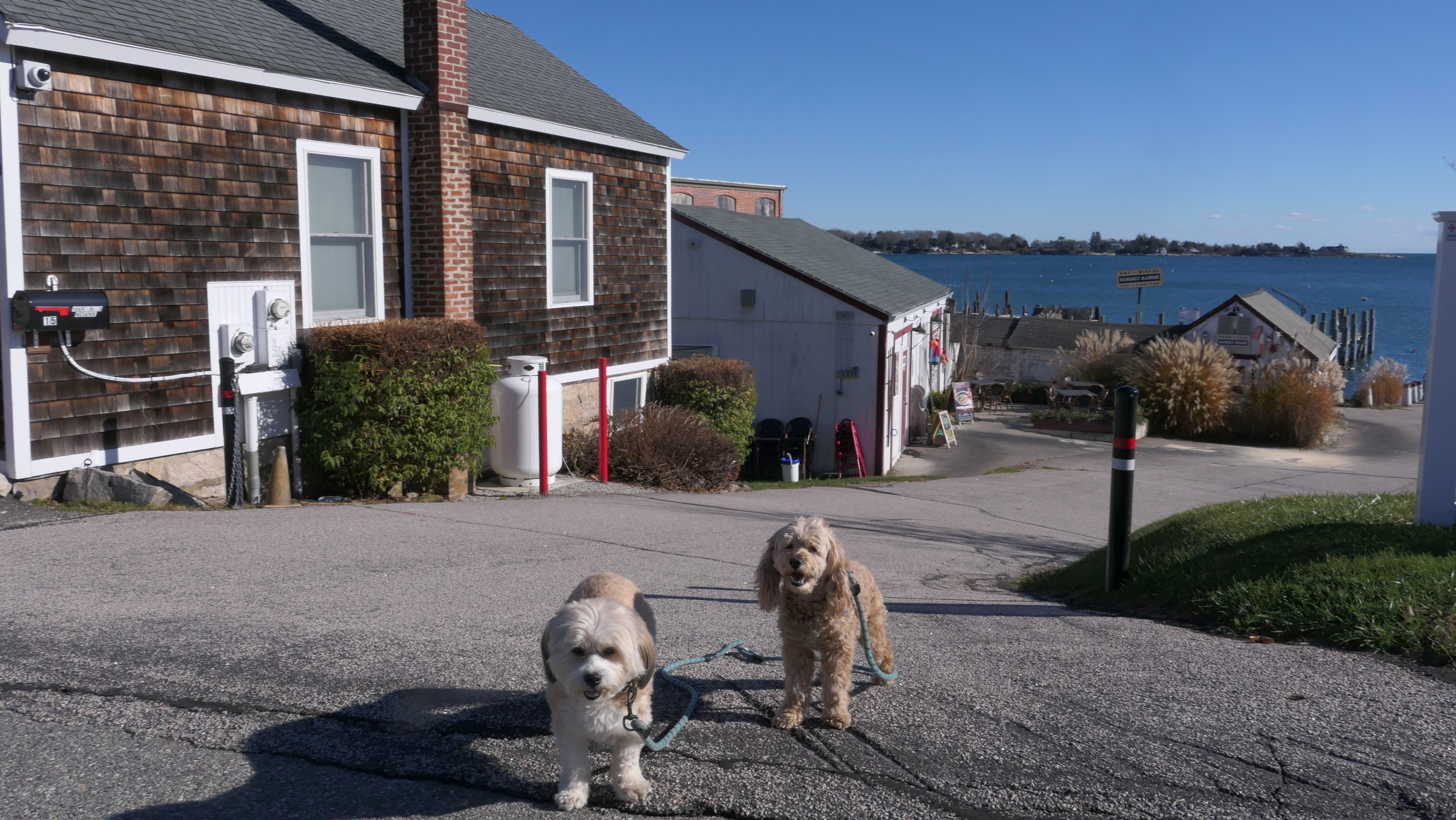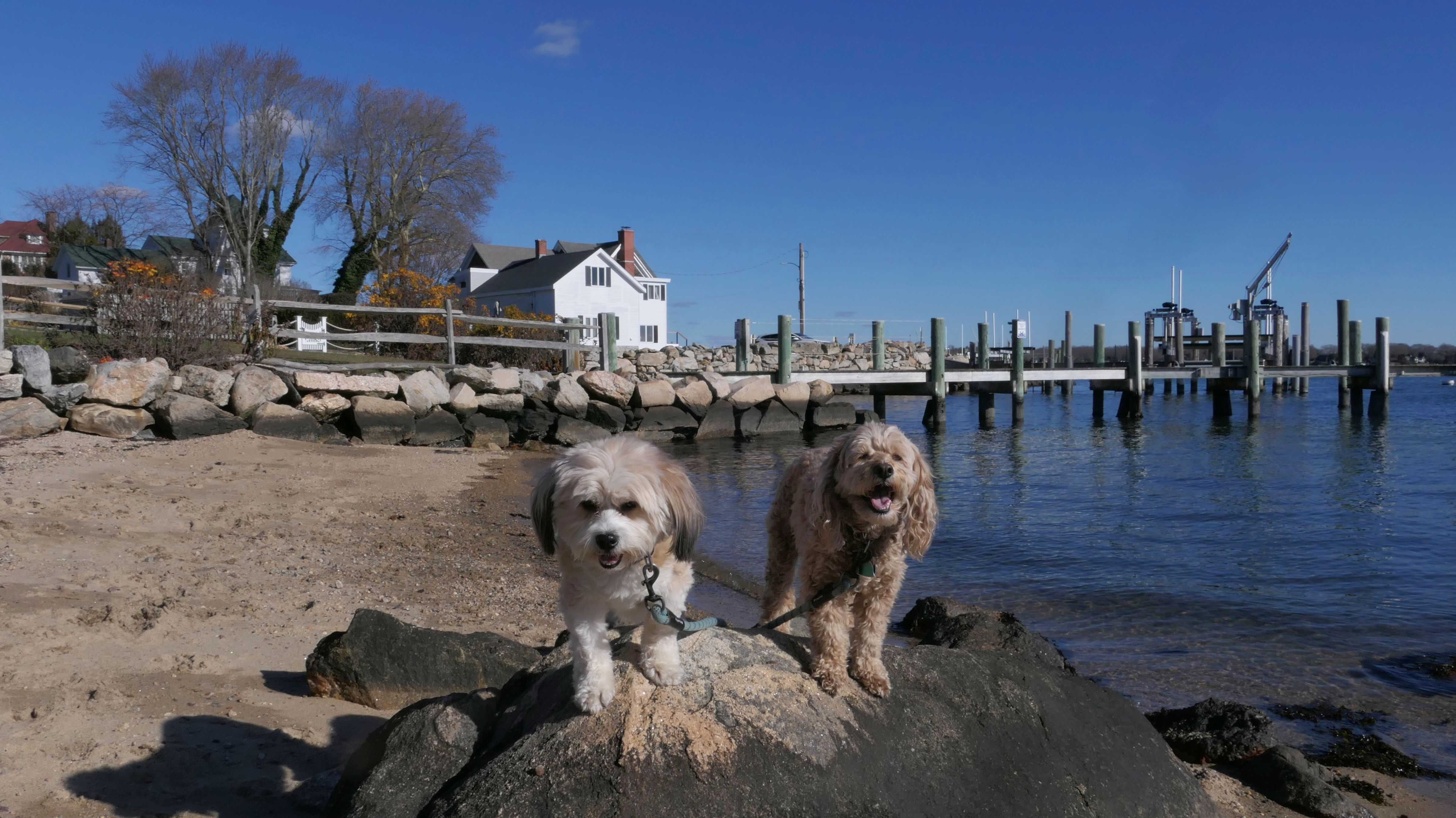 Our Thanksgiving morning adventure was a walk through the Noank section of Groton. We started at the Town Dock, and walked about four miles through a mostly residential neighborhood. There were a number of small parks and costal access points along the way. The access point at the corner of Riverview Avenue and Palmer Court features a wooden staircase that goes down to a small sandy beach area. I didn't see any "No Dogs" signs at any of the access points, so some of these spots could be good places for dogs to cool off in the summer. Unfortunately, there is very limited parking in the area. Toward the end of our walk we also visited Spicer Park. This was a very pleasant walk on a nice and sunny Thanksgiving morning.