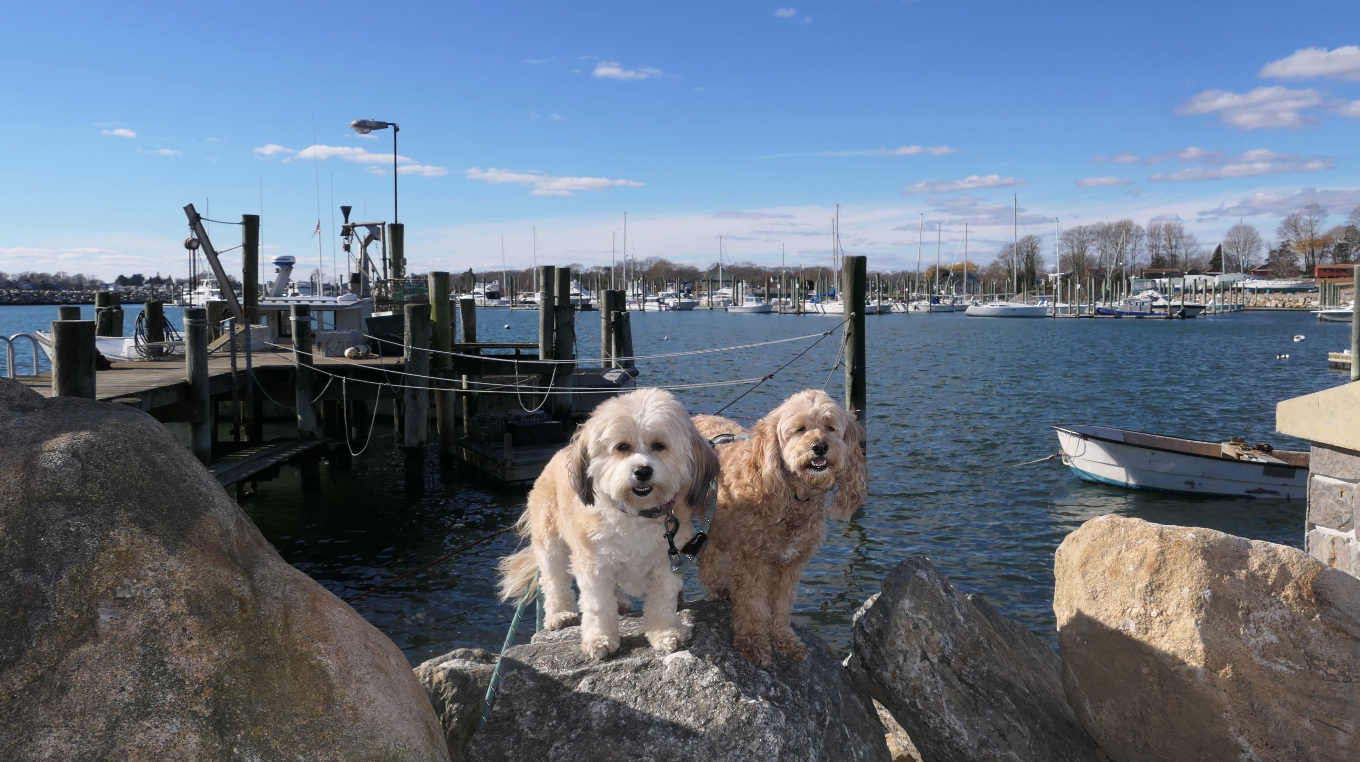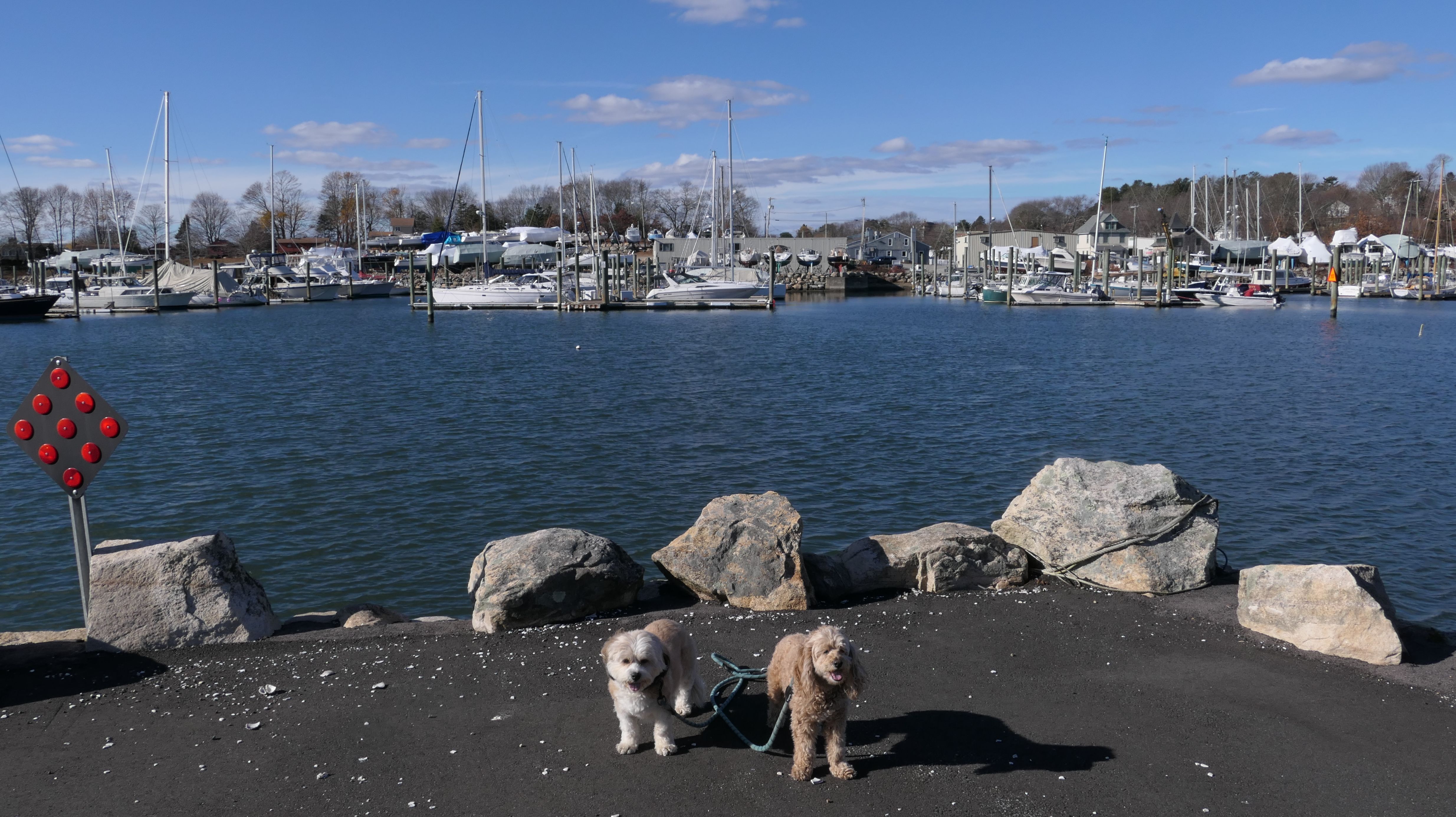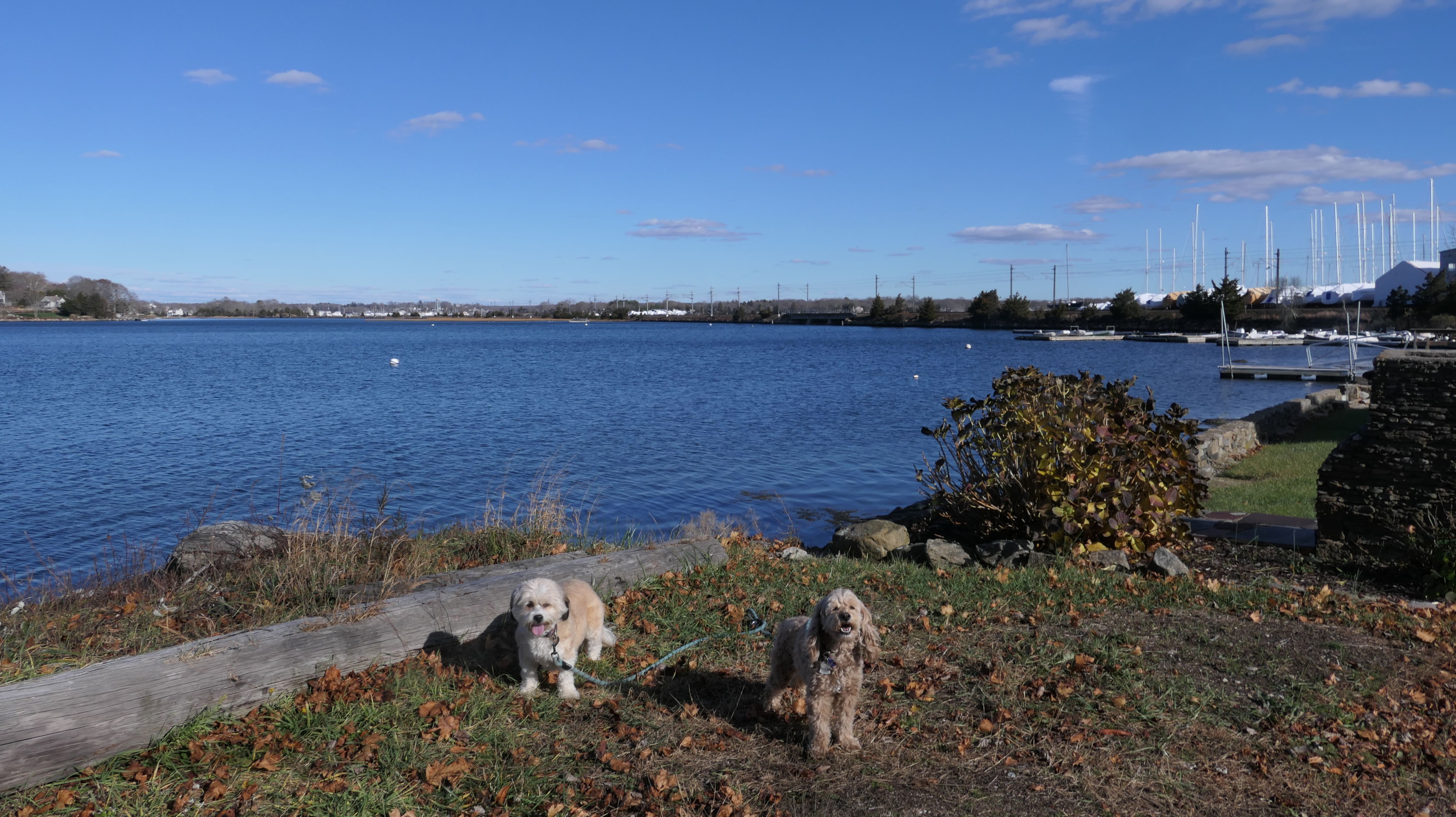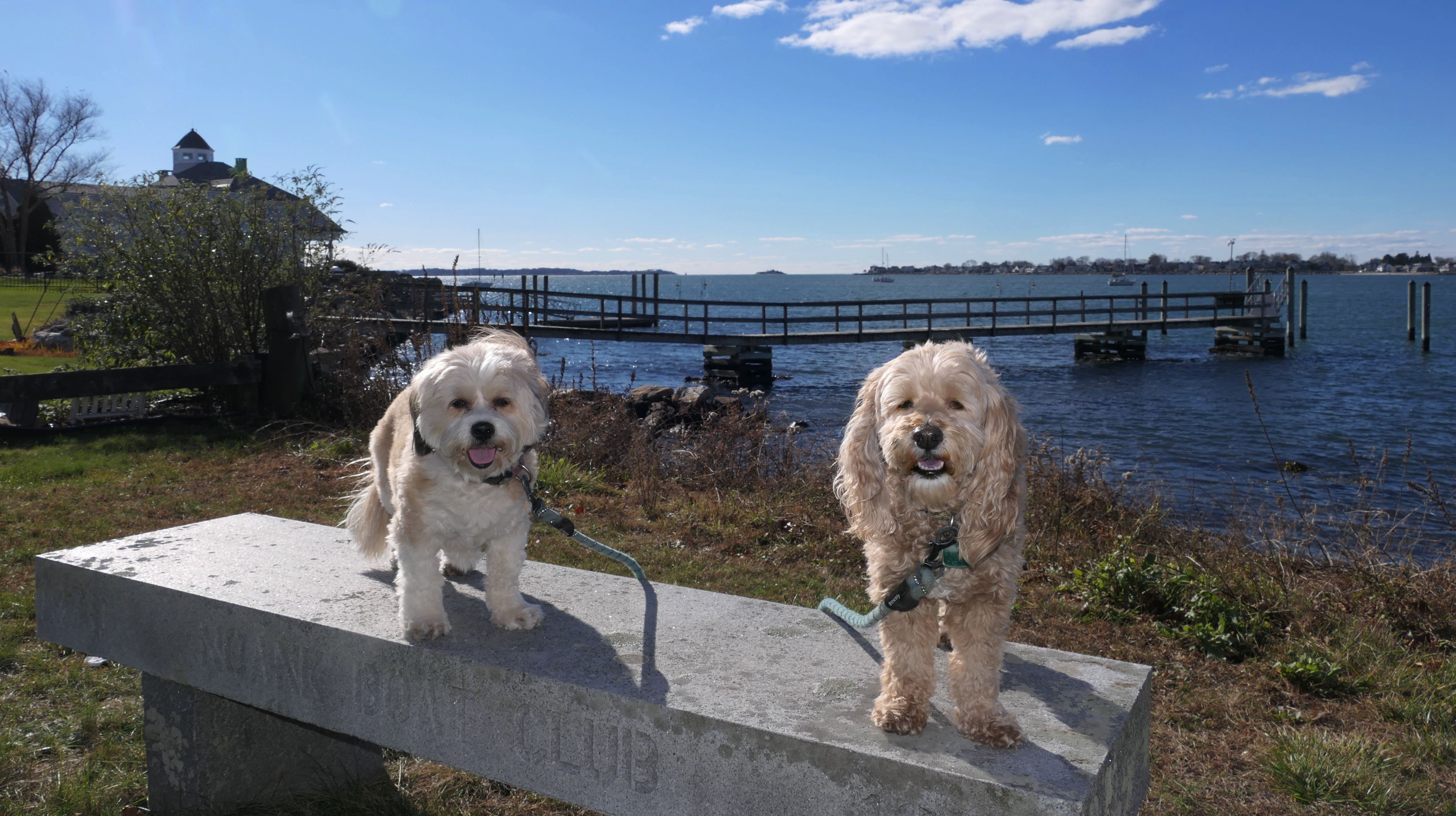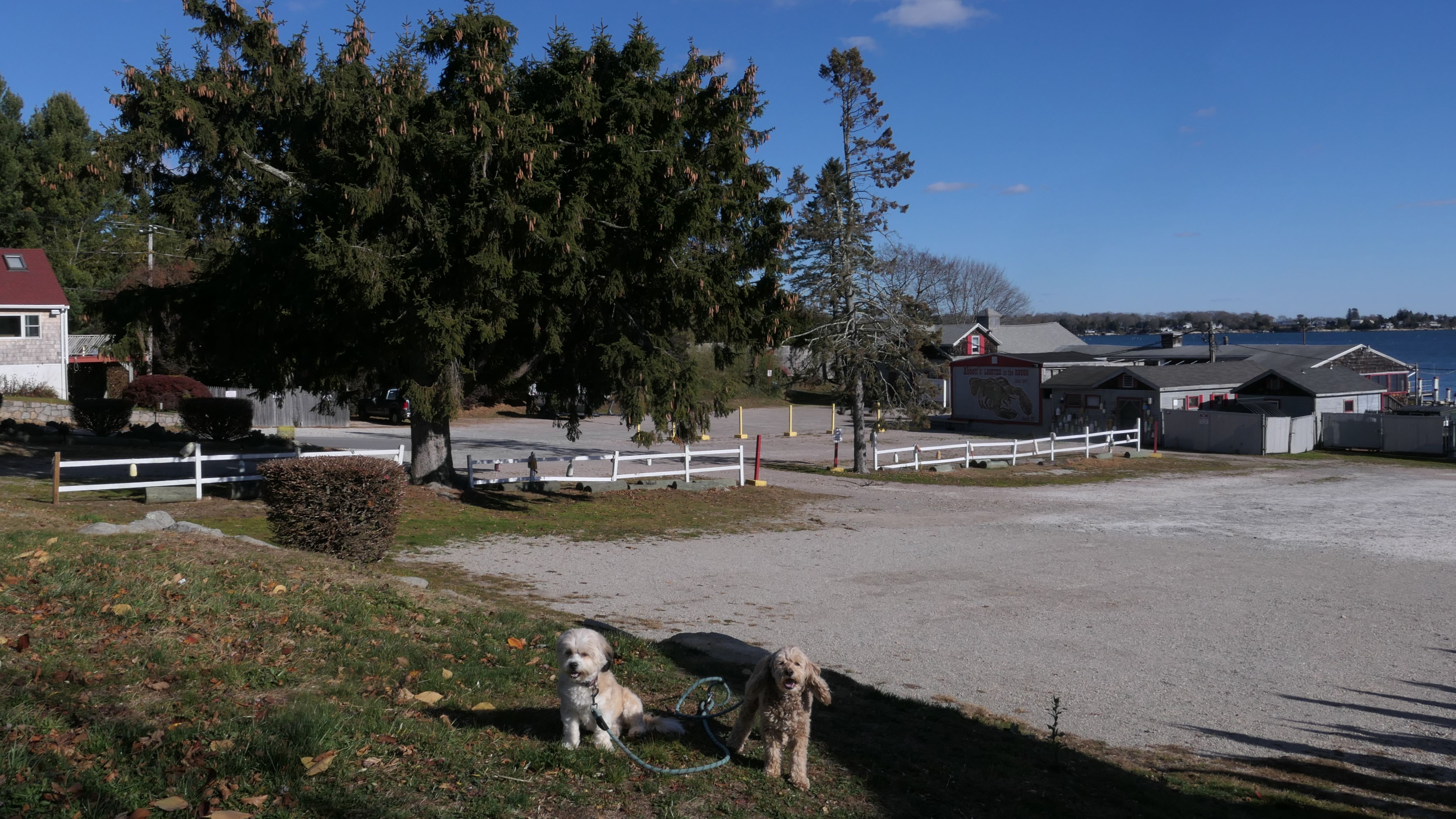 Our Thanksgiving morning adventure was a walk through the Noank section of Groton. We started at the Town Dock, and walked about four miles through a mostly residential neighborhood. There were a number of small parks and costal access points along the way. The access point at the corner of Riverview Avenue and Palmer Court features a wooden staircase that goes down to a small sandy beach area. I didn't see any "No Dogs" signs at any of the access points, so some of these spots could be good places for dogs to cool off in the summer. Unfortunately, there is very limited parking in the area. Toward the end of our walk we also visited Spicer Park. This was a very pleasant walk on a nice and sunny Thanksgiving morning.