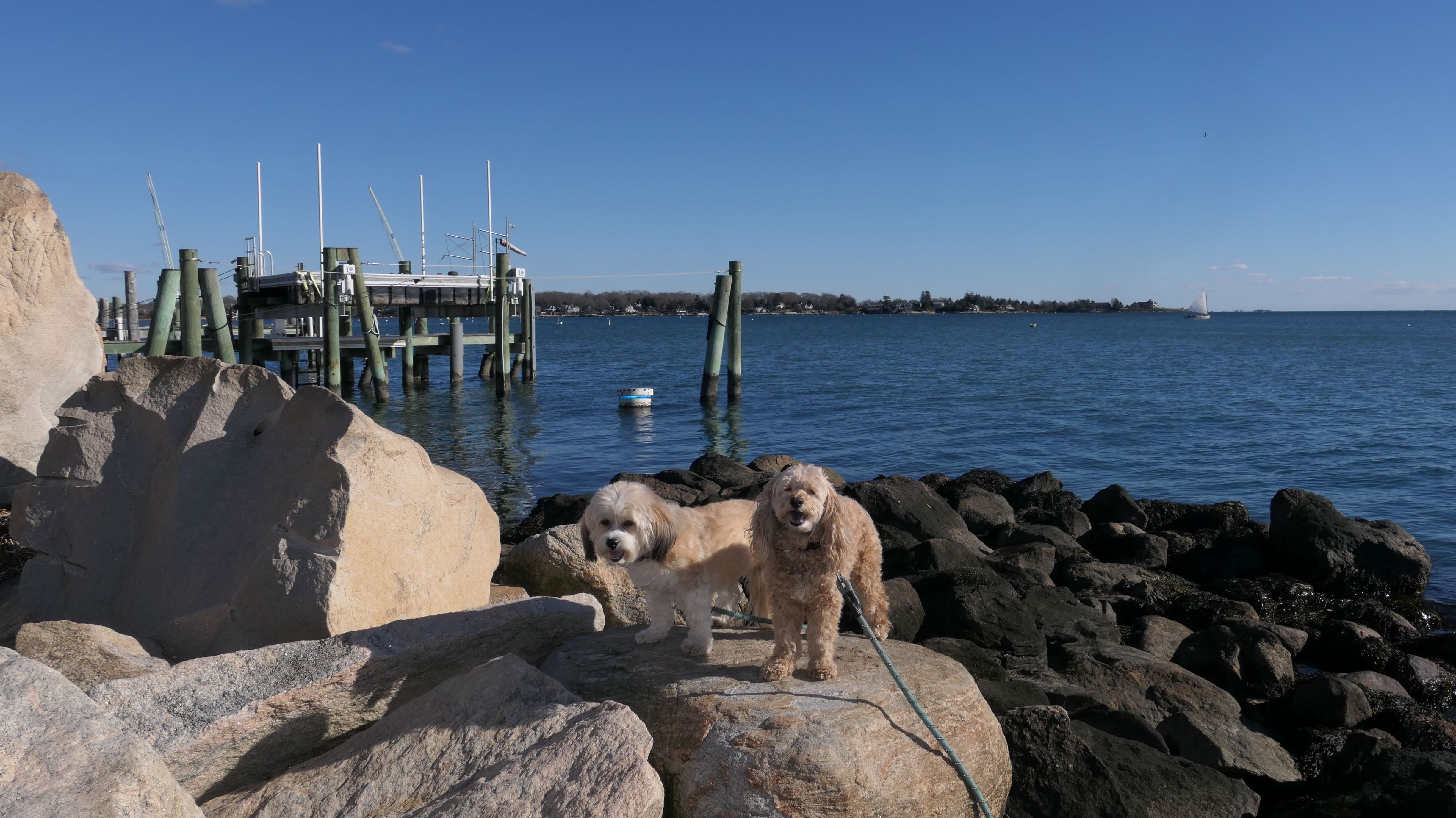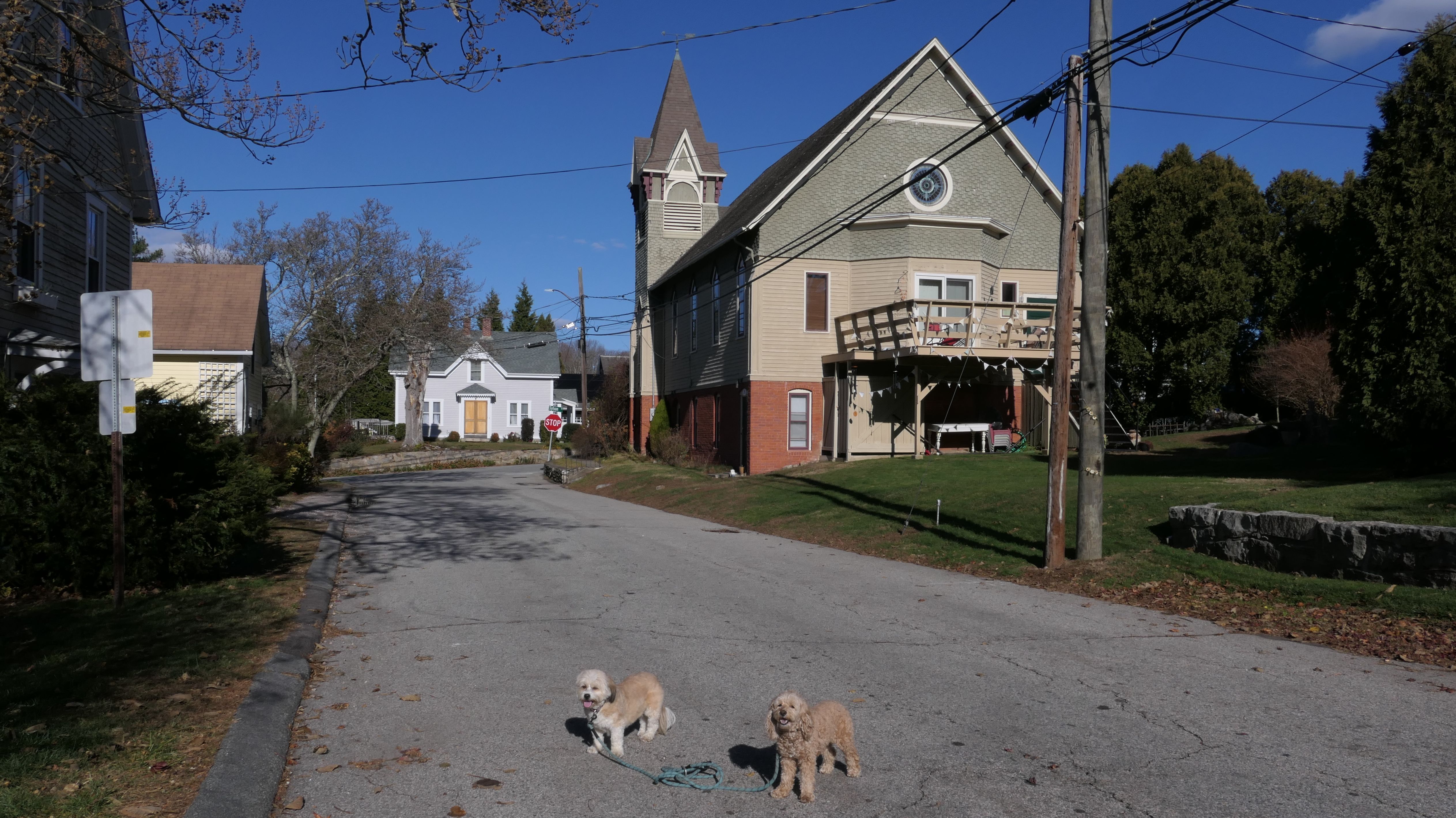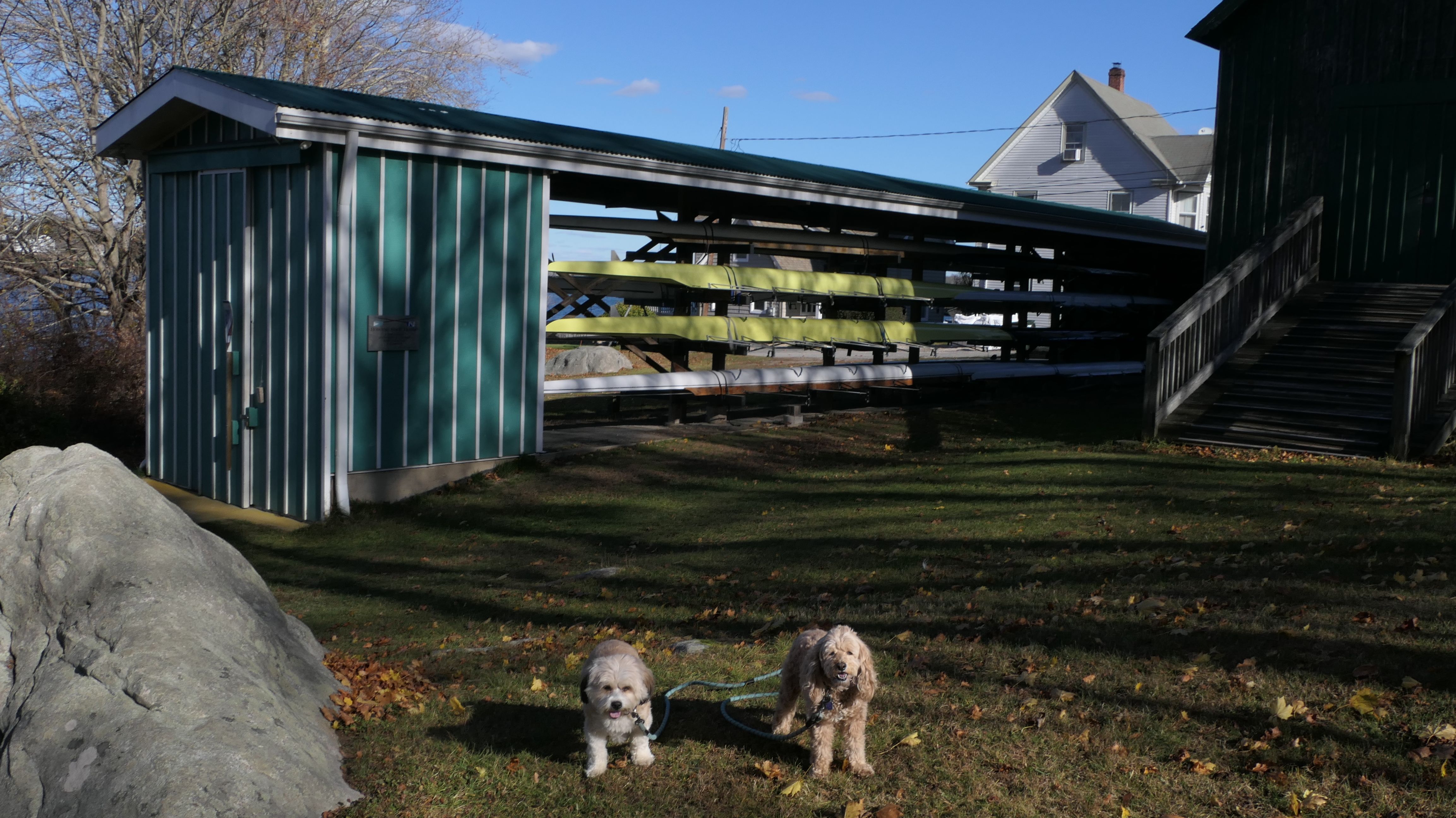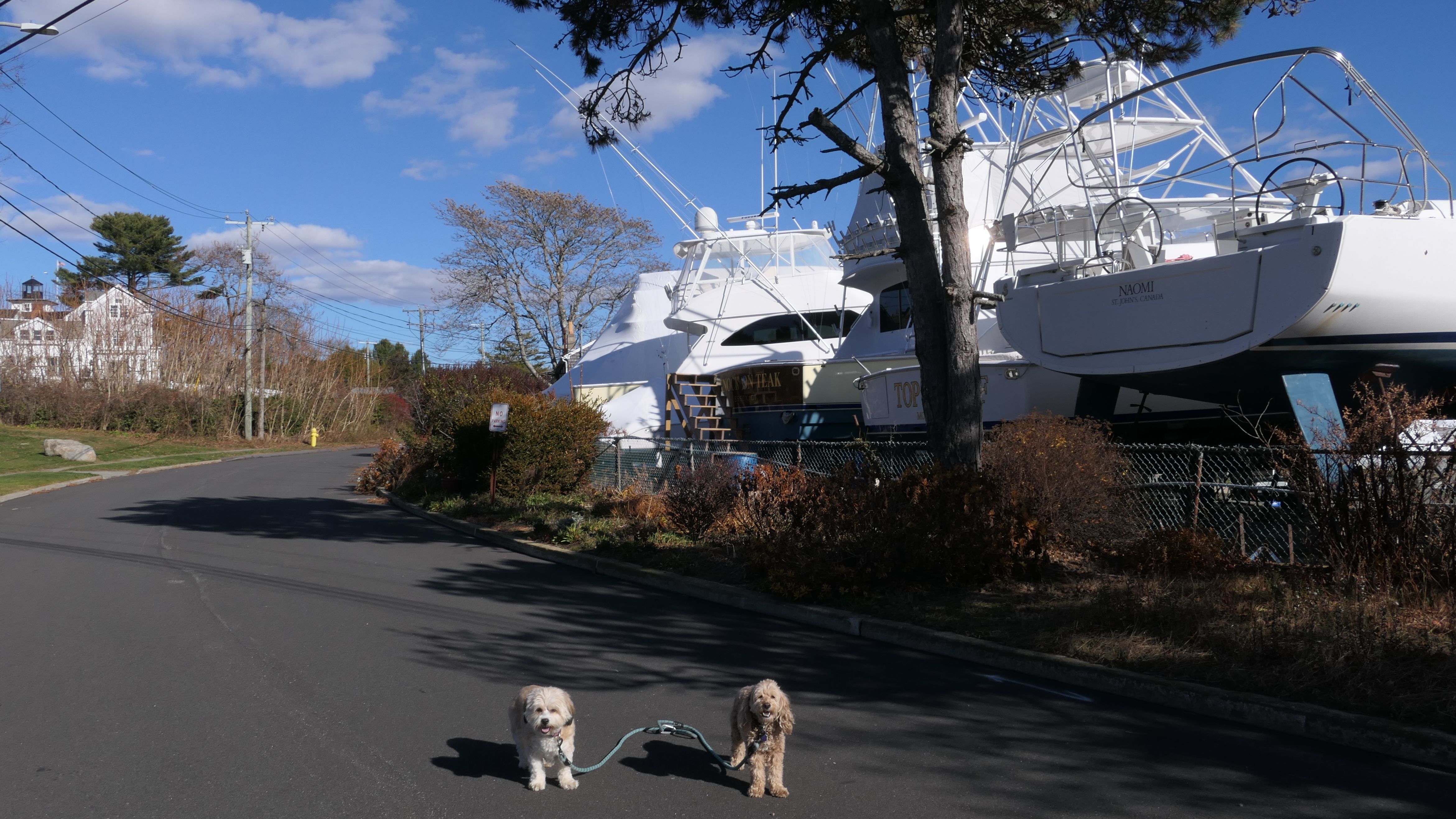 Our Thanksgiving morning adventure was a walk through the Noank section of Groton. We started at the Town Dock, and walked about four miles through a mostly residential neighborhood. There were a number of small parks and costal access points along the way. The access point at the corner of Riverview Avenue and Palmer Court features a wooden staircase that goes down to a small sandy beach area. I didn't see any "No Dogs" signs at any of the access points, so some of these spots could be good places for dogs to cool off in the summer. Unfortunately, there is very limited parking in the area. Toward the end of our walk we also visited Spicer Park. This was a very pleasant walk on a nice and sunny Thanksgiving morning.