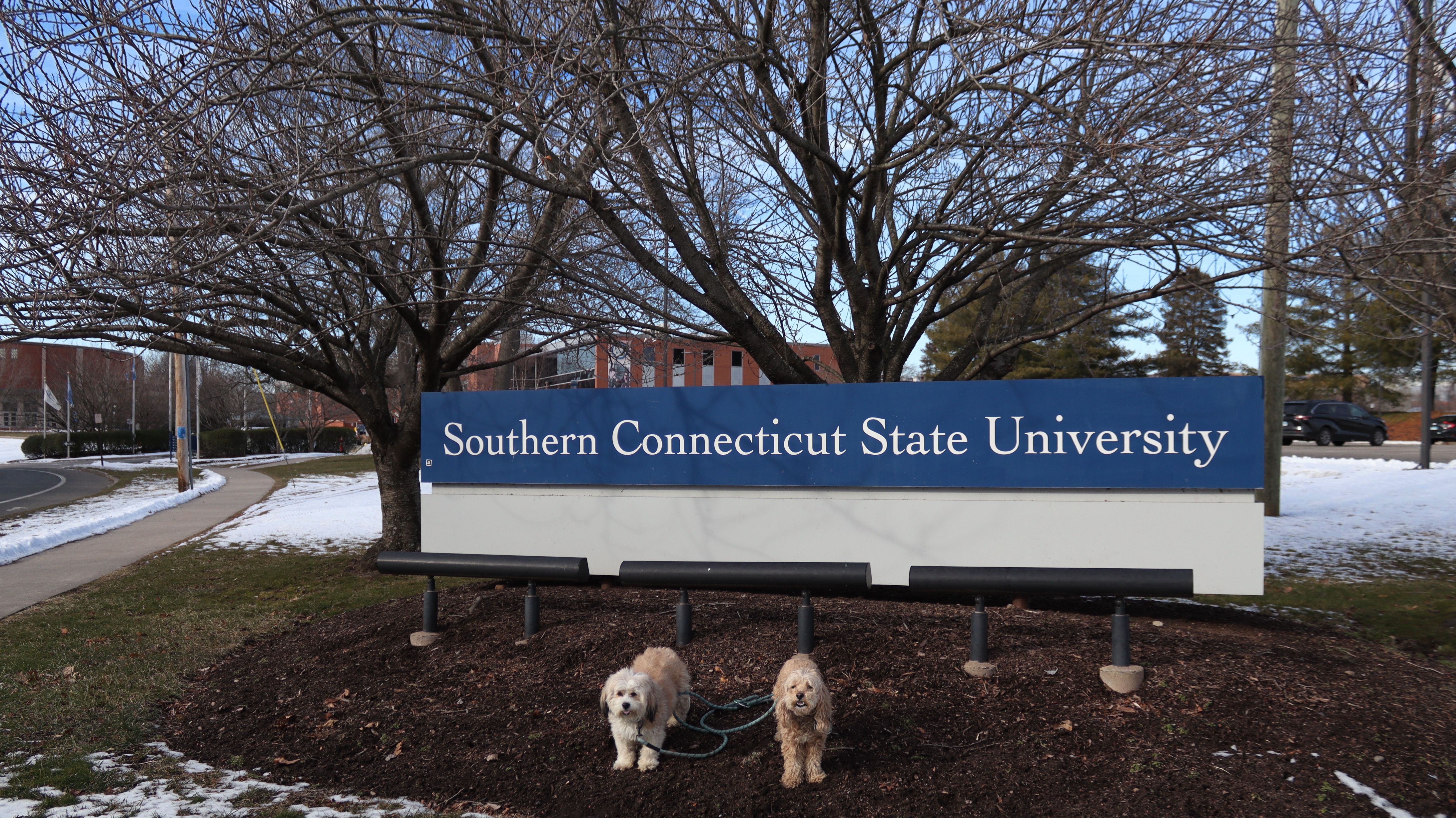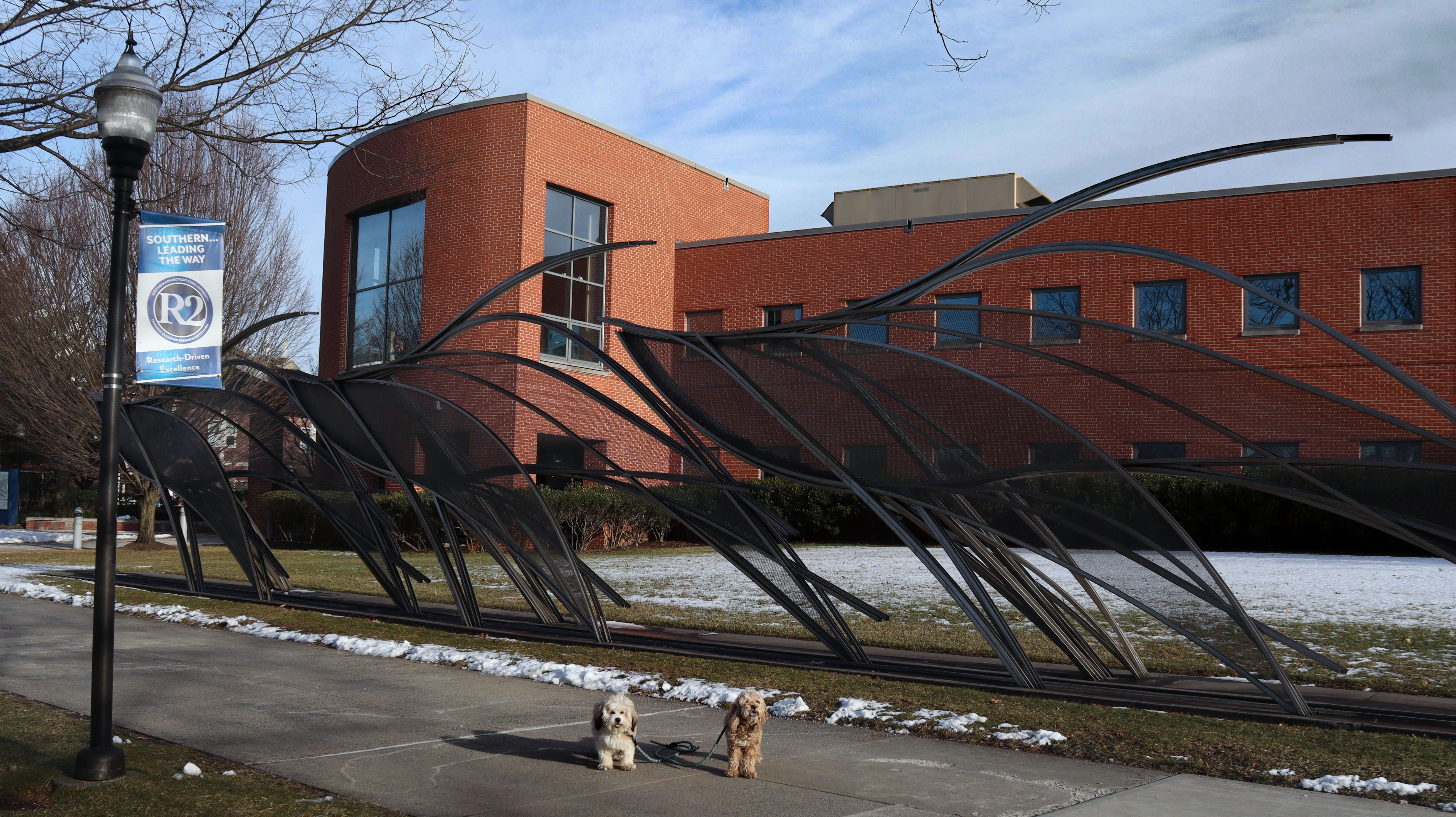 We had one more day before the bitter cold and snowmageddon arrives, so we headed to this campus for one more adventure. This is a public, state school, similar to the one we visited the day before. It was about ten degrees cooler today, but still in the mid-30's which isn't too bad for a winter walk. We explored most of the campus. A small section of the campus crosses the town line into Hamden. Combined with Beaver Pond Park, we had a good four mile walk before winter unleashes all it's fury!
