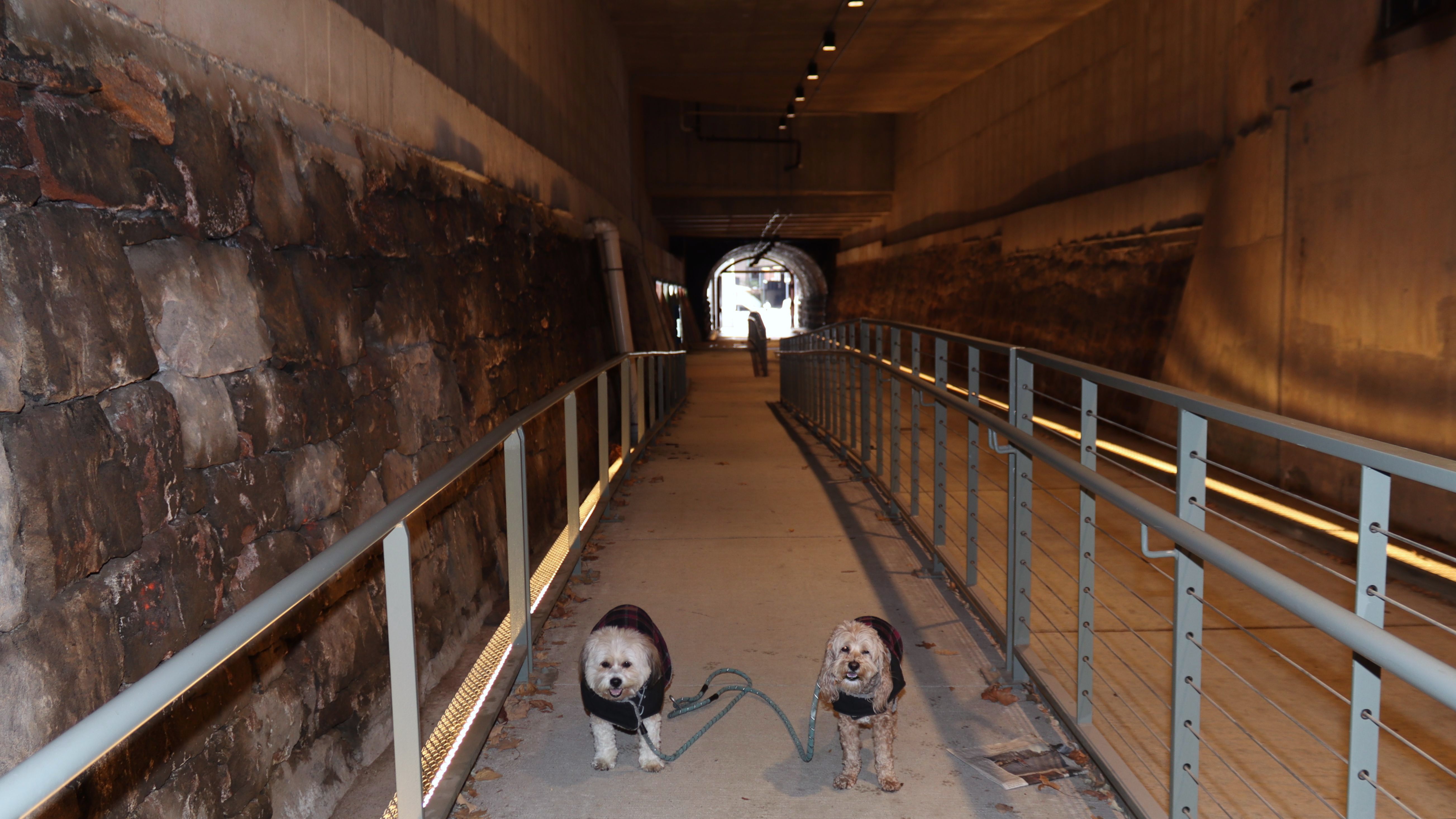 It wasn't the nicest day for an adventure, but with another round of snowmageddon on the way, I wanted to get out while we could. The last time we were here, the new tunnel section was still closed, so this was our first chance to check it out. The tunnel includes a separated pedestrian walkway and illuminated signage that explains the corridor's evolution—from canal, to railway, to today's multi-use trail. I had always wondered how this stretch would eventually connect to the final segments, and now the routing is much clearer. From the tunnel, new pavement runs alongside Grove Street, with additional trail construction underway along State Street as it passes the train station. That alignment will ultimately link up with the existing segment at Water Street, which continues to the trail's end at Long Wharf. The only remaining question is just beyond the train station, where State Street splits—I'm still not sure which branch will be used to meet Water Street. Since we've already walked that final stretch before, we turned west on George Street and then up College Street to loop back to our starting point near the tunnel by Yale. We also made a stop at Temple Street Plaza, covering about three miles in total.