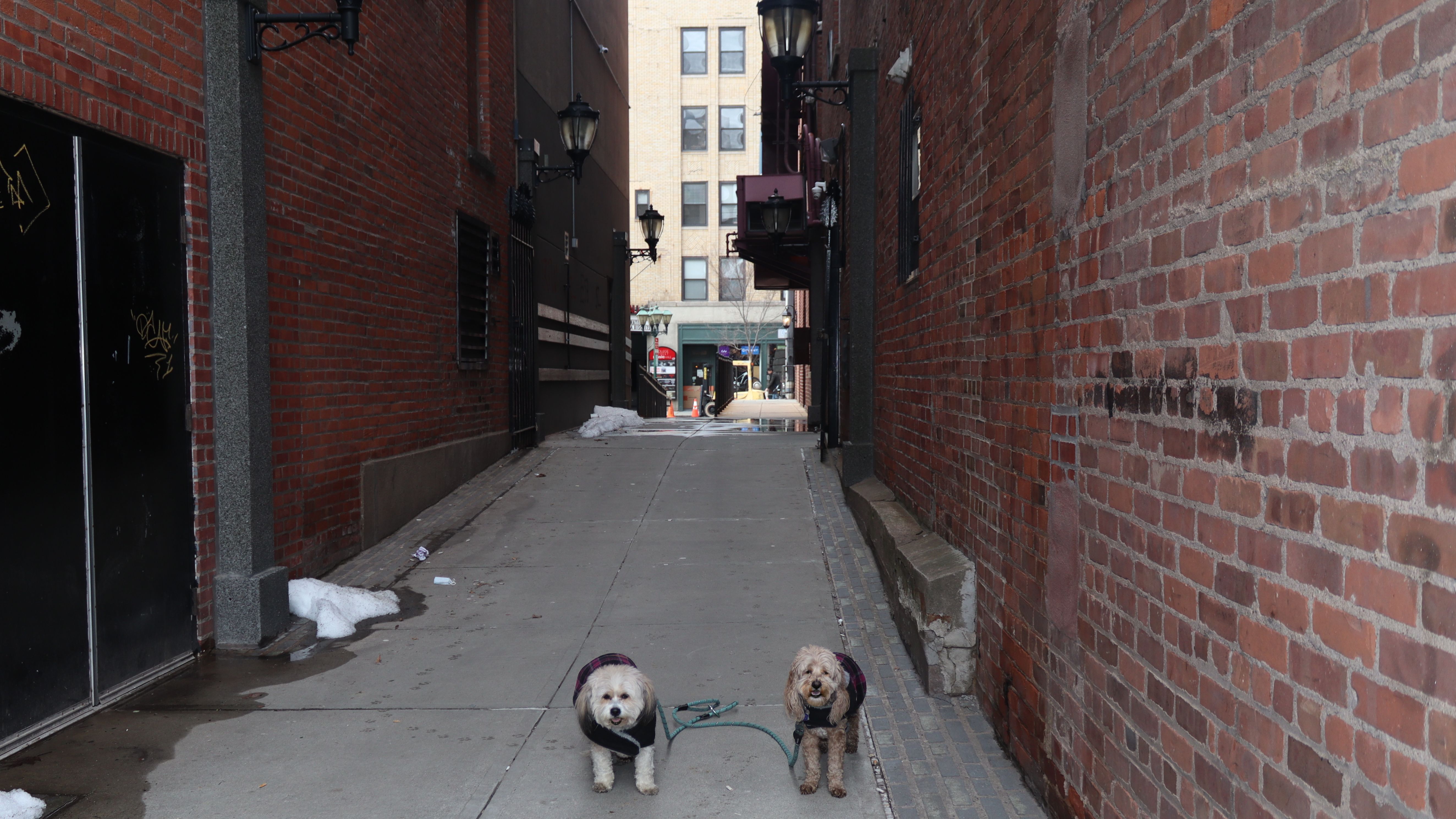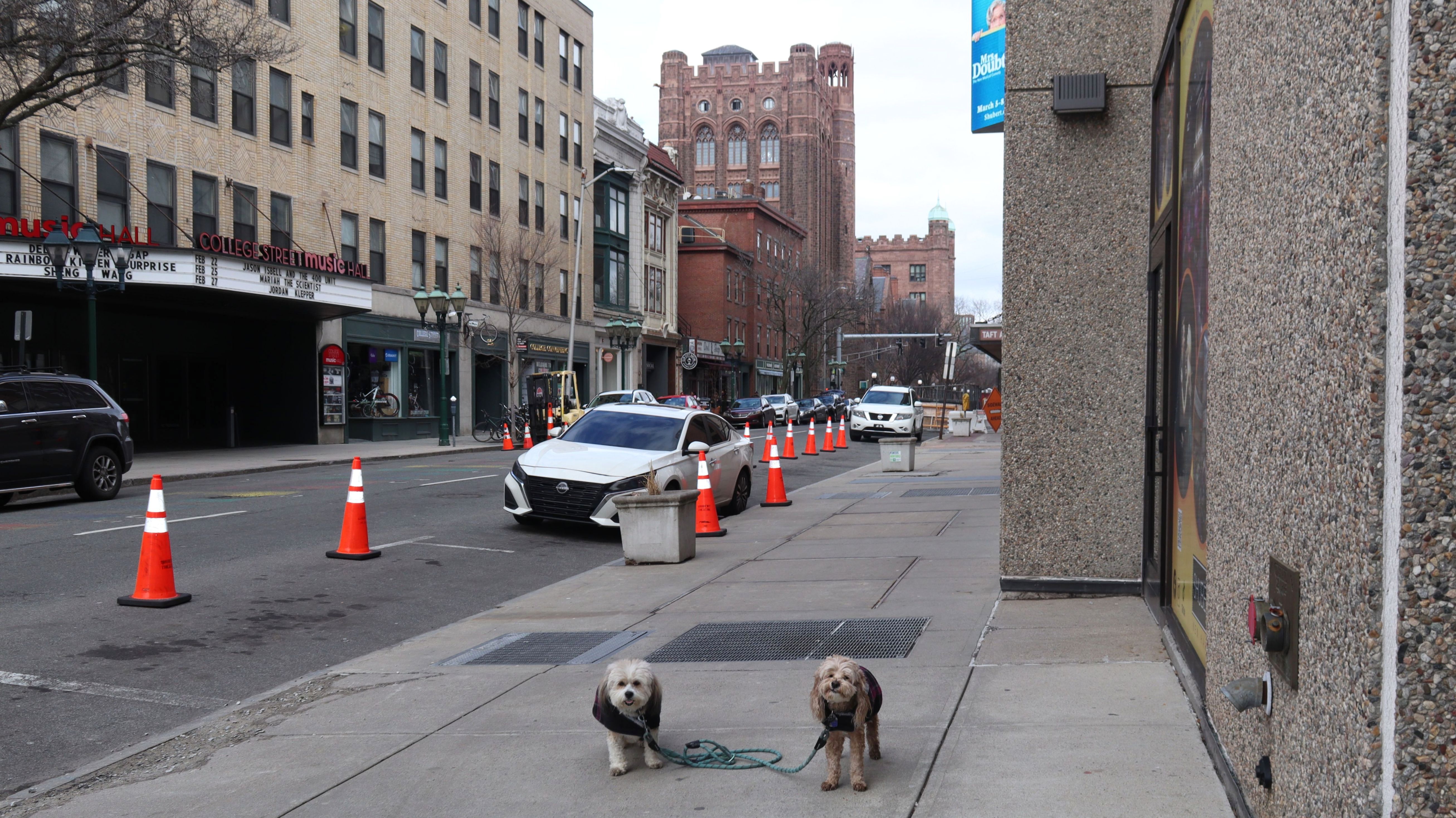 The idea for this trip was to see the cherry blossoms at Wooster Square Park, but we were too early. The cold weather has delayed their bloom. So we parked near the park and took a walk through the downtown area, and wound up walking through Yale instead. This is a completely different section of Yale than our previous visits. In addition to walking around the public streets, we also walked through the campus and the various courtyards. It's a beautiful campus, and even though there weren't any cherry blossoms at Wooster Square Park, there were plenty of spring blooms here. We also walked through "The Shops at Yale at Broadway", a public shopping area in the midst of the campus. It was during the middle of the week, so we encountered many students who were mildly amused at the dogs posing for photos. Mandy and Lexi are always super friendly with people we encounter, and one student who asked to pet them said that it made her day!