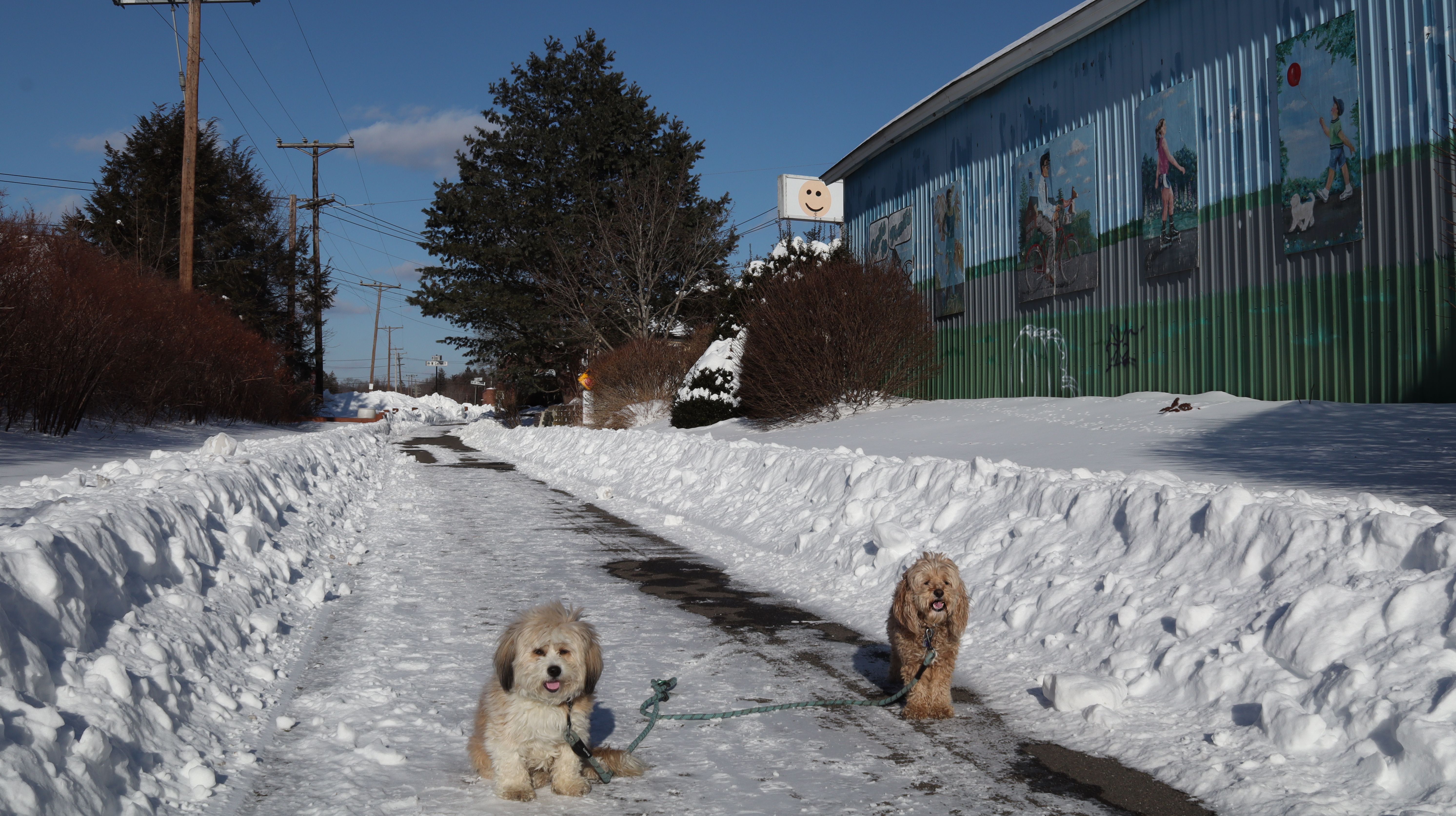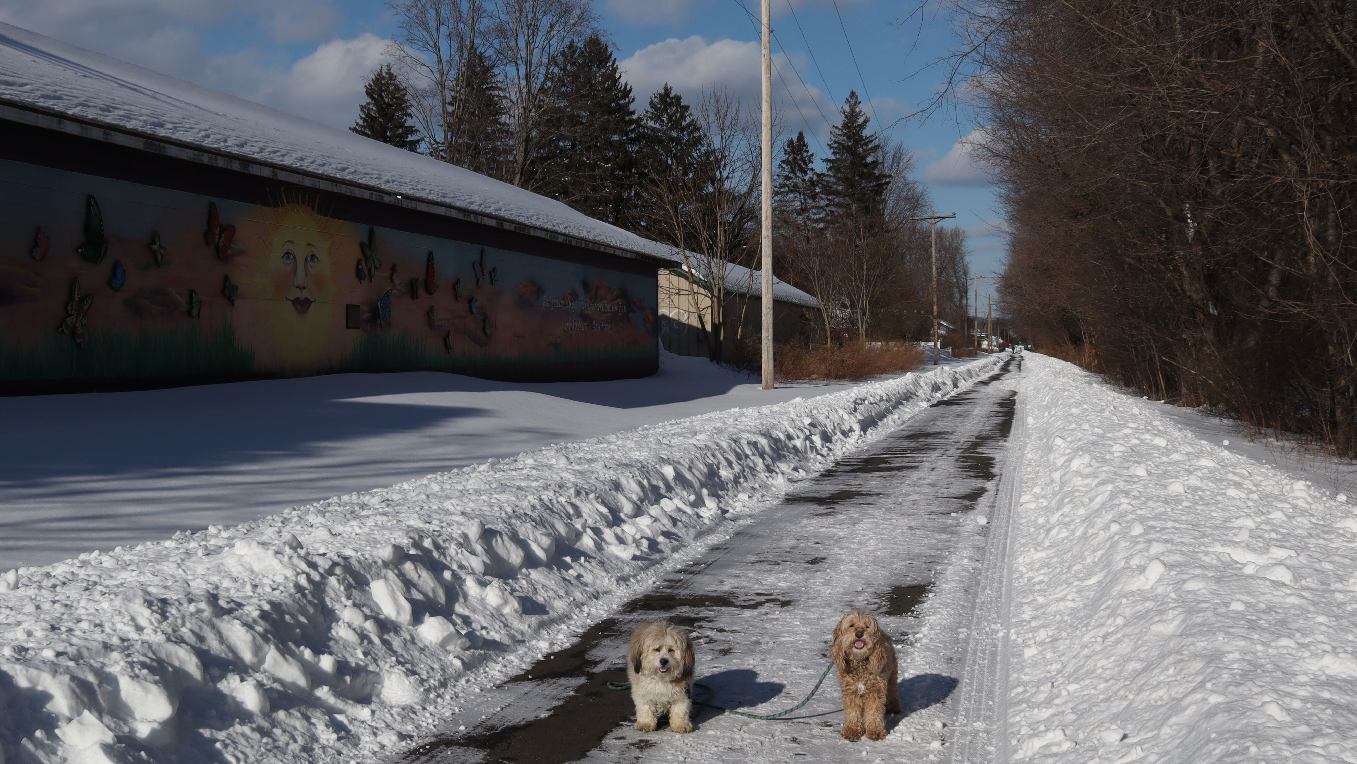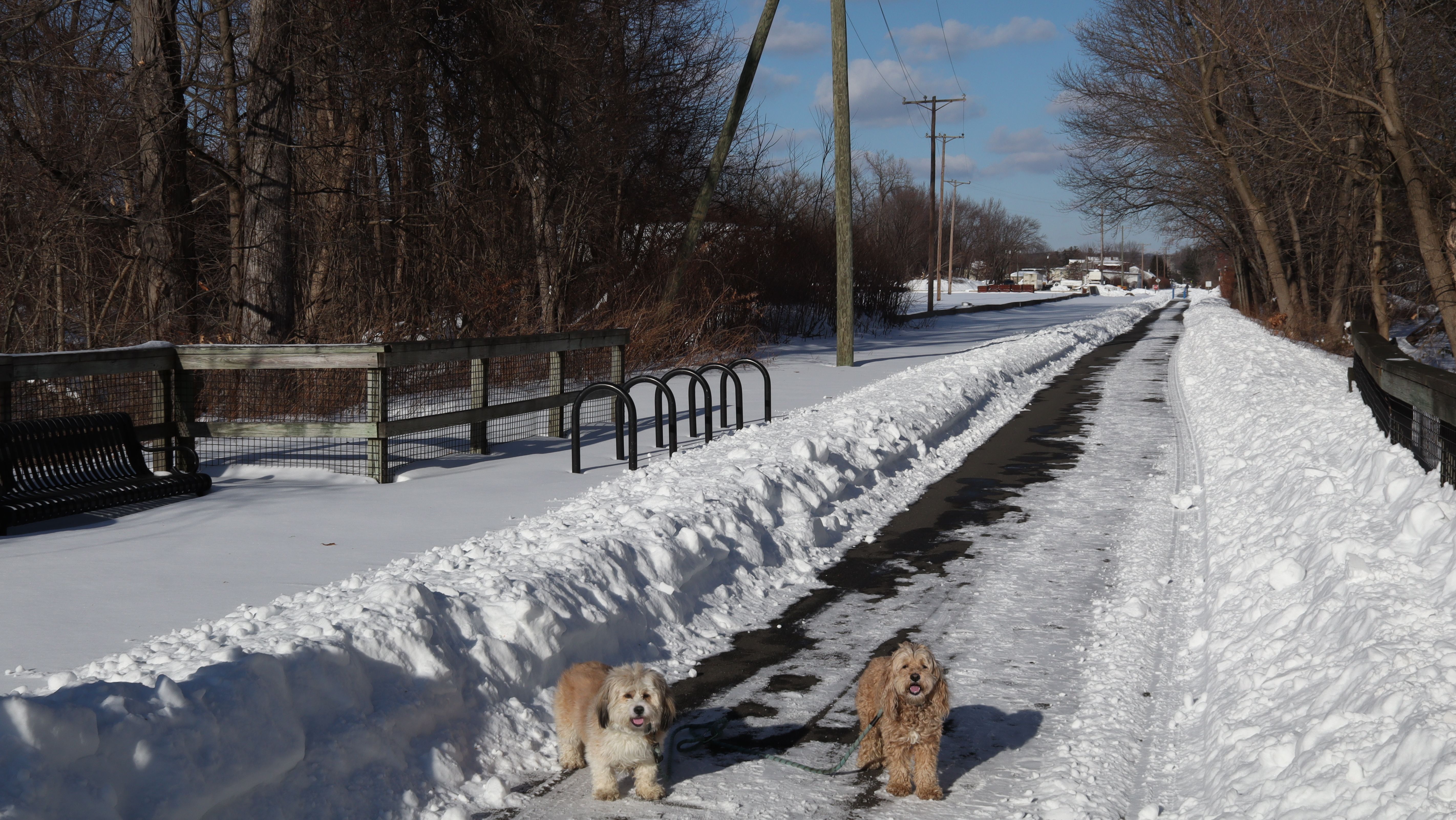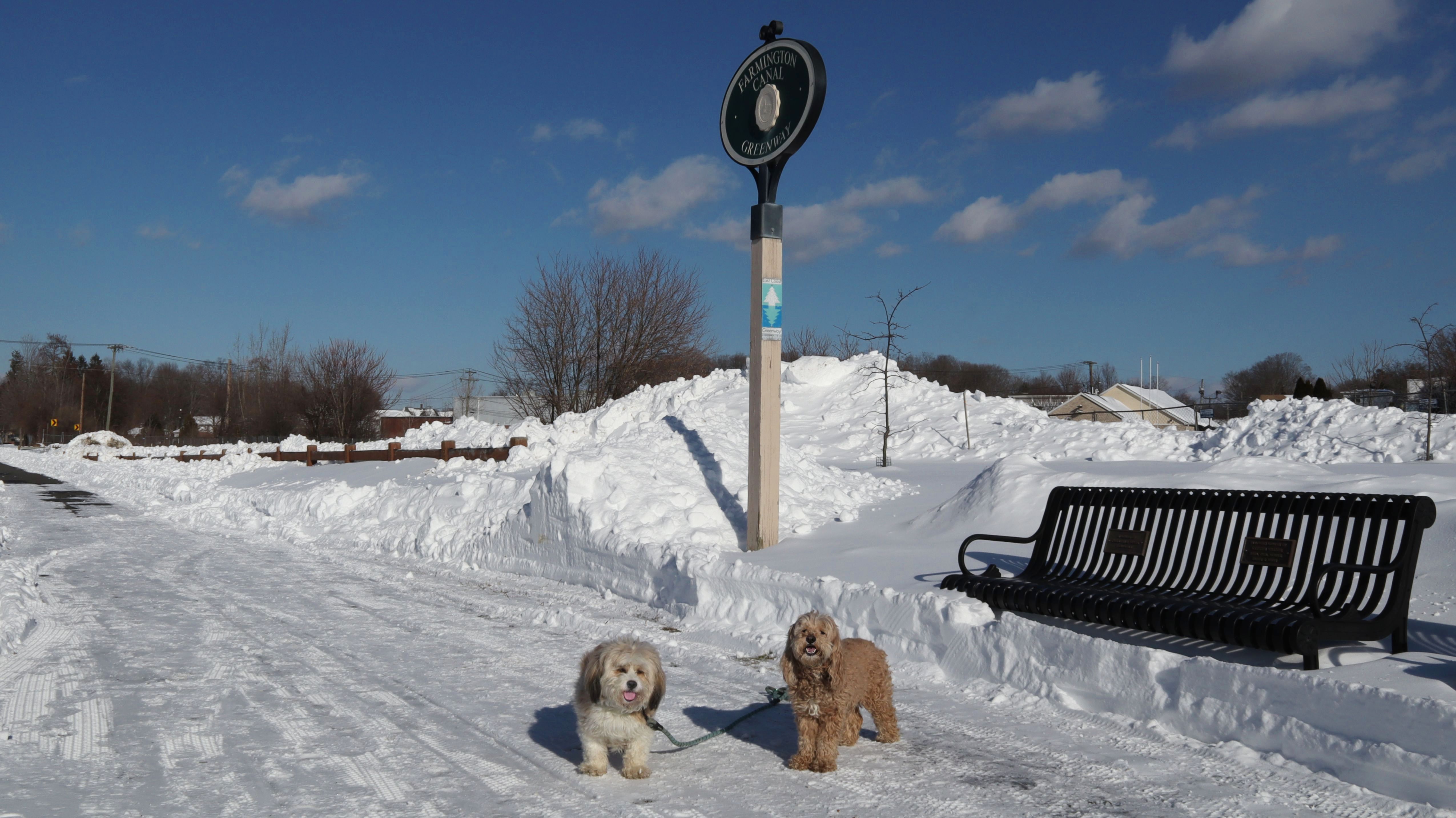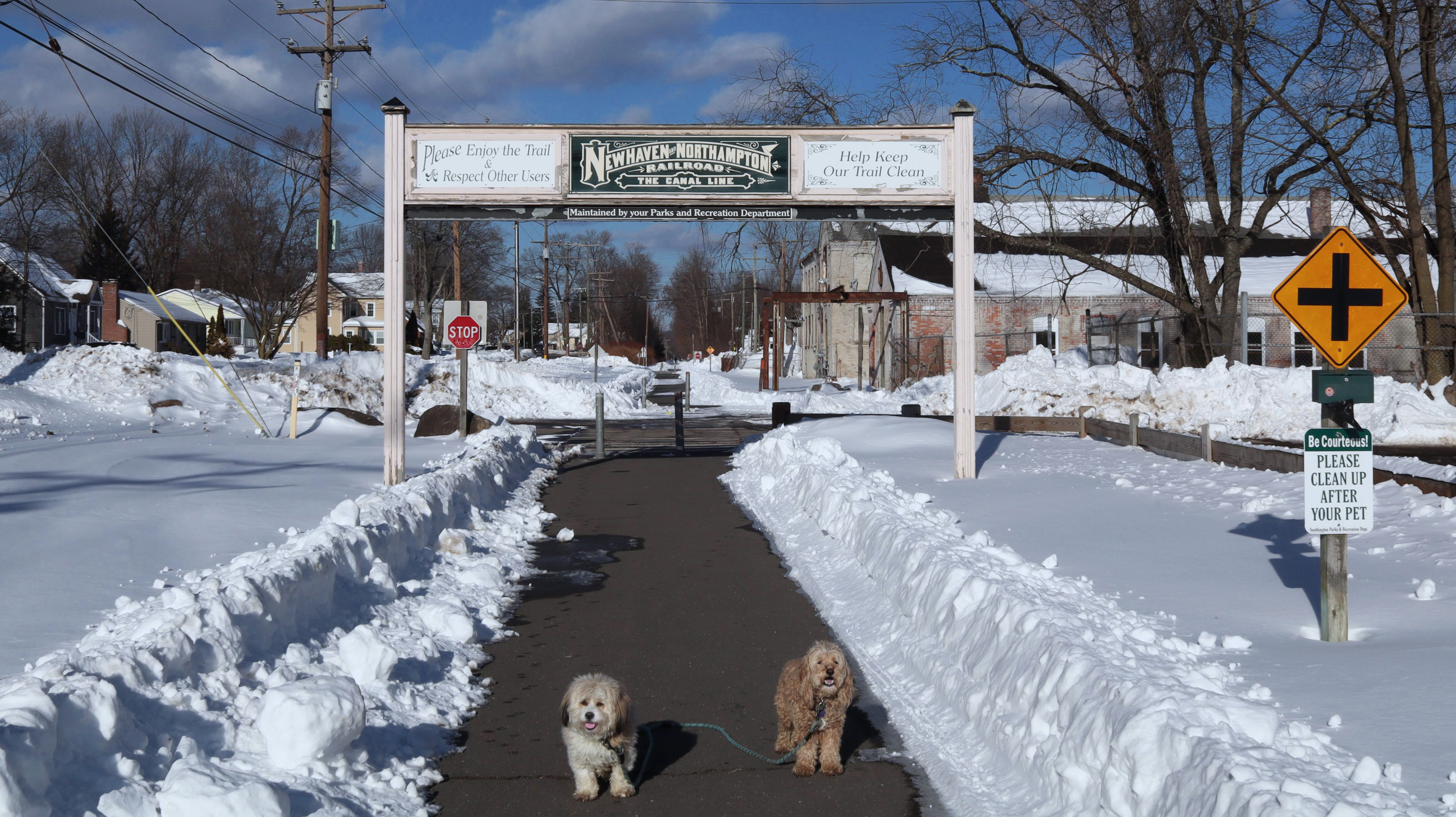 Snowmageddon lived up to the hype! Well over a foot of snow dropped throughout the region. It was the most snow we've had since we started these adventures almost six years ago. In addition to the snow, temperatures have been frigid, so we've been stuck inside for six days. I was running an errand nearby and noticed this trail was cleared off, and since temps made it up to the mid-20's, I came back later in the afternoon with Mandy and Lexi. Despite the cold weather, they were happy to get out. We started at the parking area off Mill Street and headed south until we reached Plantsville, where the trail wasn't cleared off anymore, and then turned around and headed back, walking about three miles total in the process. It wasn't too bad when the wind wasn't blowing. This is probably my favorite section of this trail, so even with the wintery conditions, this was a fun walk.