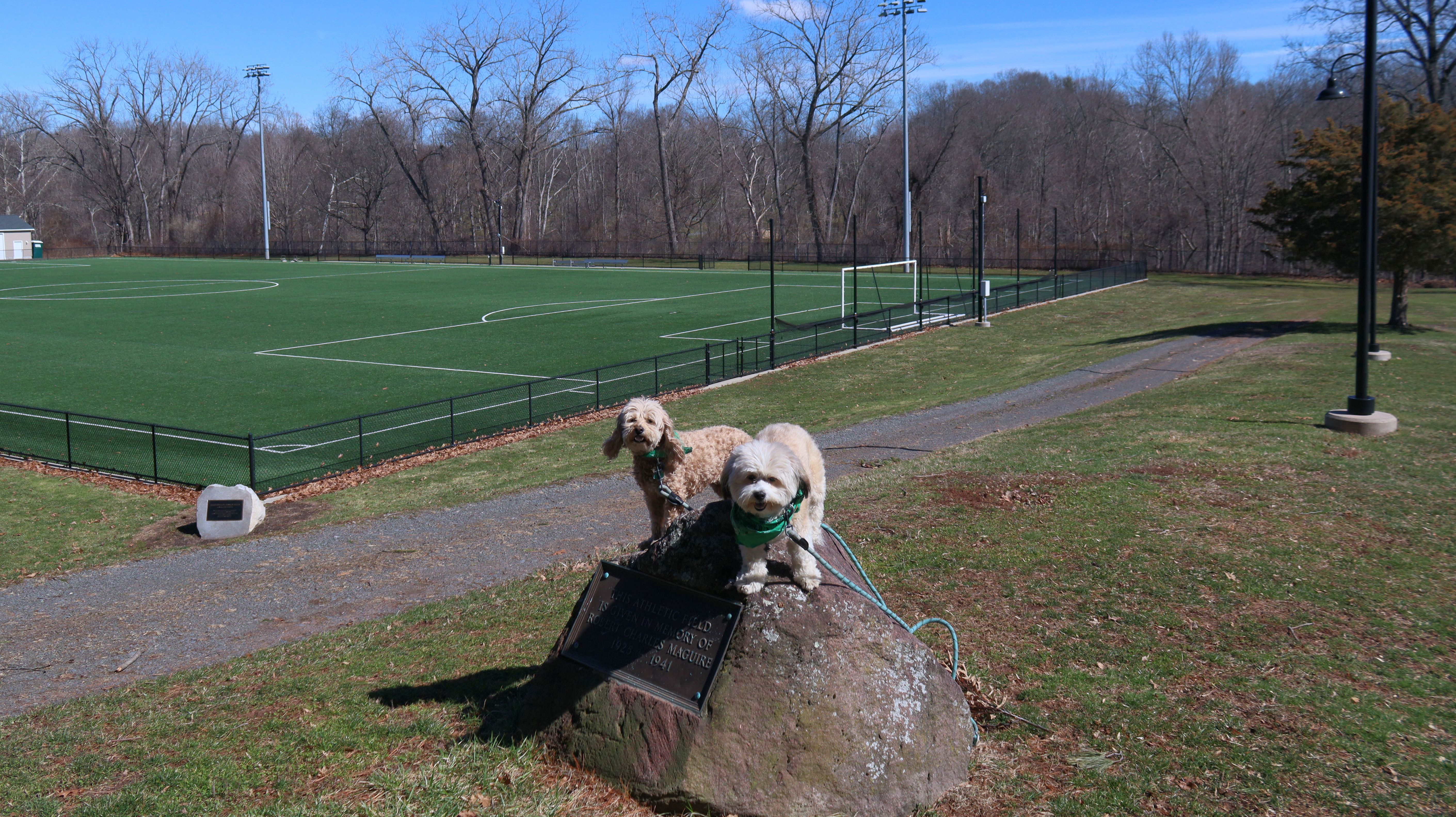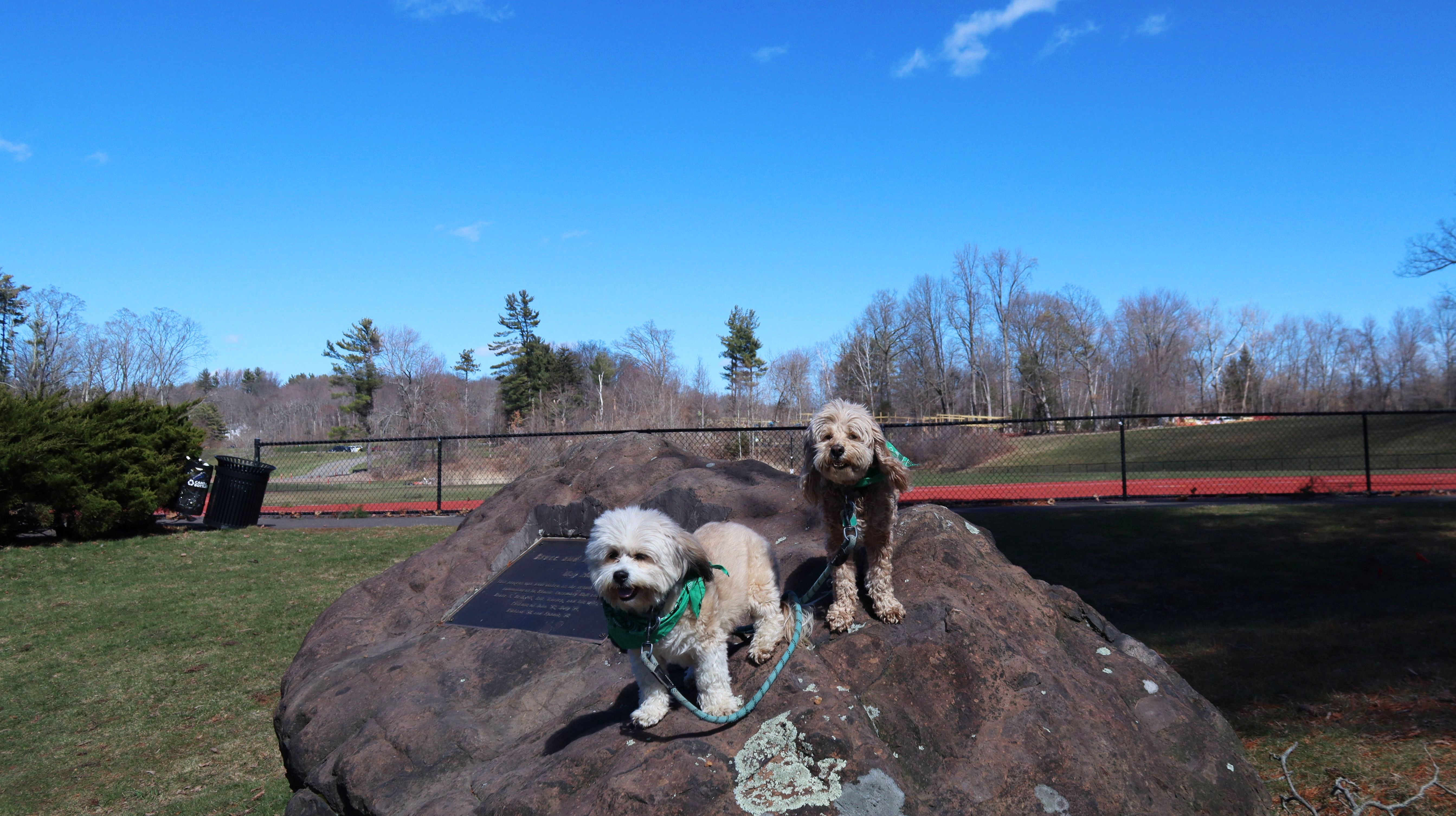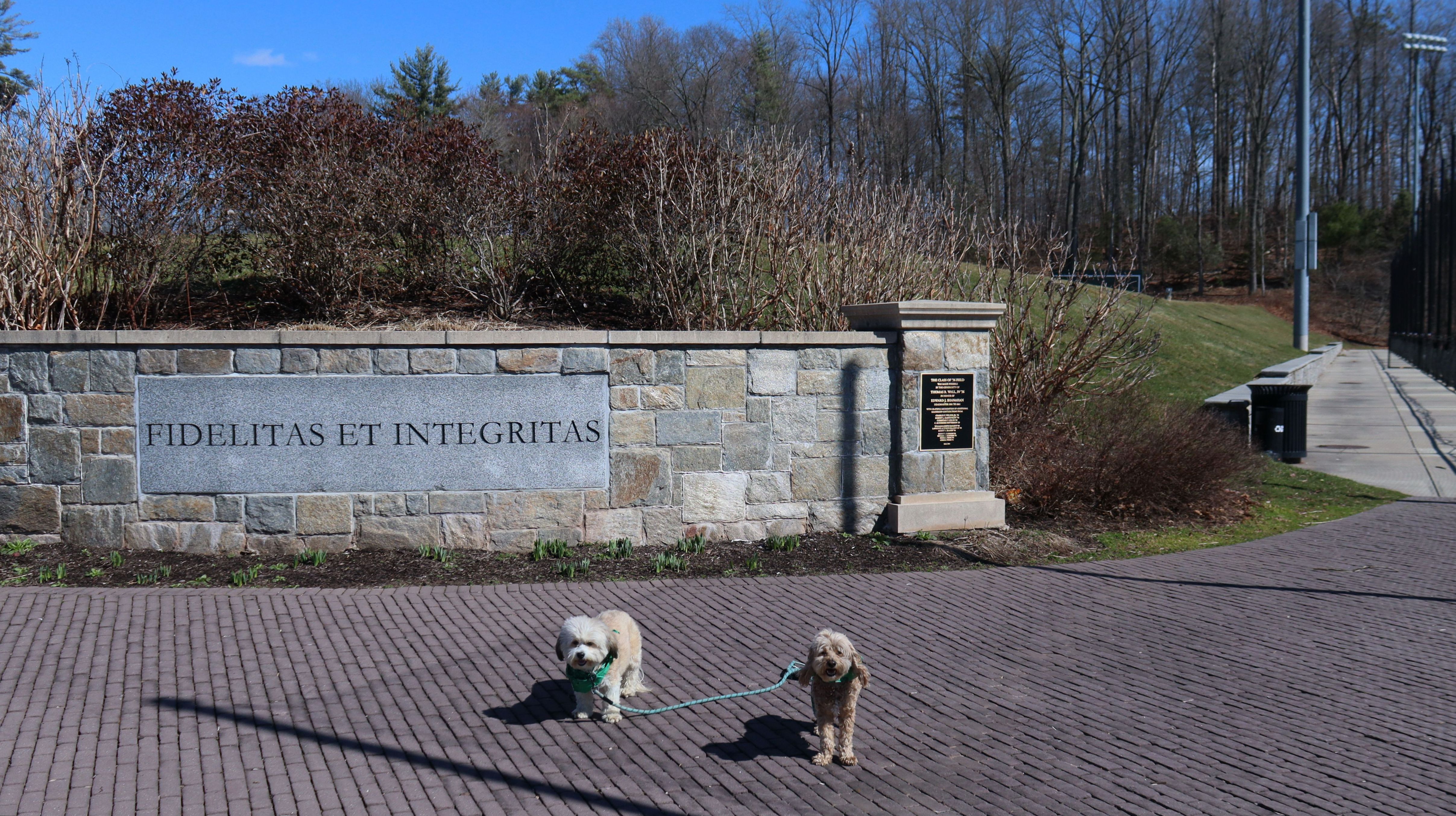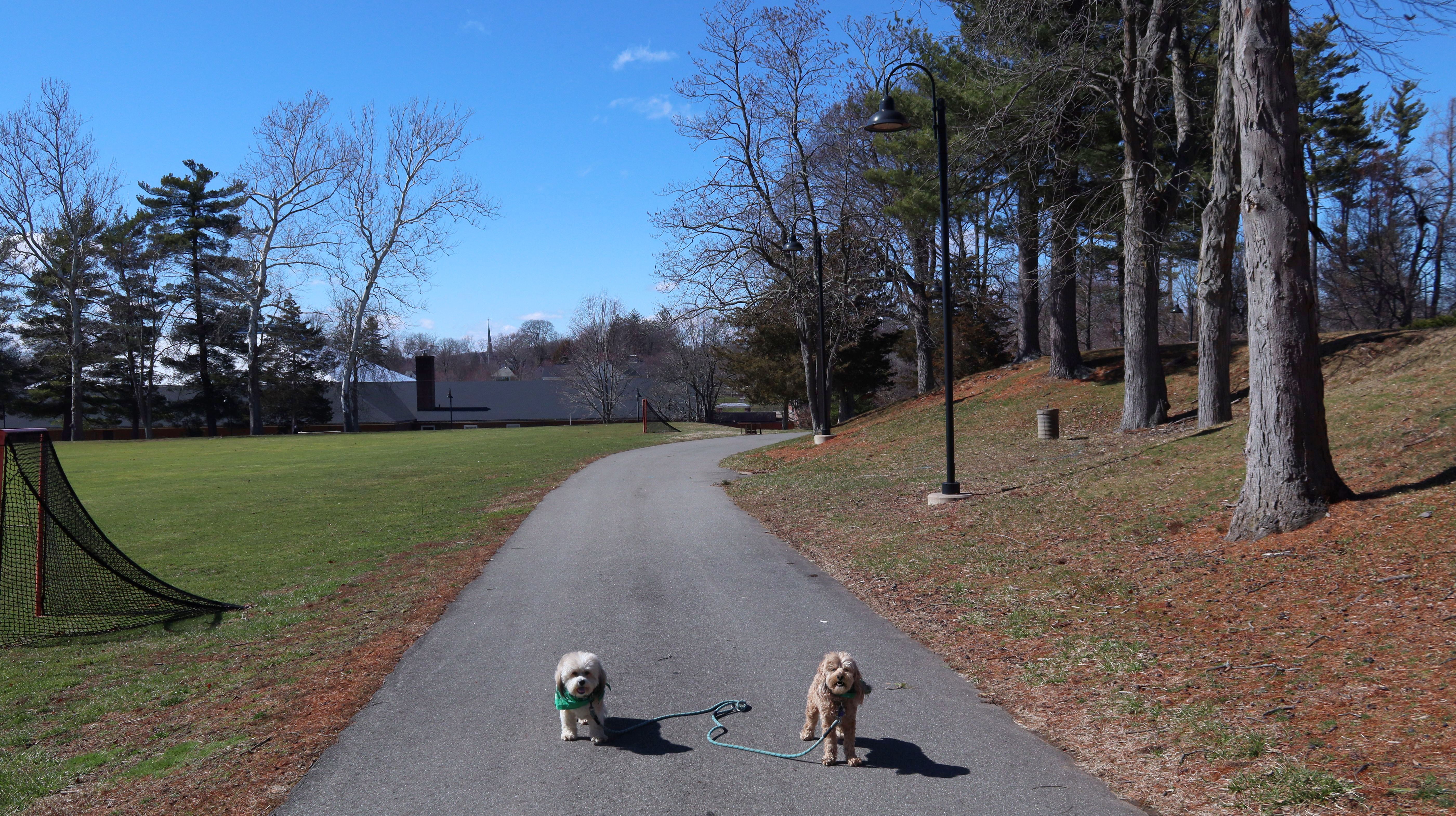 This is a college-prep boarding school with a beautiful campus. It must have been spring break, because there was no signs of students anywhere. It was deserted, other than a few other dog walkers. The campus is pretty large, combined with nearby Doolittle Park, we walked almost five miles on a sunny and brisk day. See if you can spot the photobomb in one of the pictures below.