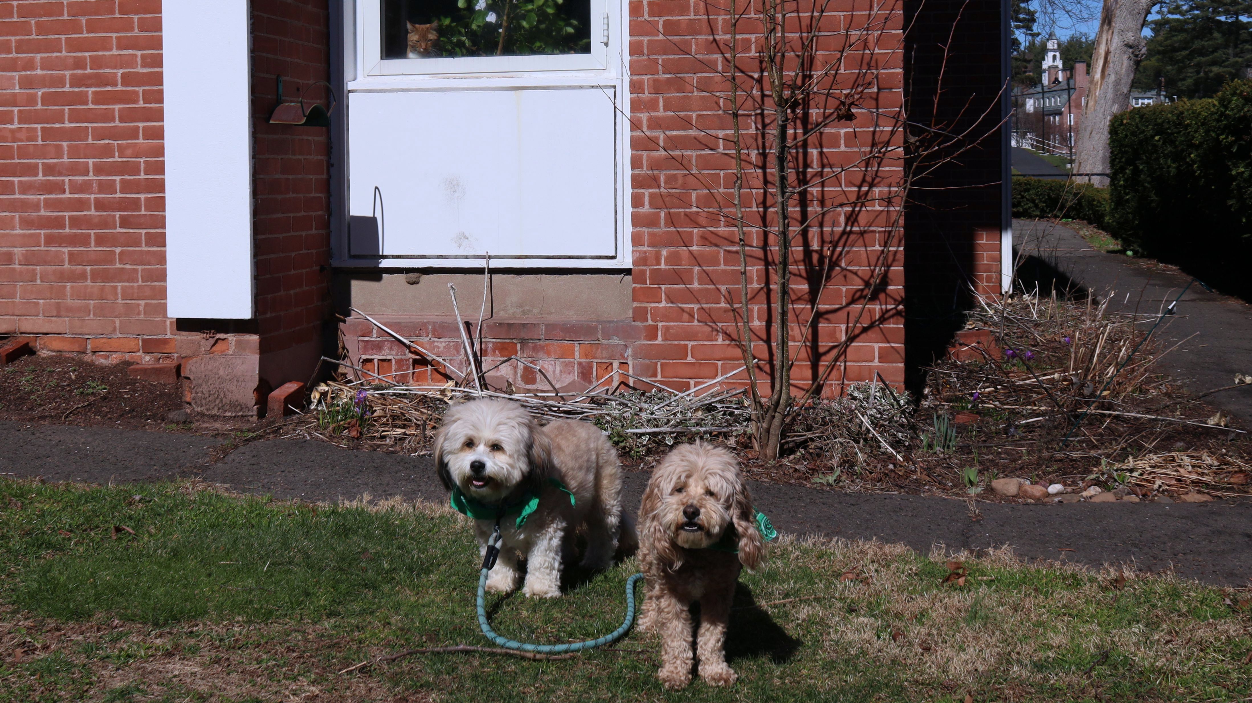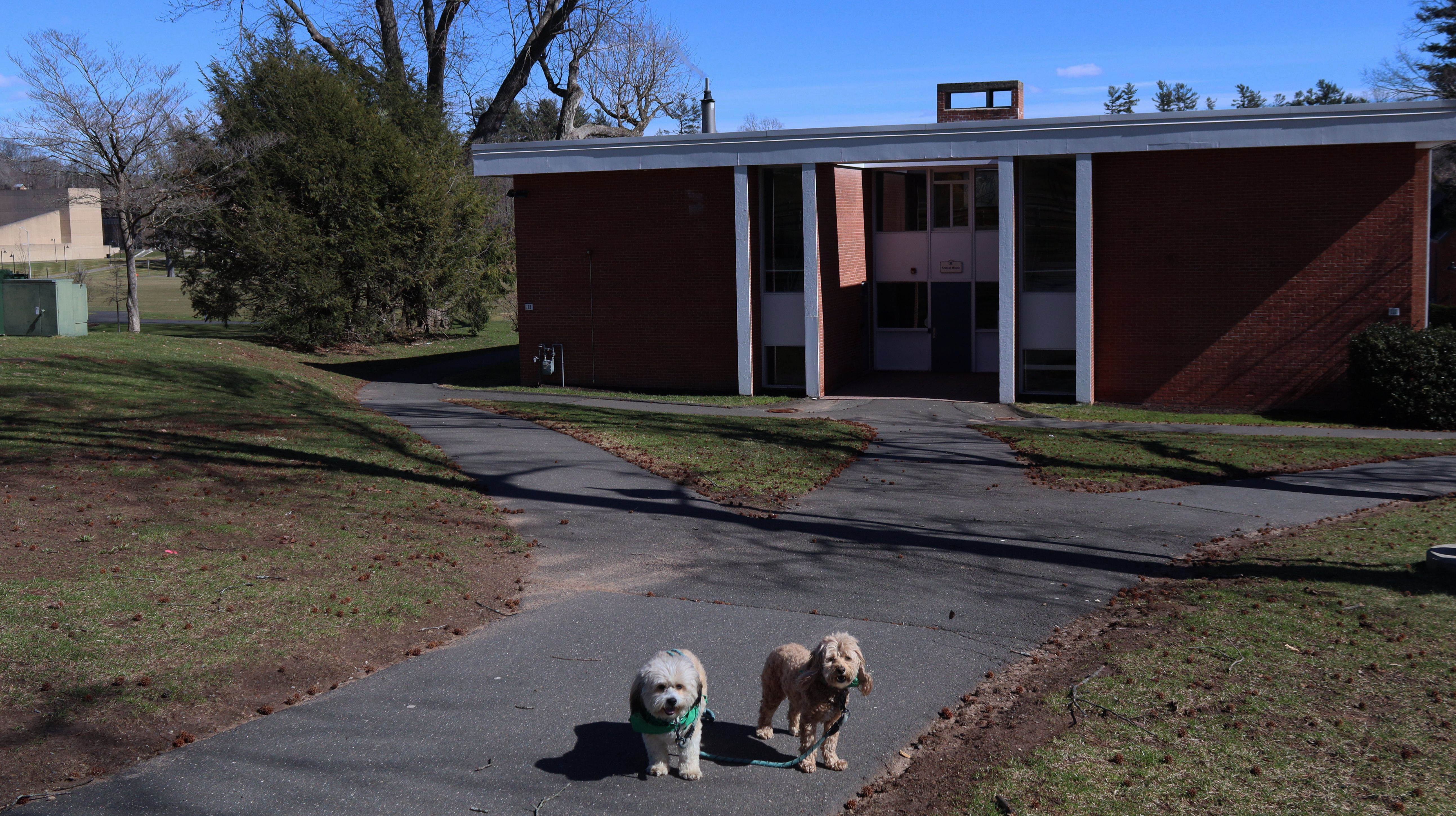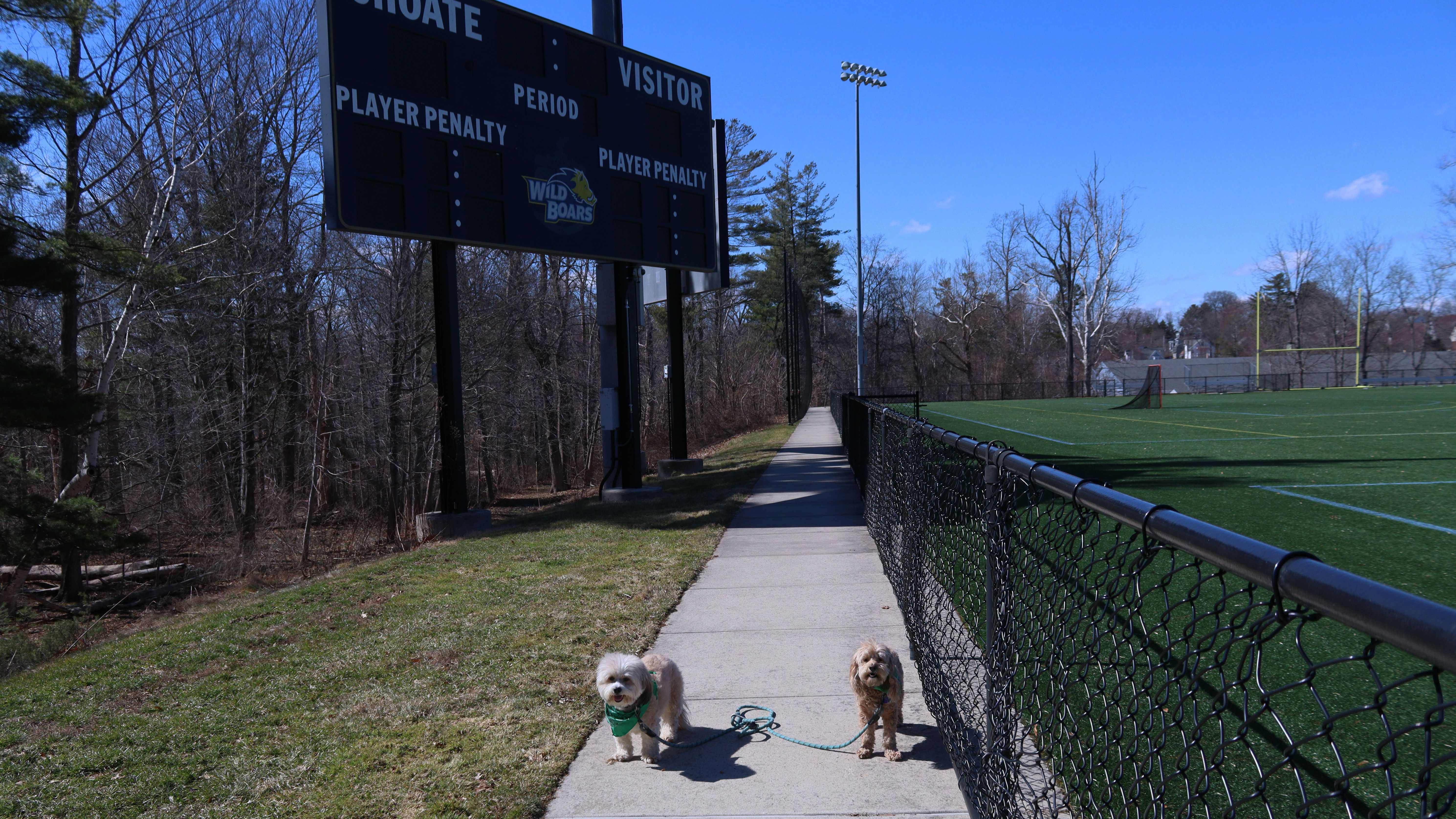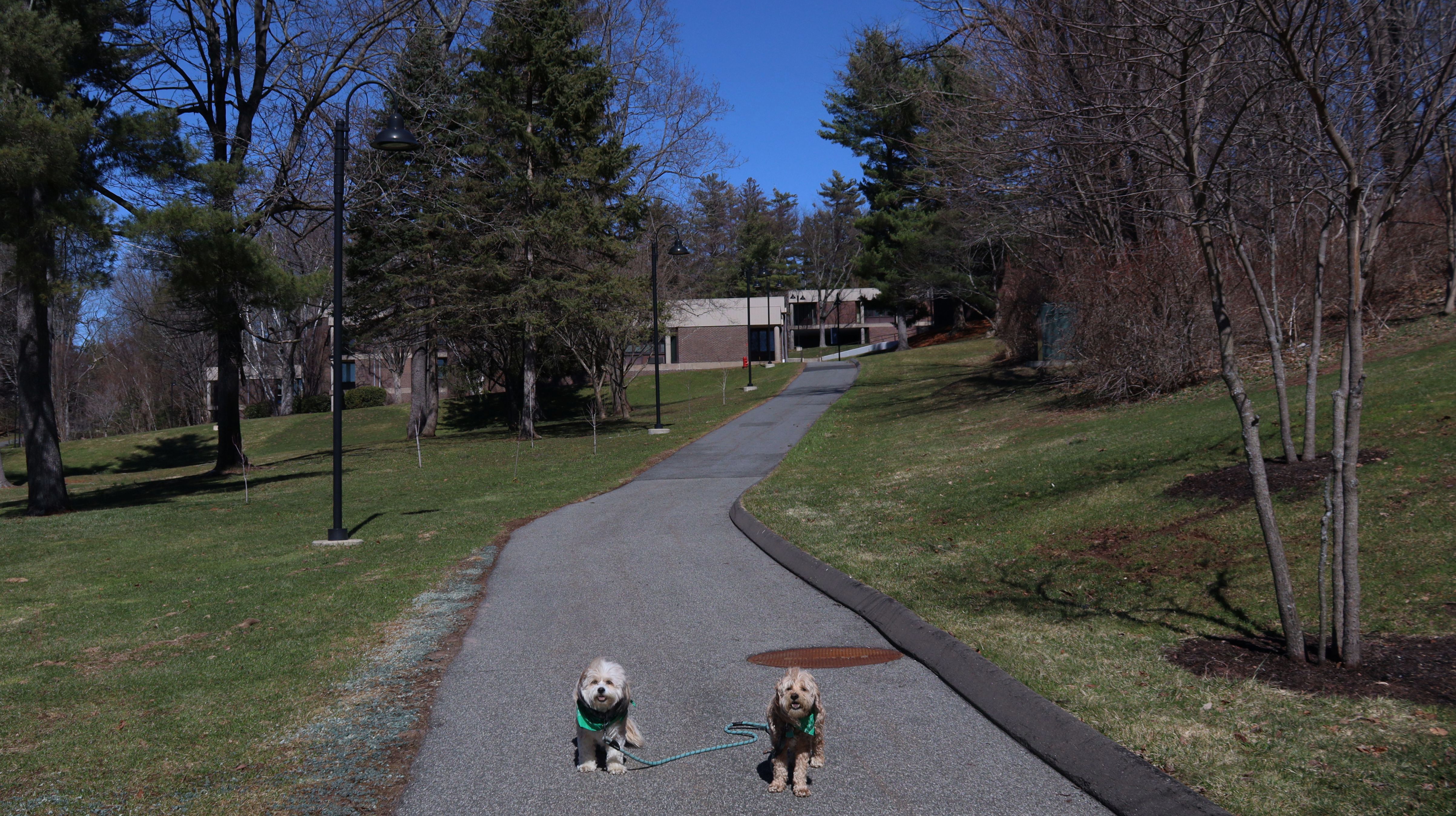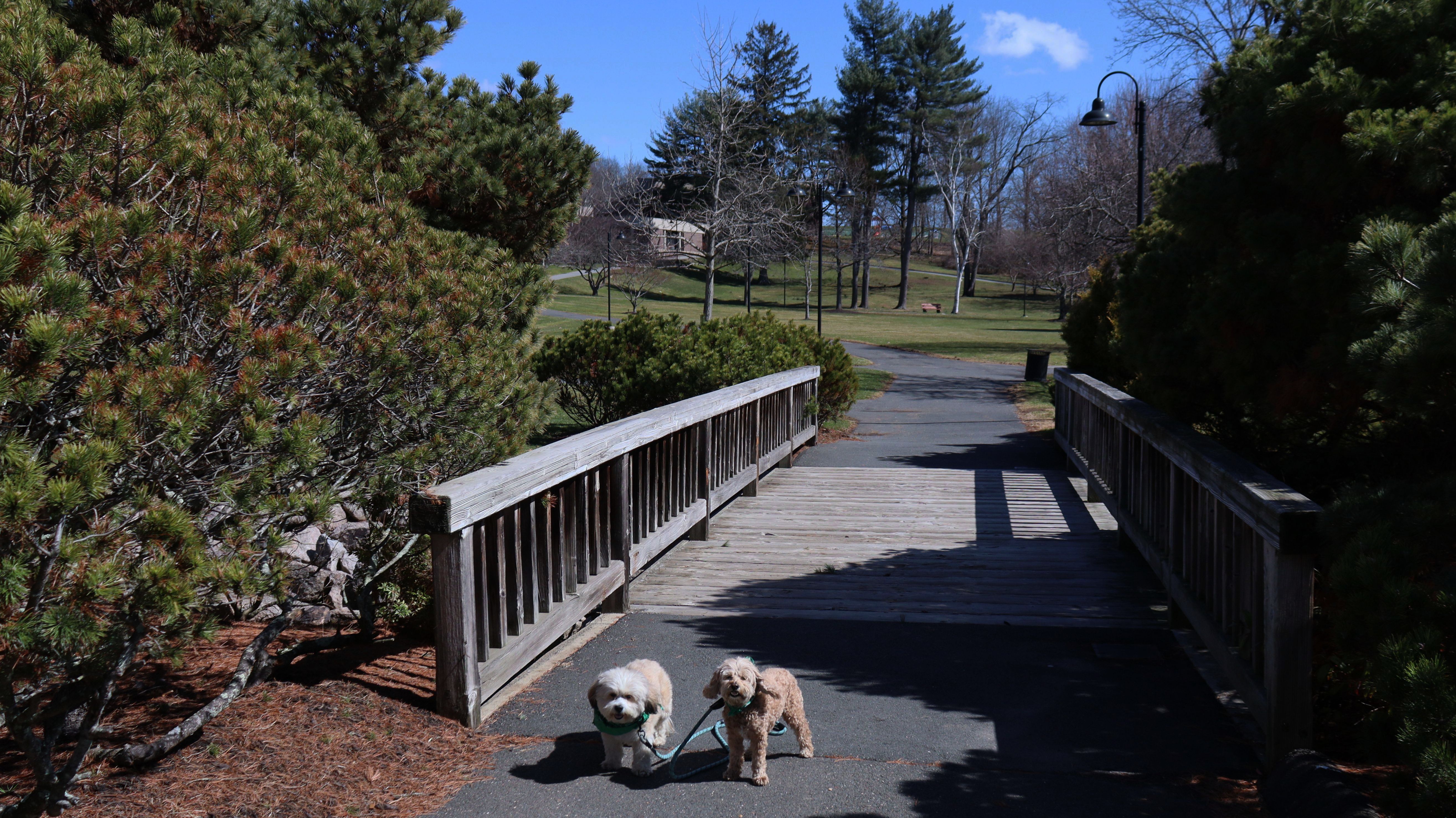 This is a college-prep boarding school with a beautiful campus. It must have been spring break, because there was no signs of students anywhere. It was deserted, other than a few other dog walkers. The campus is pretty large, combined with nearby Doolittle Park, we walked almost five miles on a sunny and brisk day. See if you can spot the photobomb in one of the pictures below.